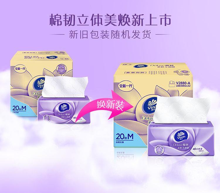 维达(Vinda) 抽纸 棉韧立体美系列3层100抽软抽*20包 (认准真M码) 母婴可用 整箱销售