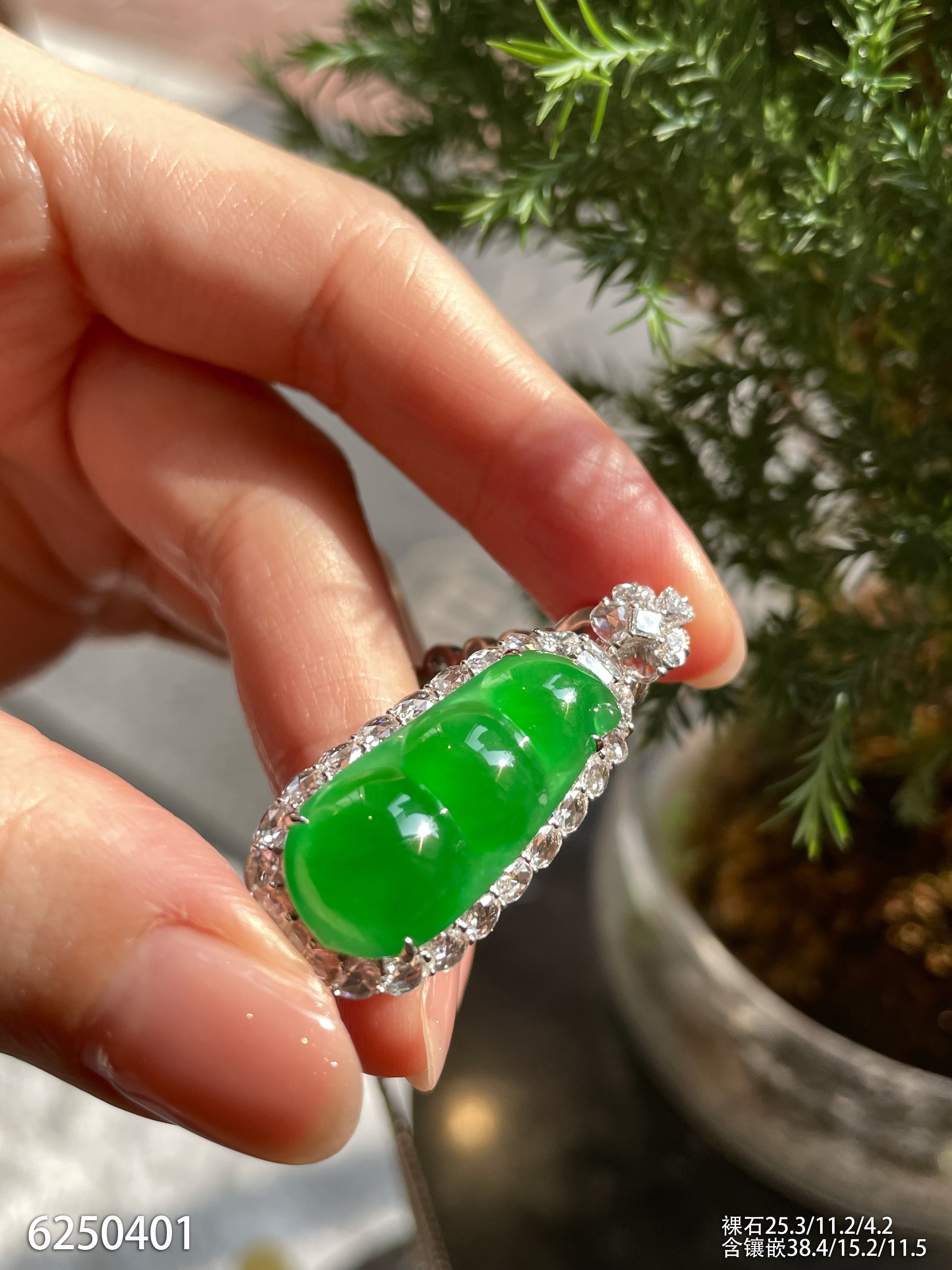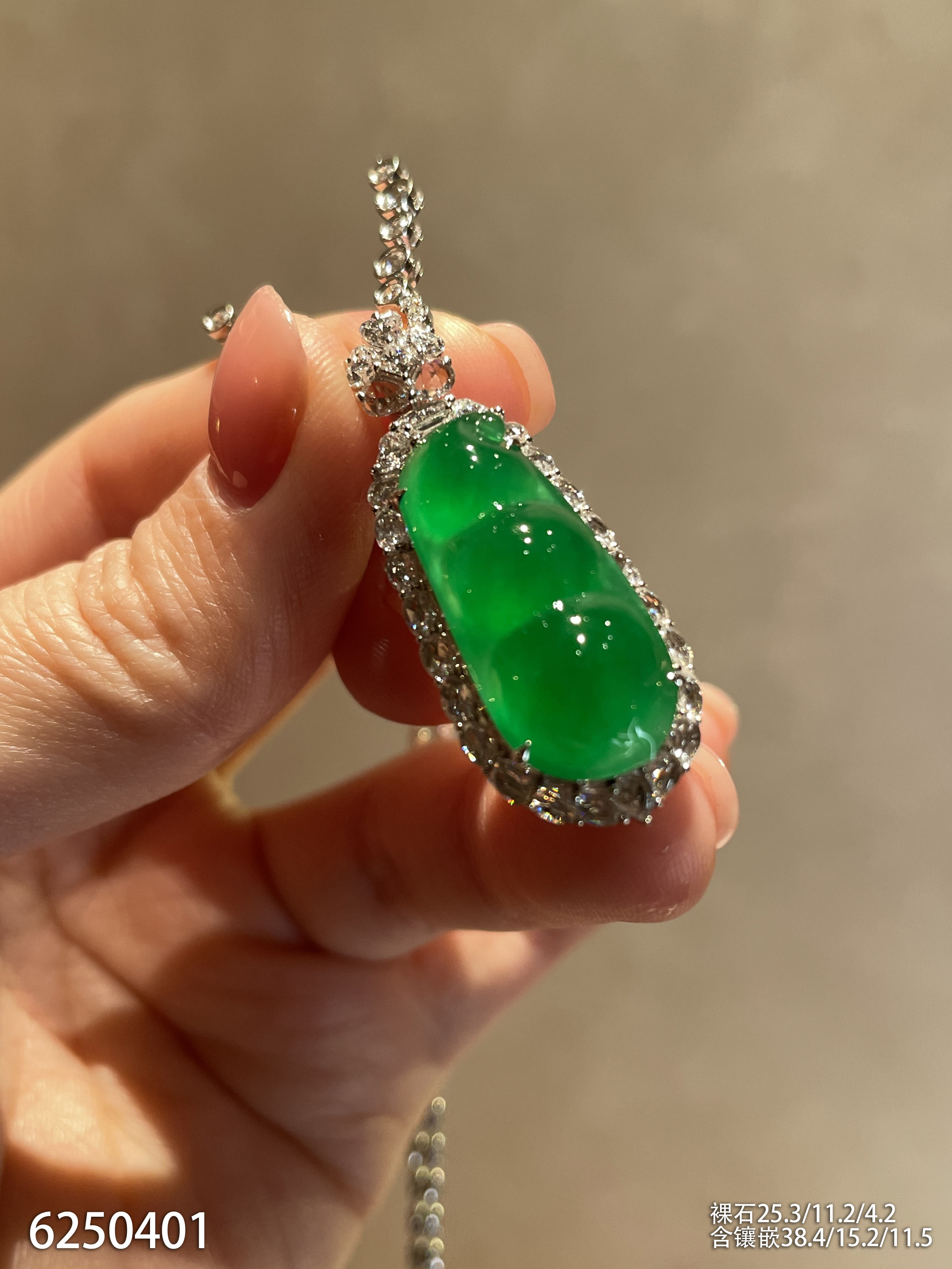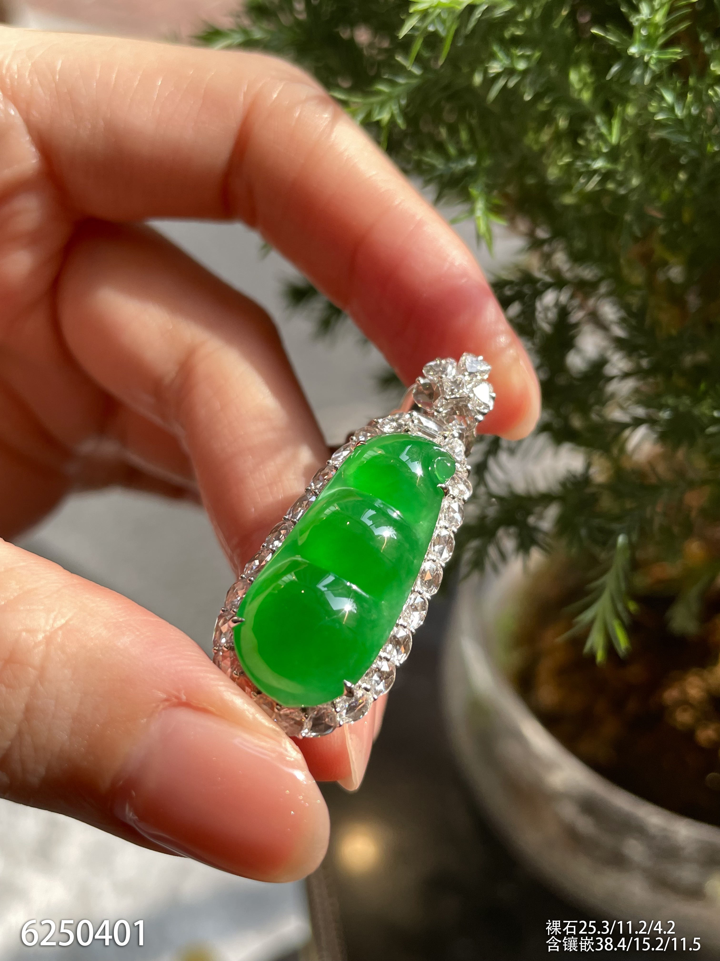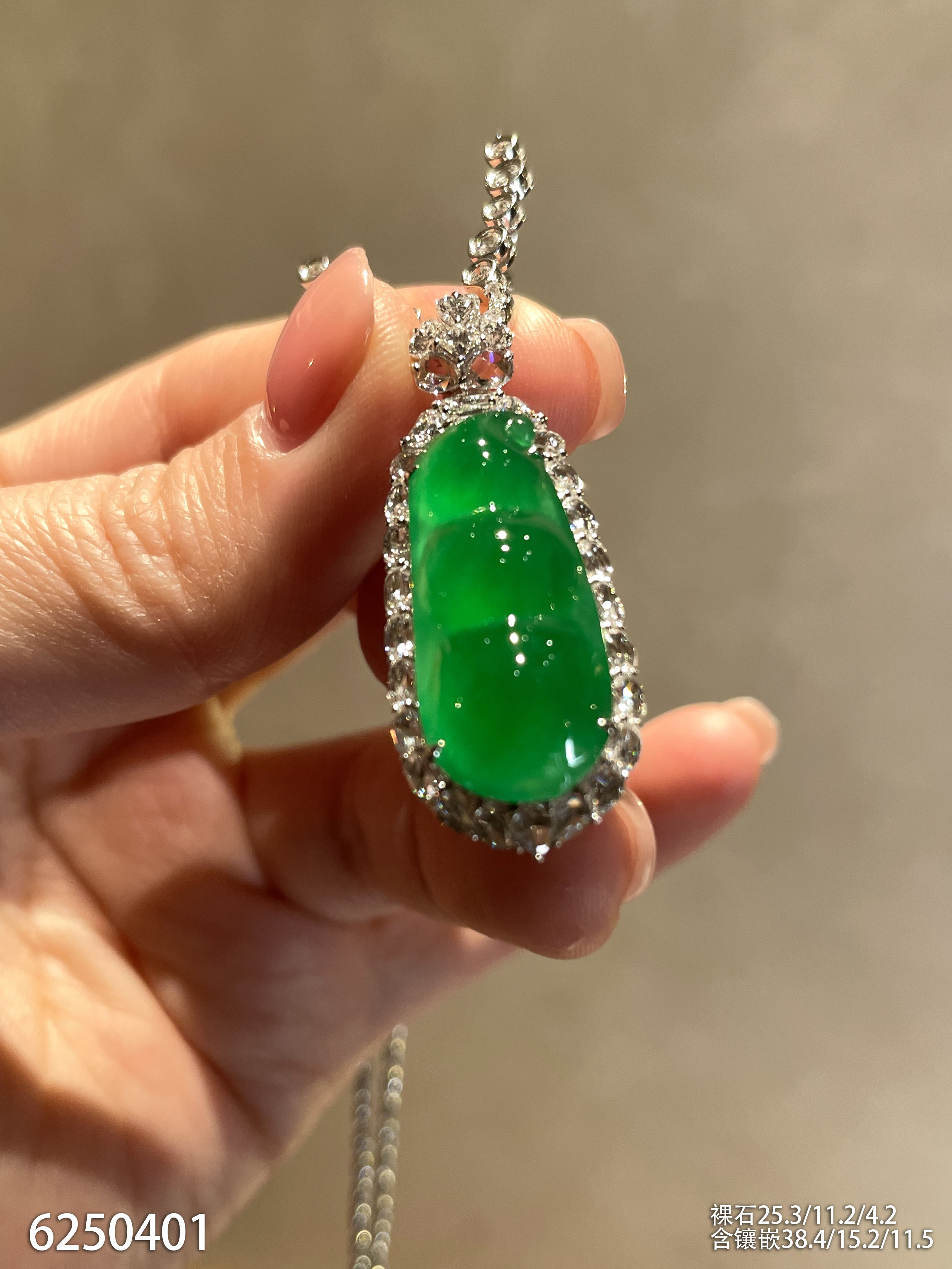 高冰种艳绿蛋面耳钉【6310503】具体价格微信咨询