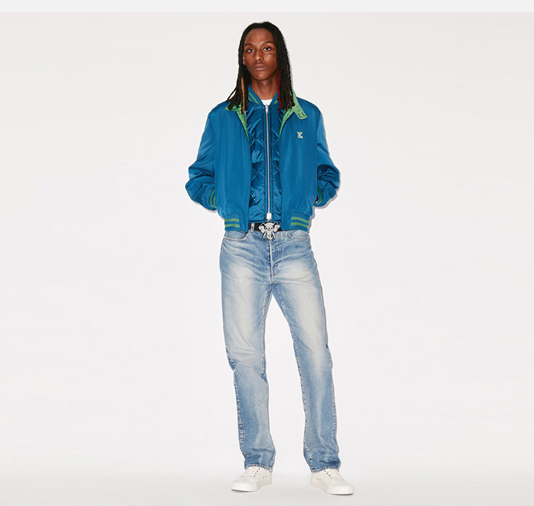 KENZO 高田贤三 男士棉质字母徽标印花拉链棉服外套 蓝色 FD55 BL203 9NB 73