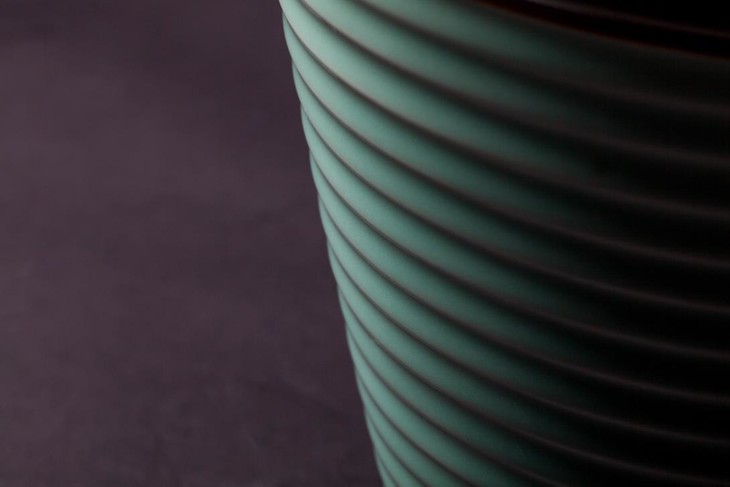 瓶身饰以精细的跳刀纹,如同优美的玉带相环。作品融合青瓷拉坯和紫砂陶刻技艺,造型古朴庄重,釉色清碧柔和,胜似翡翠;紫砂泥色沉稳,陶刻技法娴熟,素雅大气。创作者将“明月几时有”的创作意境体现于笔端,刀刻考究,可谓佳品。