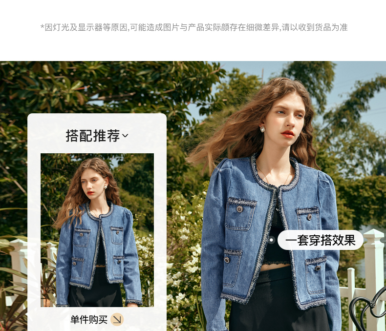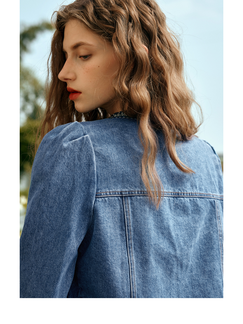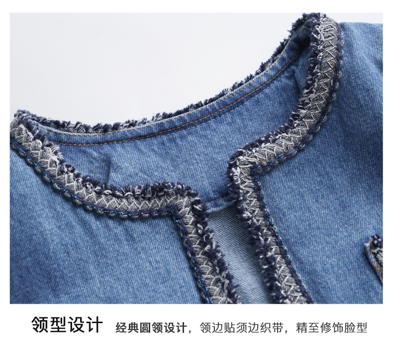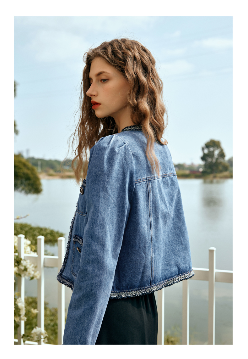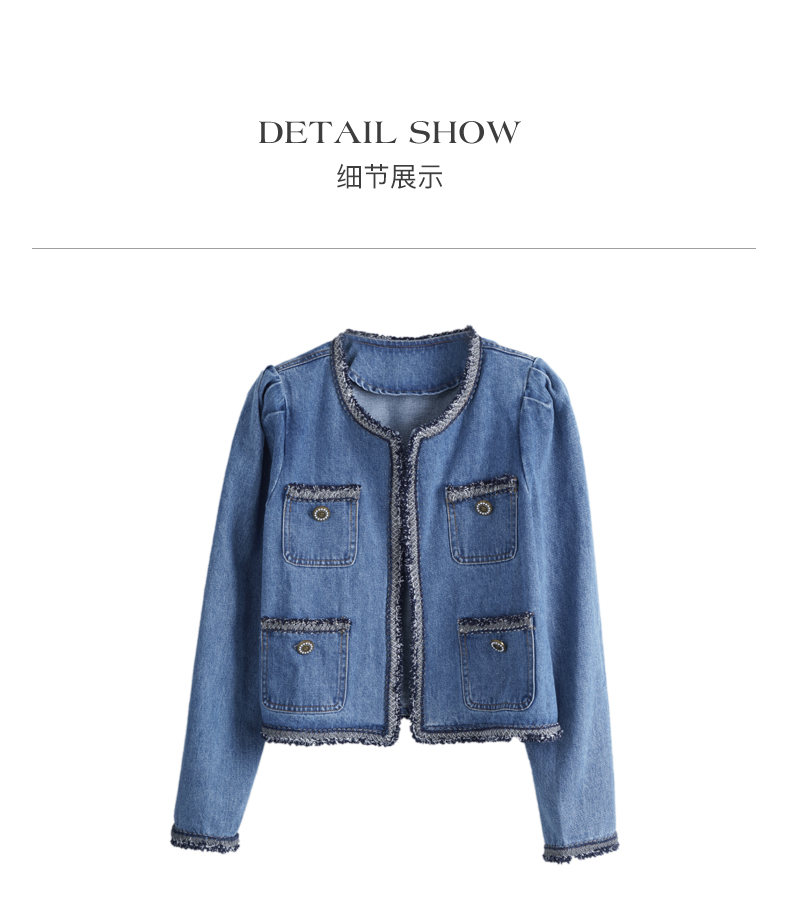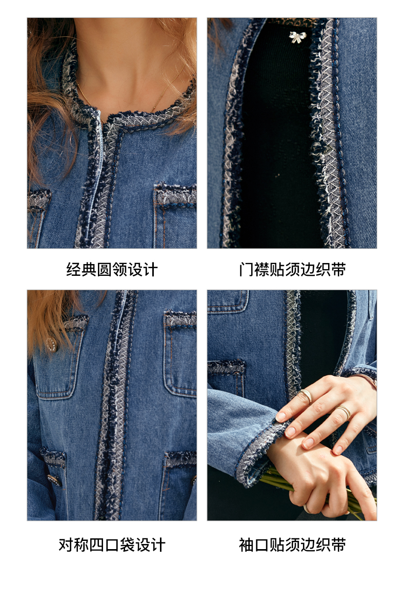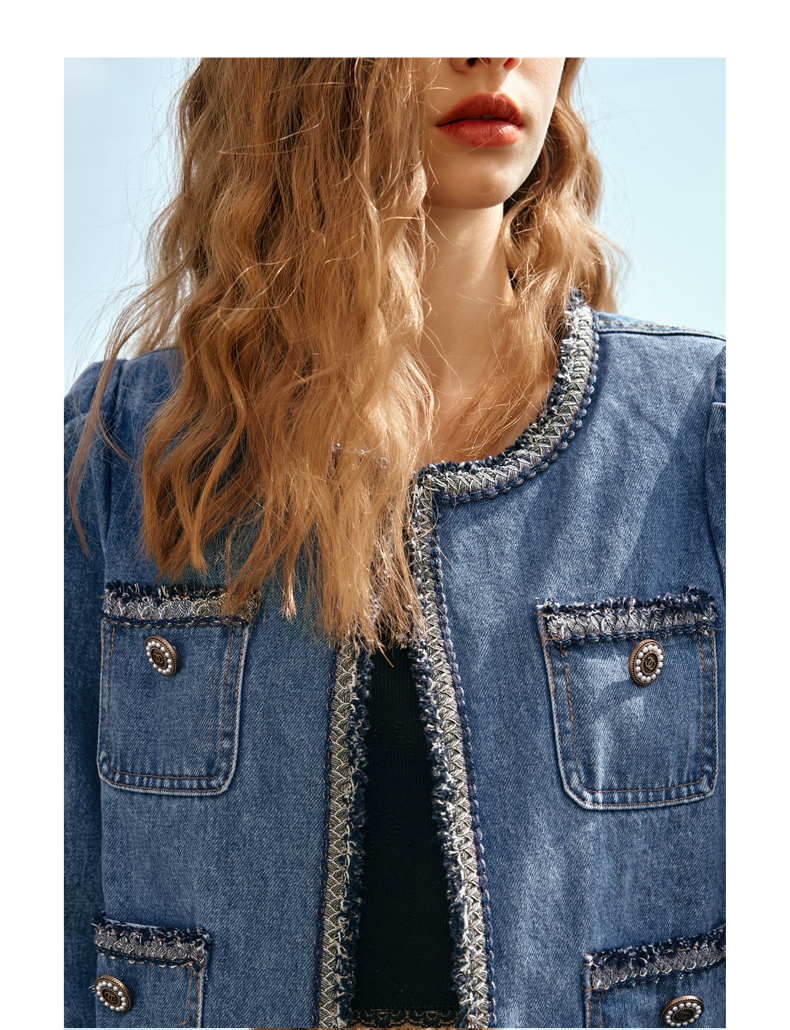 OLrain欧芮儿法式小香风牛仔外套女早春2024年新款复古圆领上衣