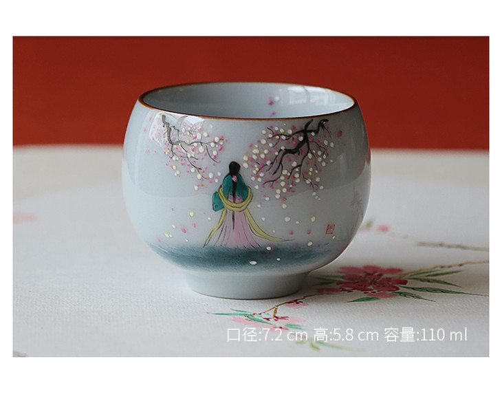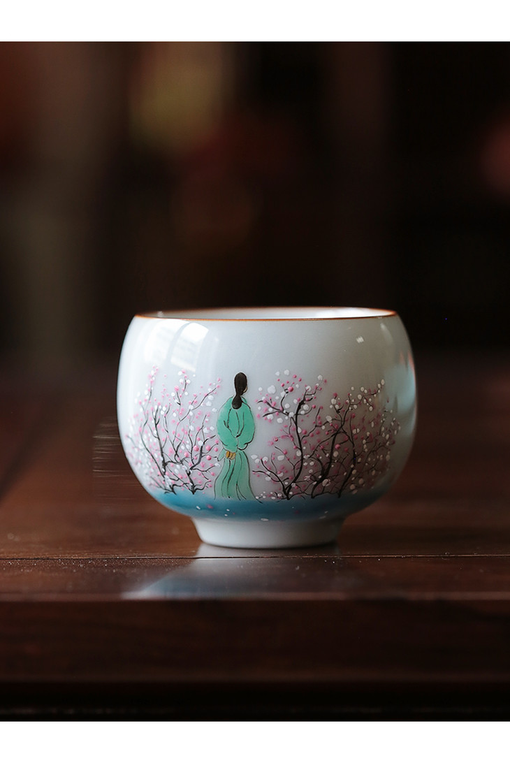 【茶杯/品茗杯】二梅仕女杯官窑瓷主人杯纯手工手绘