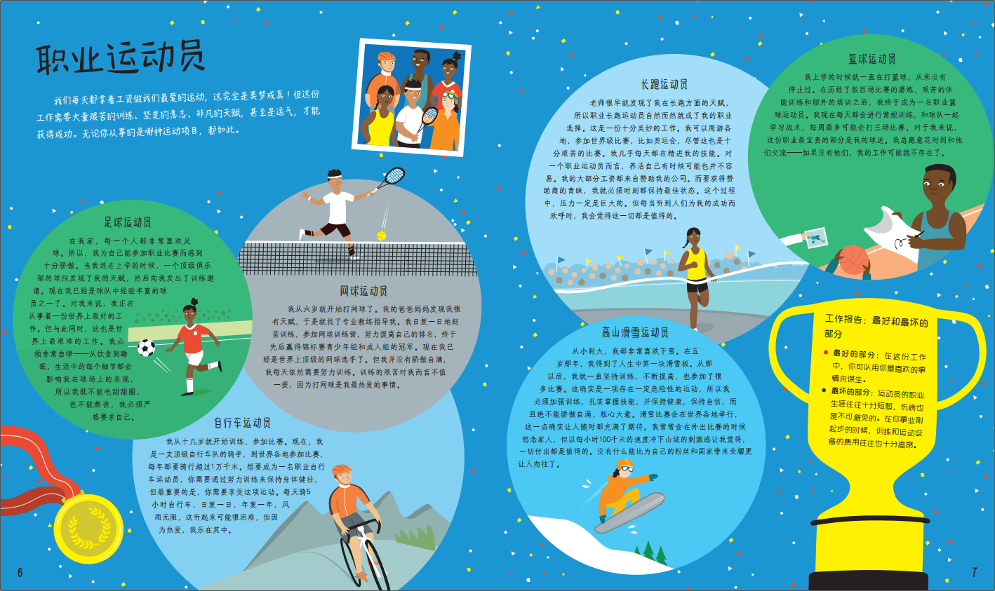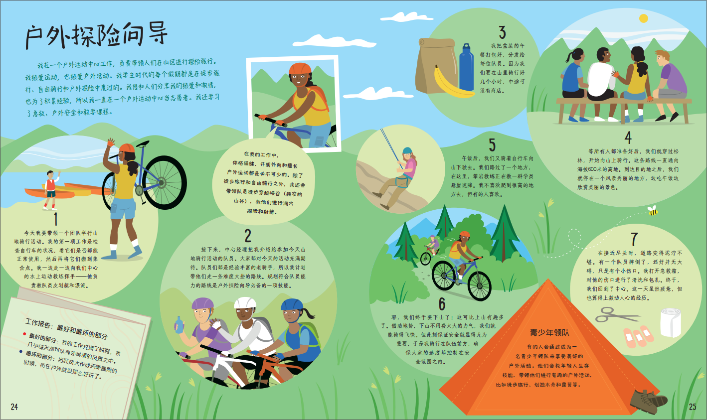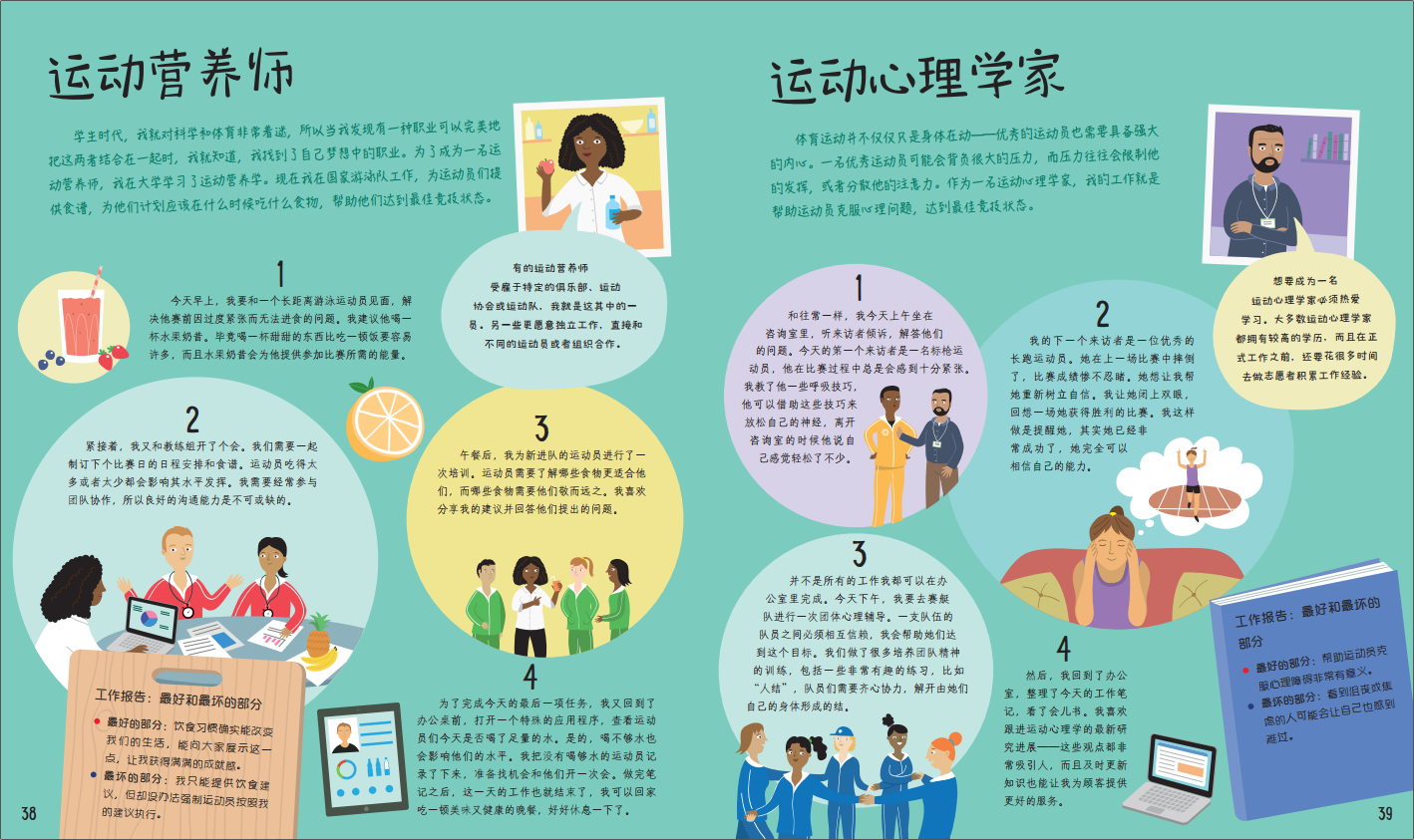 以主题划分,关注孩子喜欢的“动物”“运动”“户外”主题,将每种职业从业者一天的工作内容呈现出来,并总结了最好和最坏的部分,帮助孩子避开偏见和美化,全面认识各种职业。