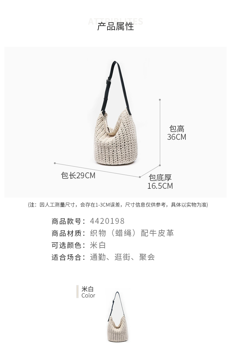 和诚行2026春季新款编织包镂空菜篮子水桶包托特包大容量百搭腋下包单肩包4420198