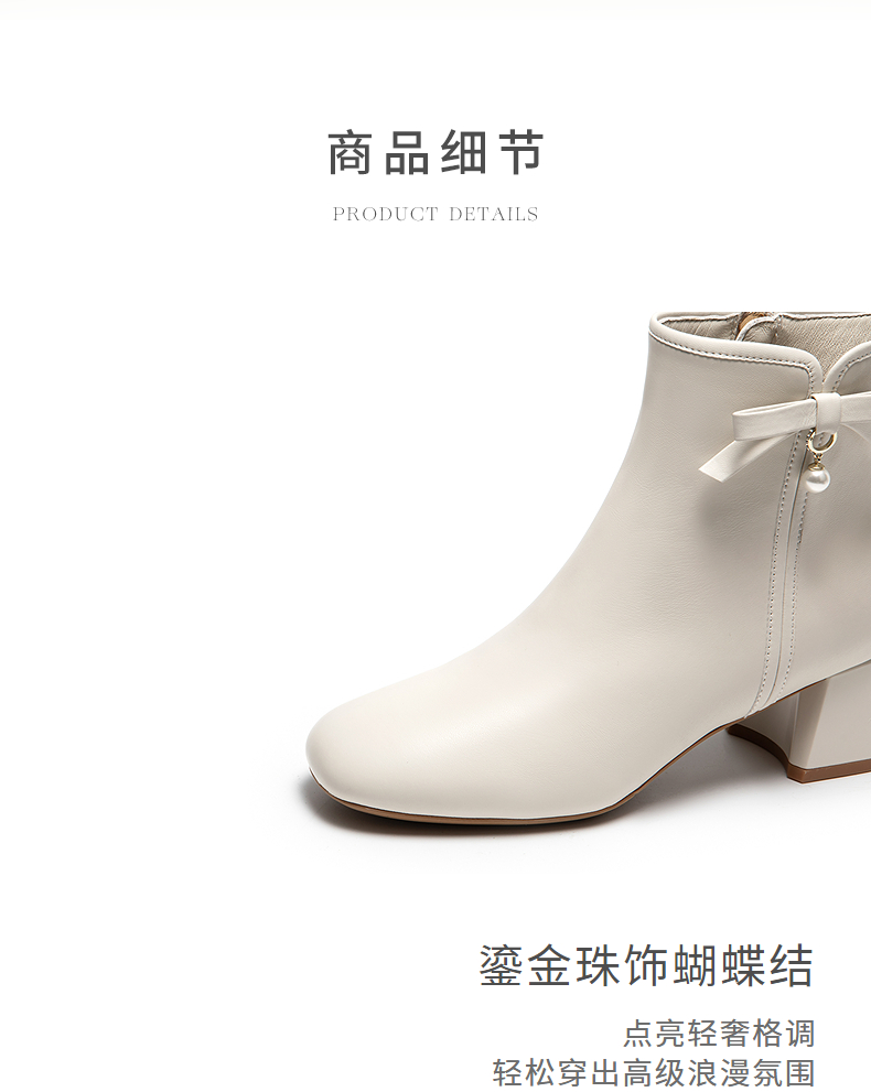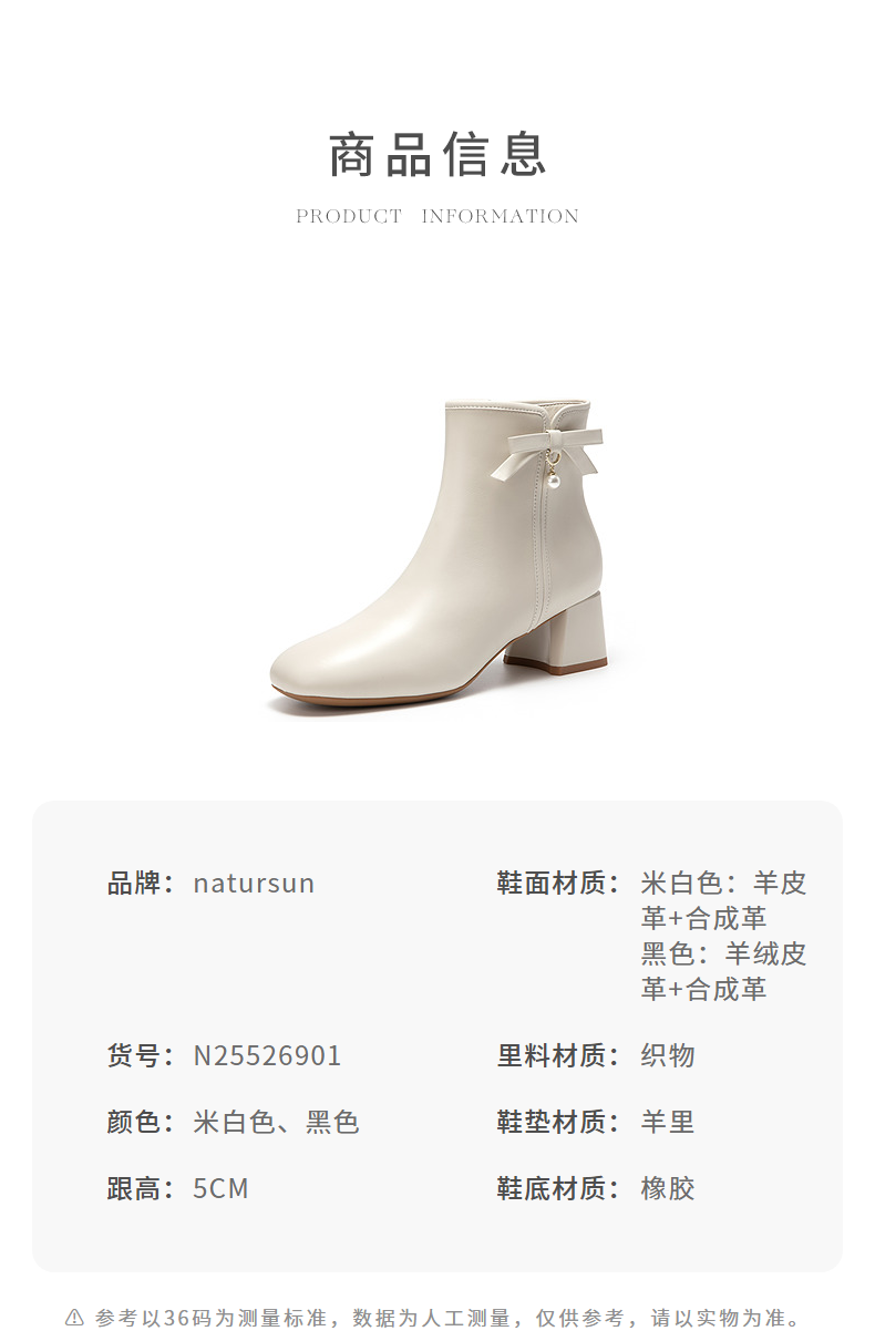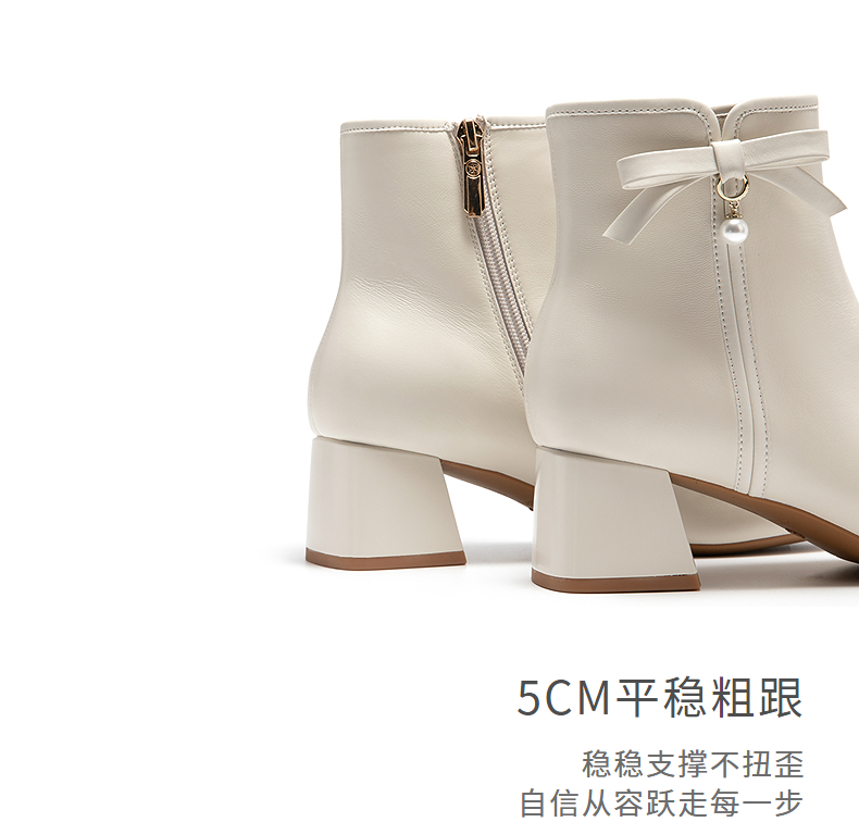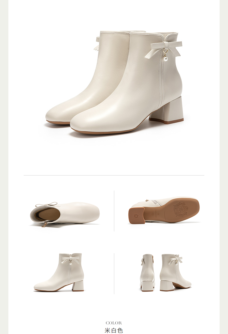 natursun简约时装靴女小蝴蝶结短靴温柔气质百搭靴子N25526901