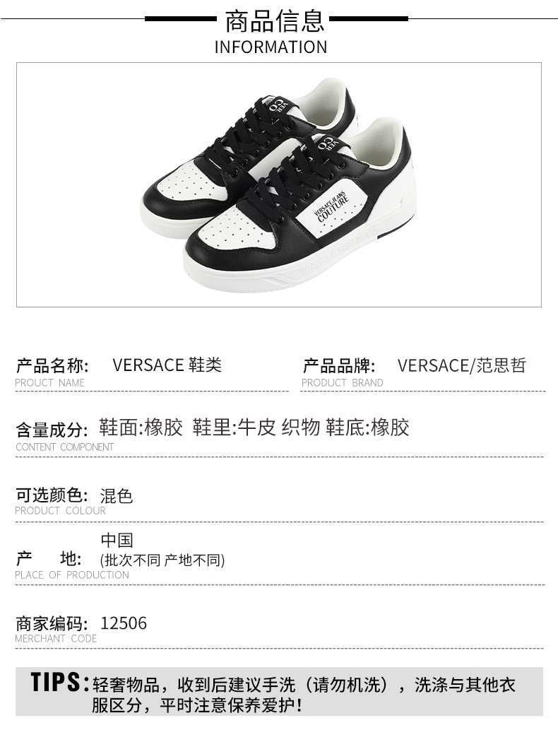 【超惠秒】Versace 范思哲 男士真皮简约百搭运动休闲鞋12506