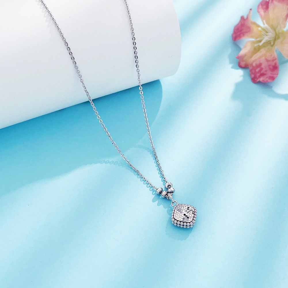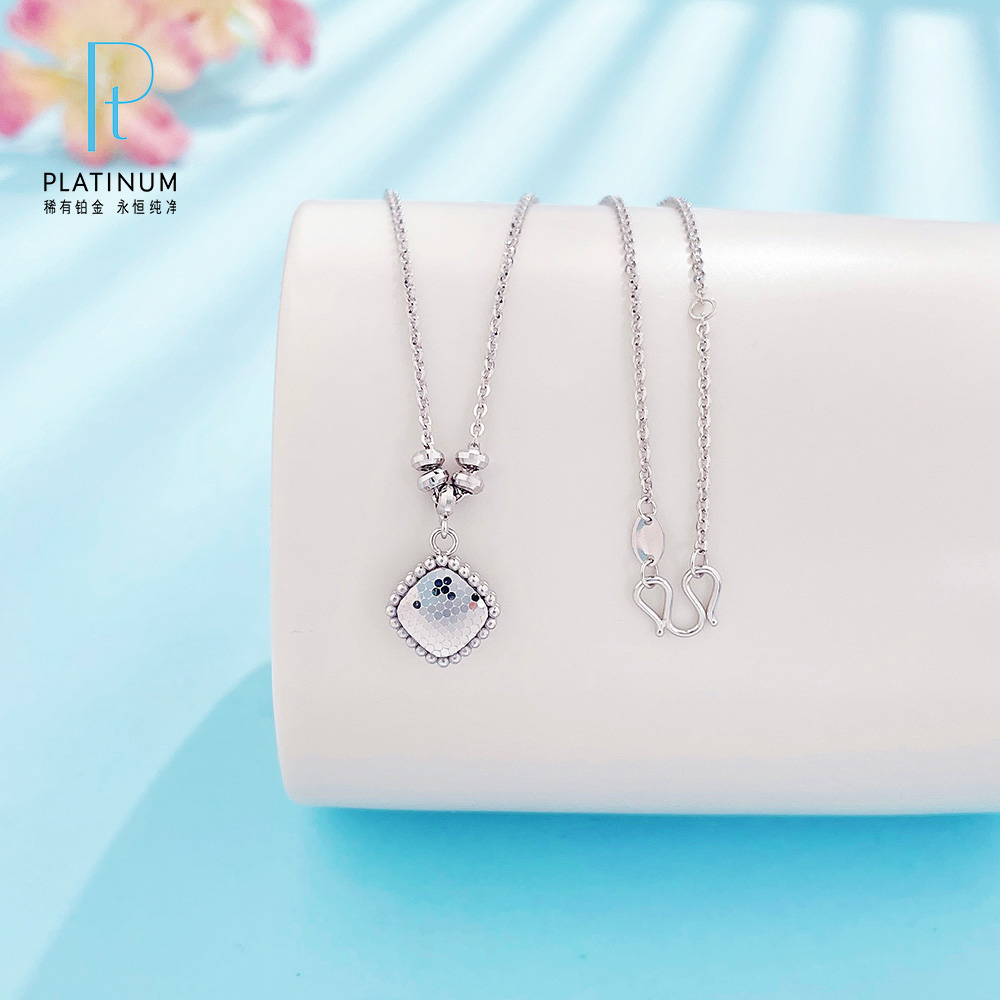 【限时8.8折】【线上铂金馆】PT950 【国际铂金协会】铂金空心辘珠边鱼鳞镭射方形调节套链(BTL00345)预售产品下单后不退款不退货不换货不补差价)