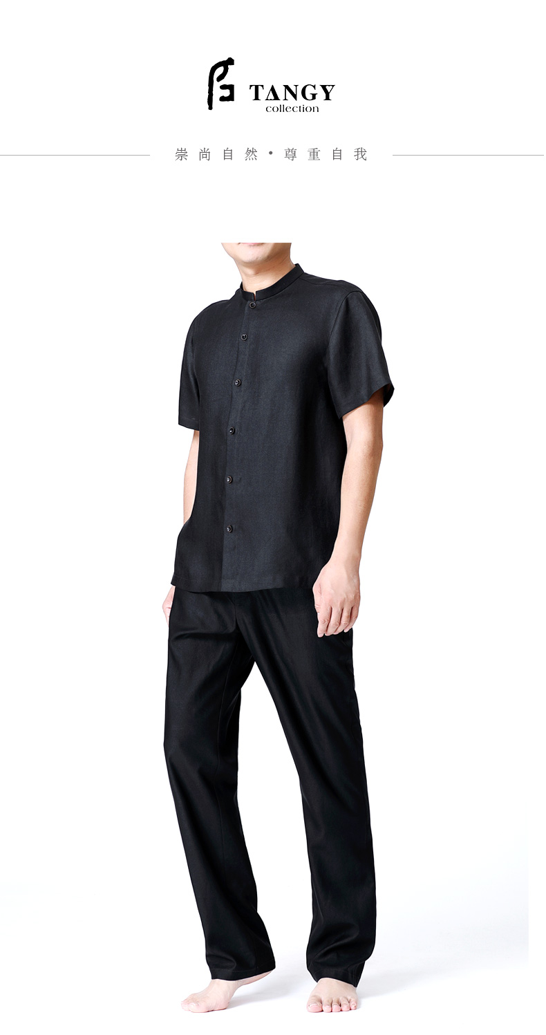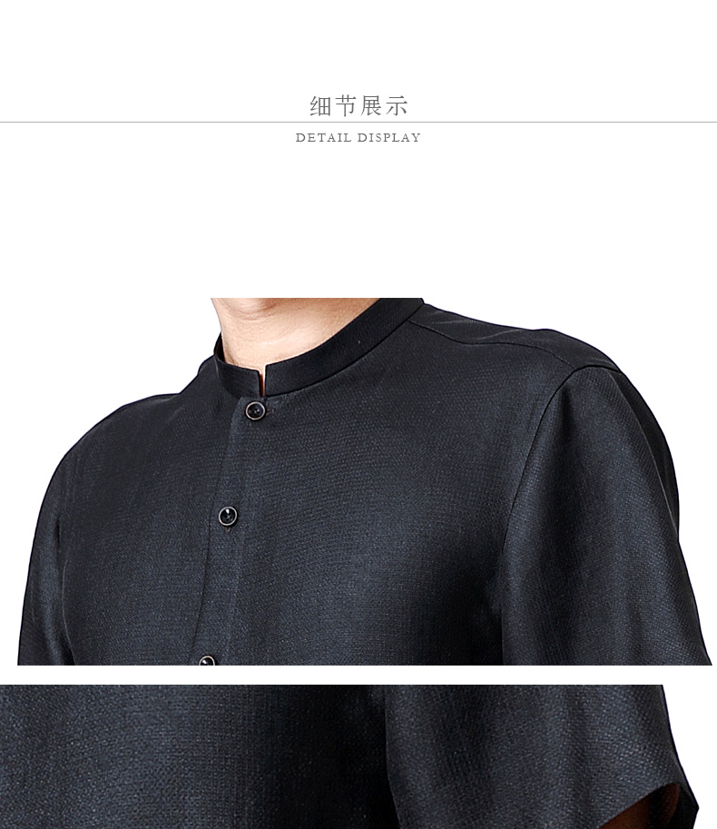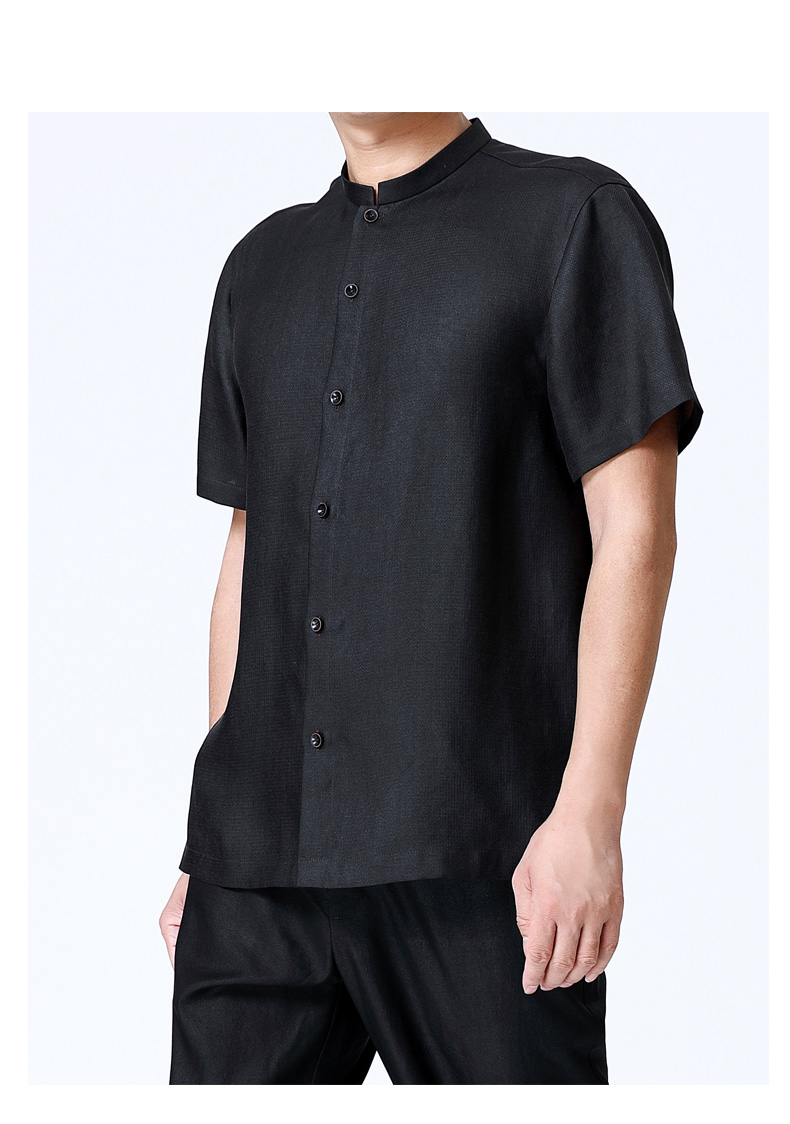 TANGY Collection/天意精品春夏新品男士桑波缎立领莨绸短袖衬衫