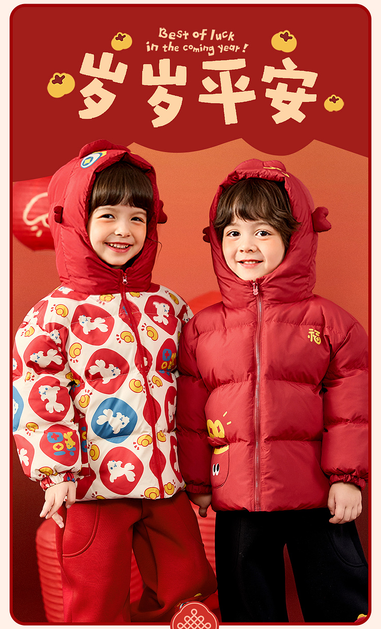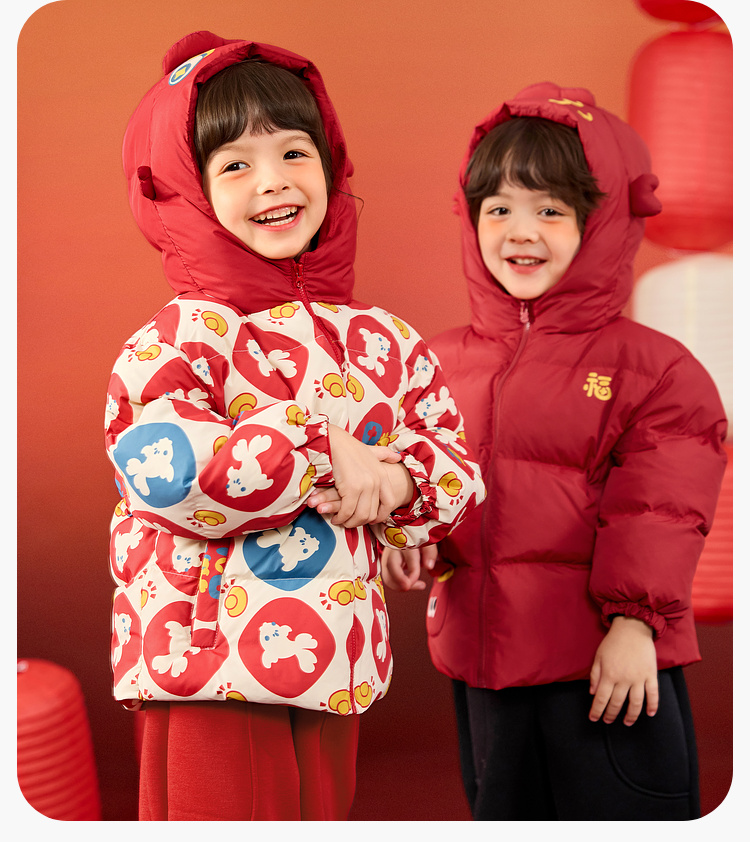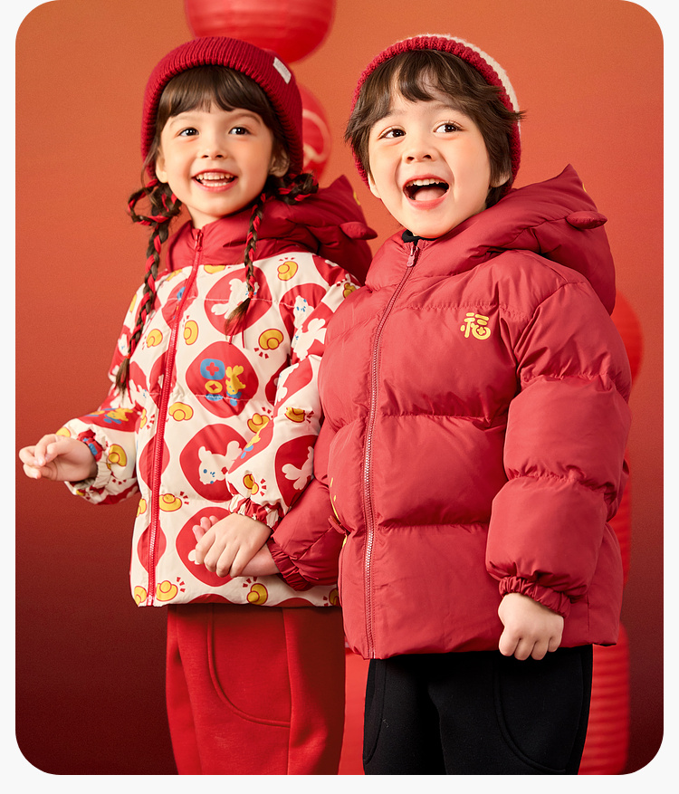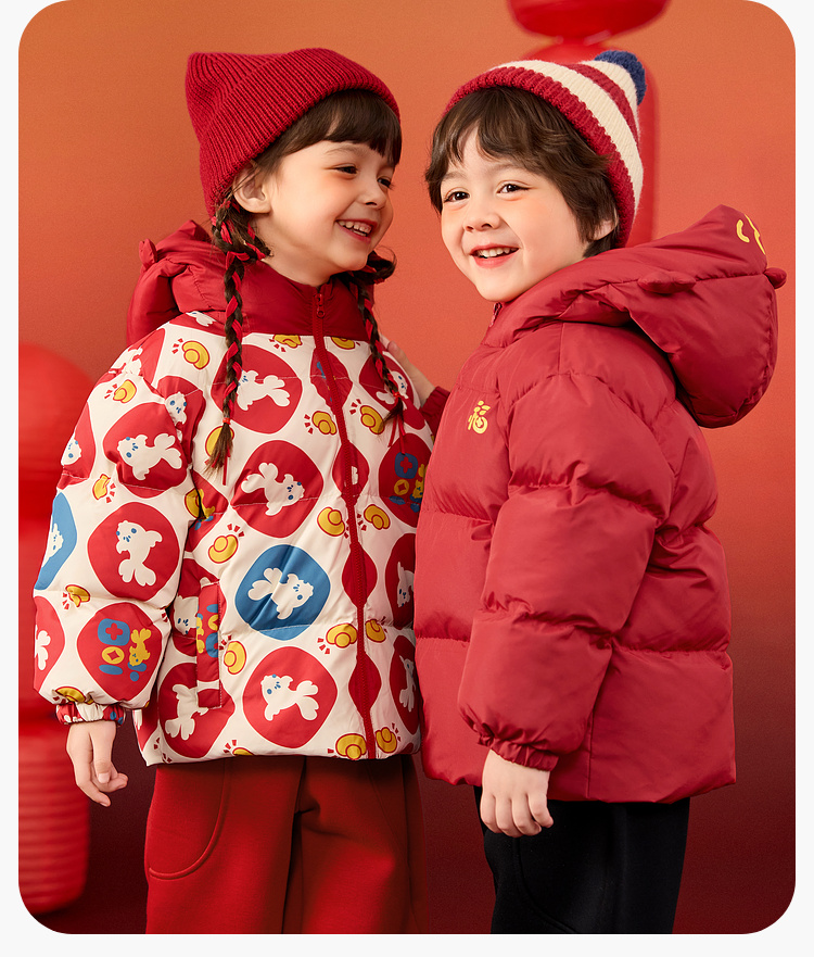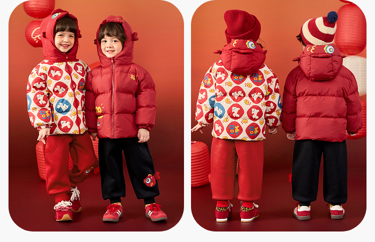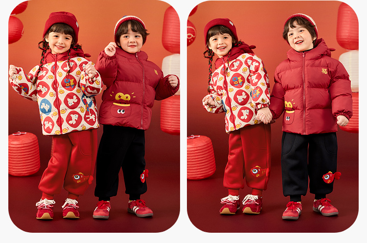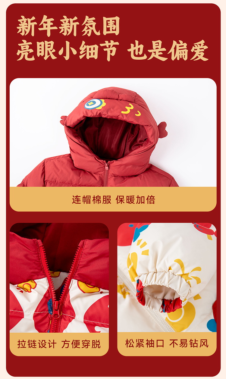 嘟嘟家儿童年装男童拜年服女童棉服红色宝宝外套喜庆女宝周岁礼服