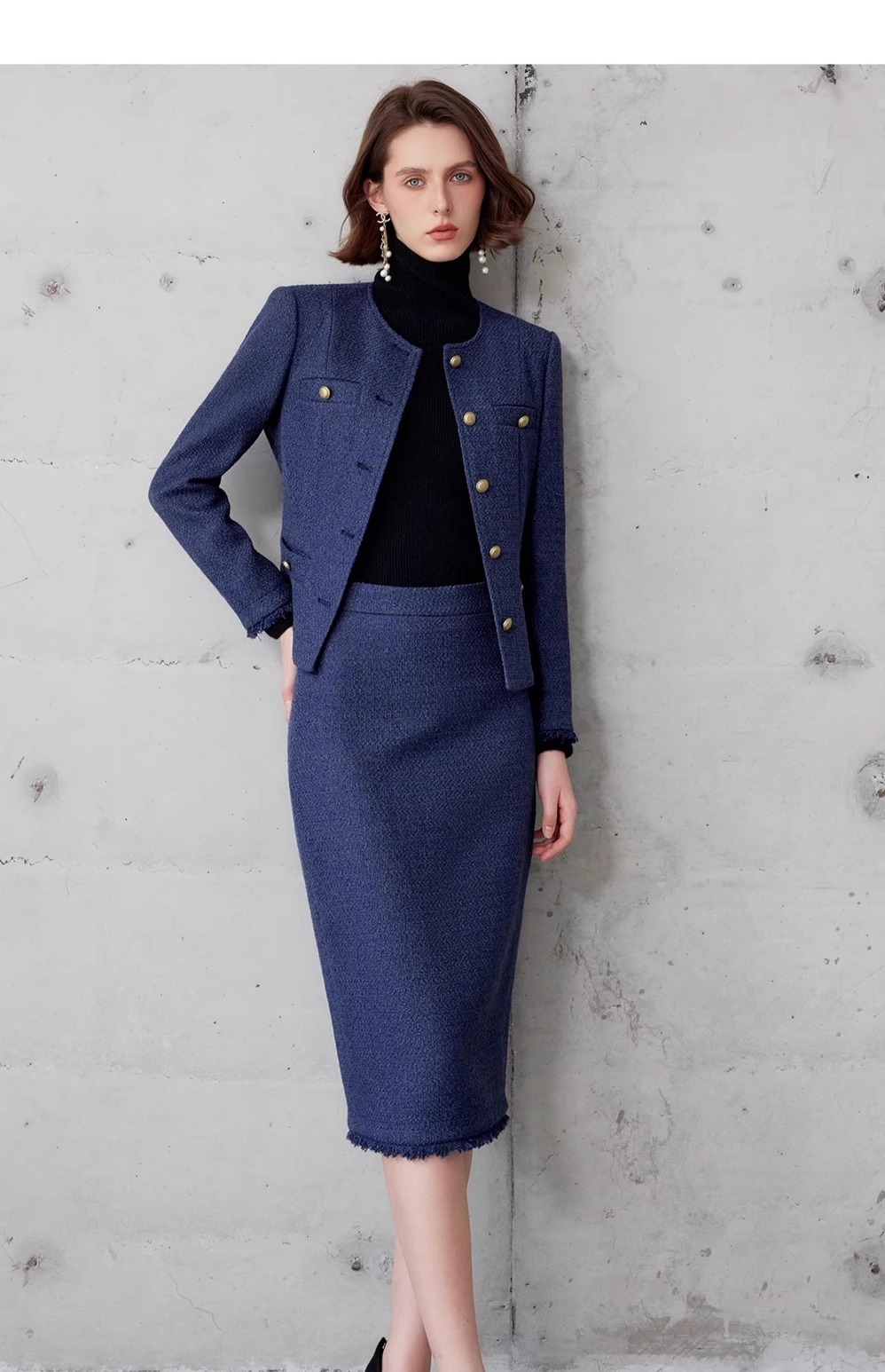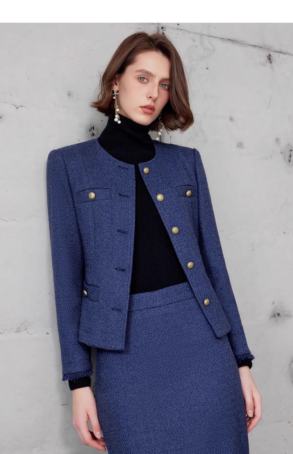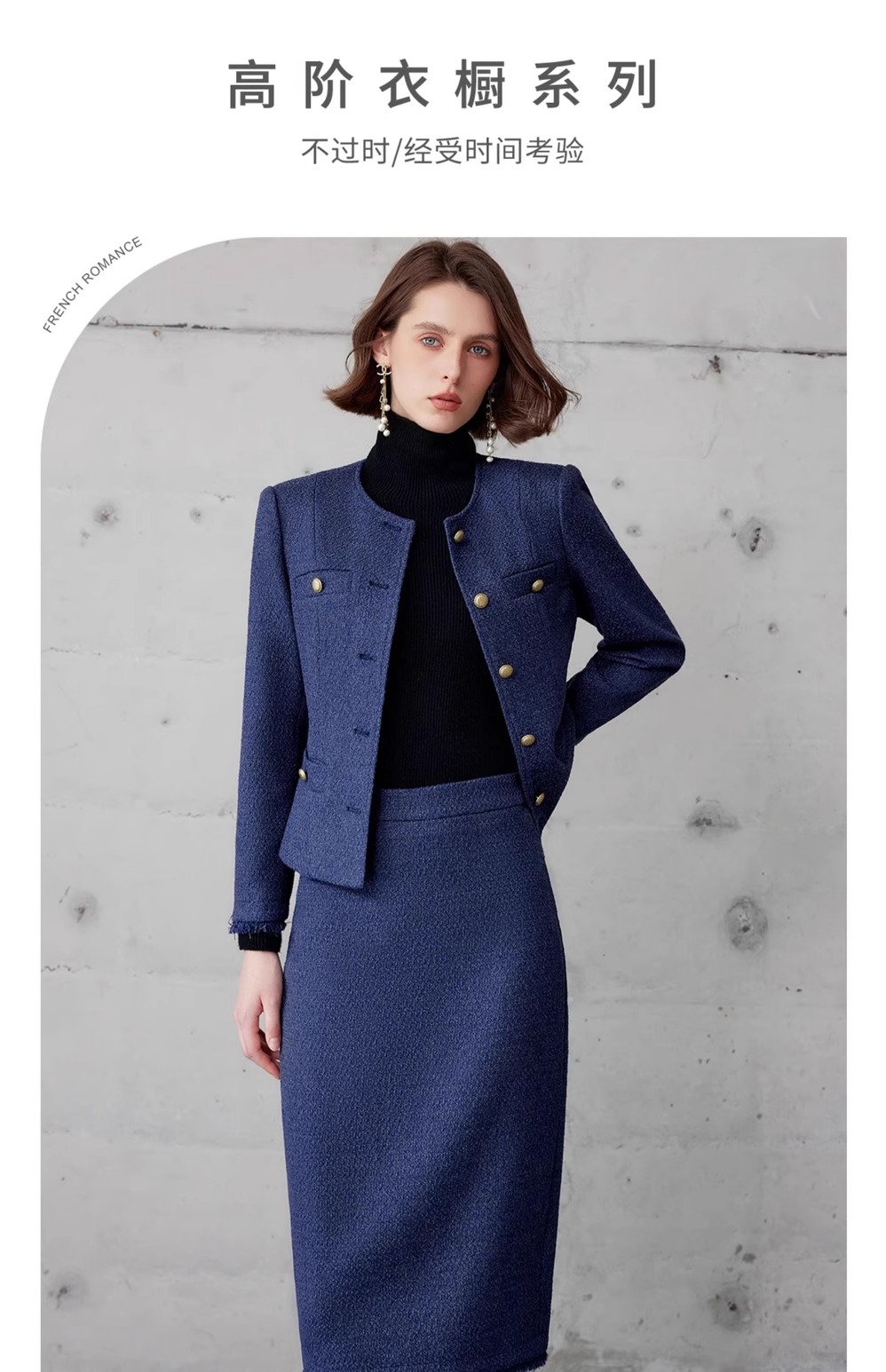 IWY/轻奢贵气金丝编织粗花呢套装冬季新款蓝色名媛小香风两件套CS2119