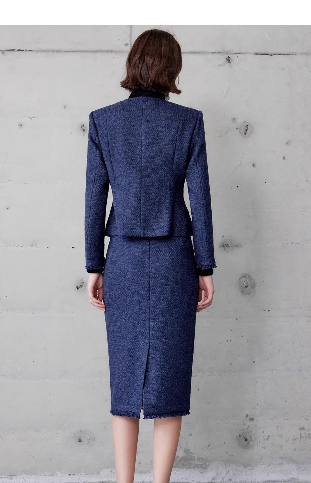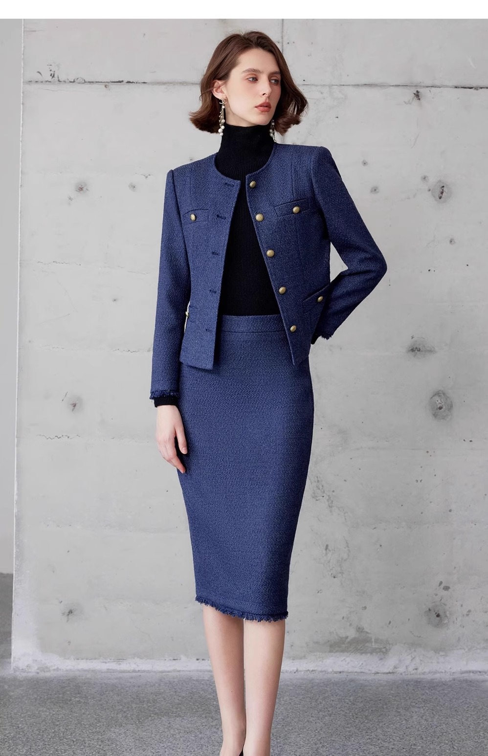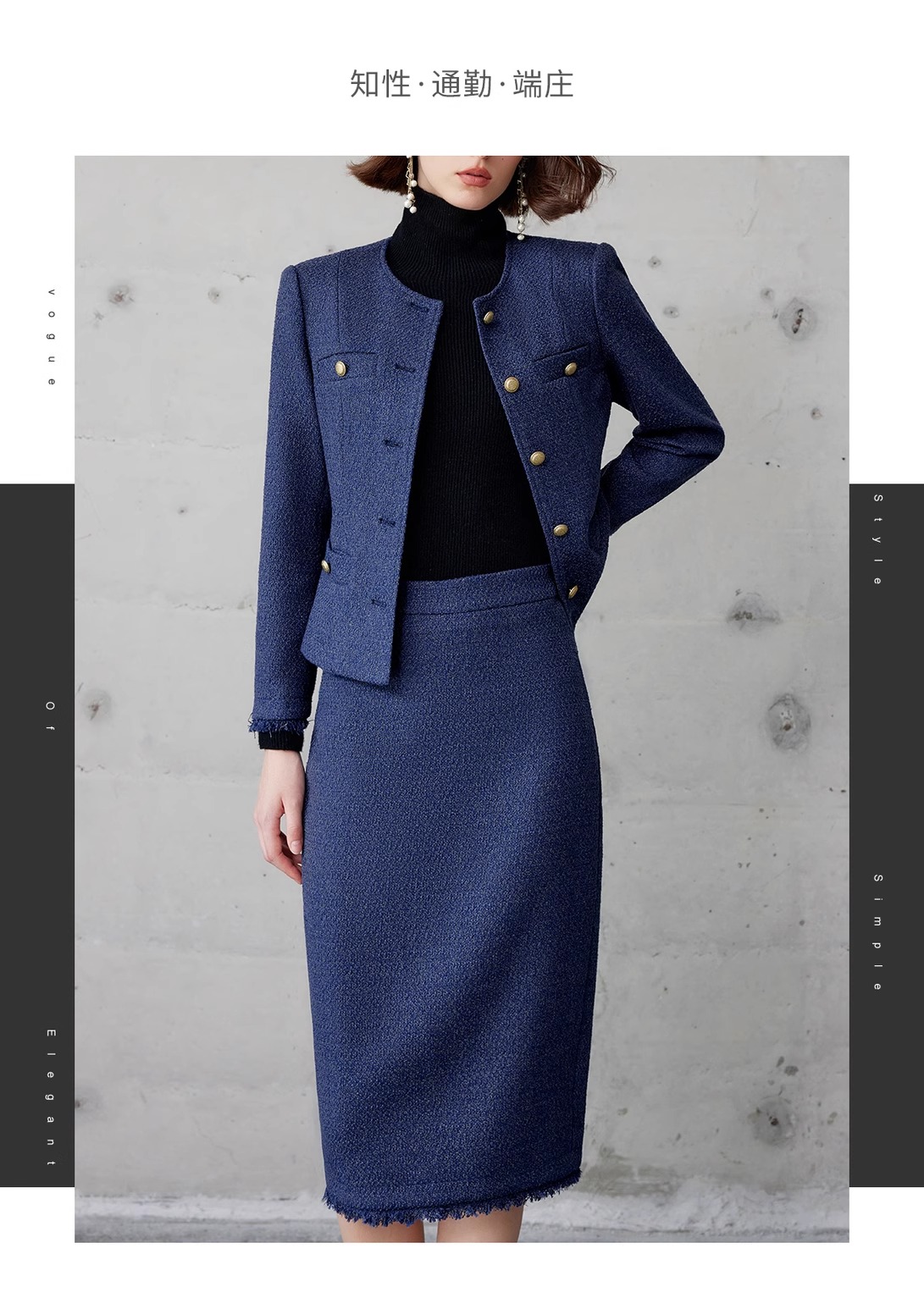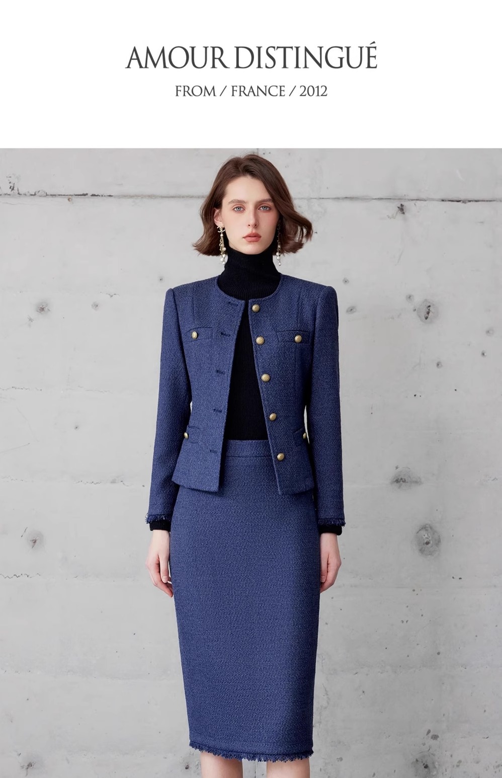 IWY/轻奢贵气金丝编织粗花呢套装冬季新款蓝色名媛小香风两件套CS2119