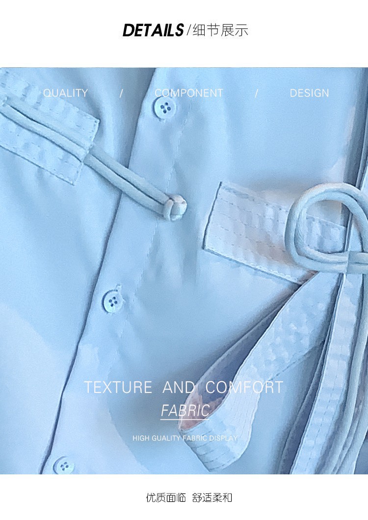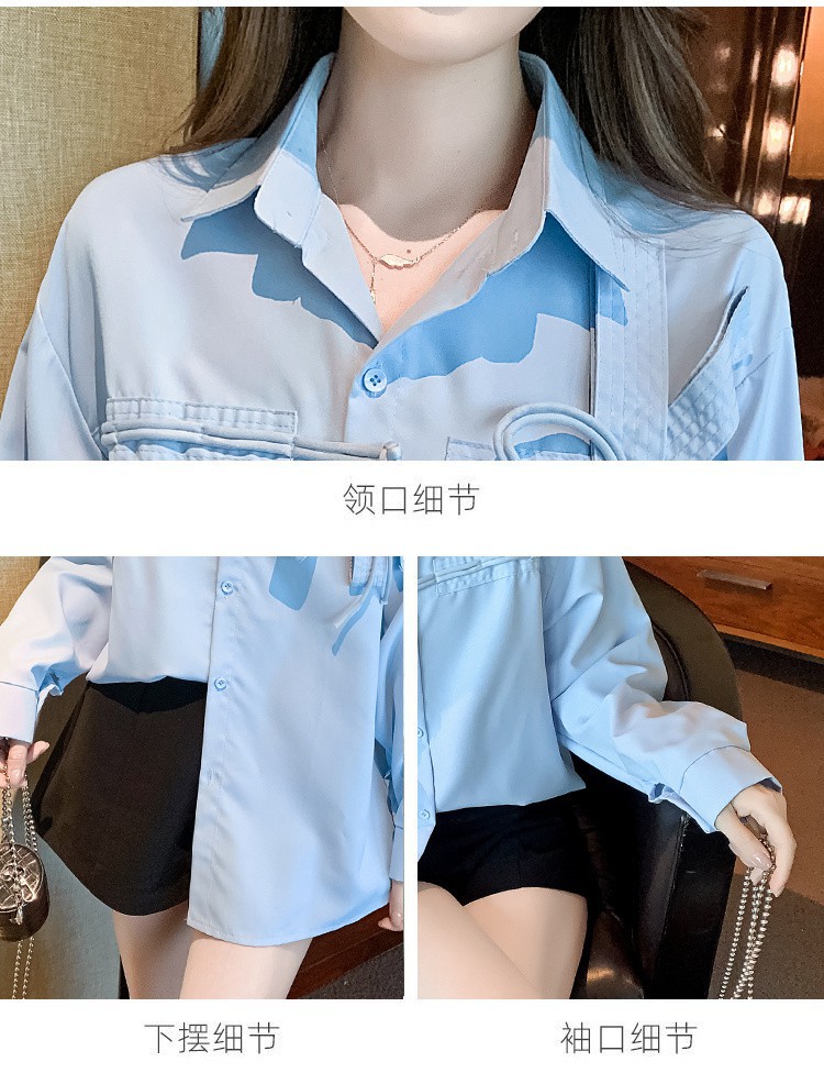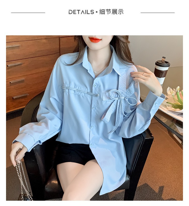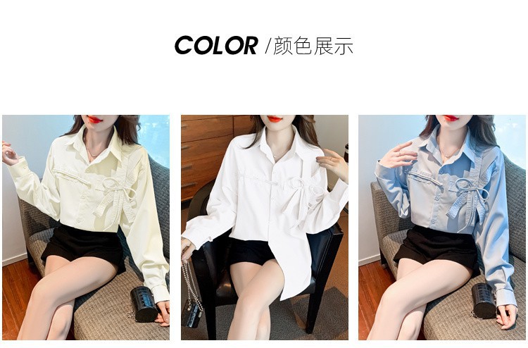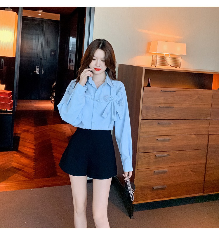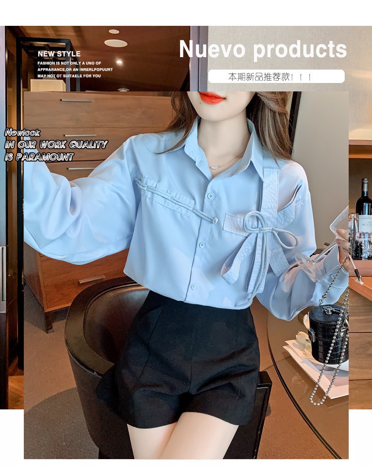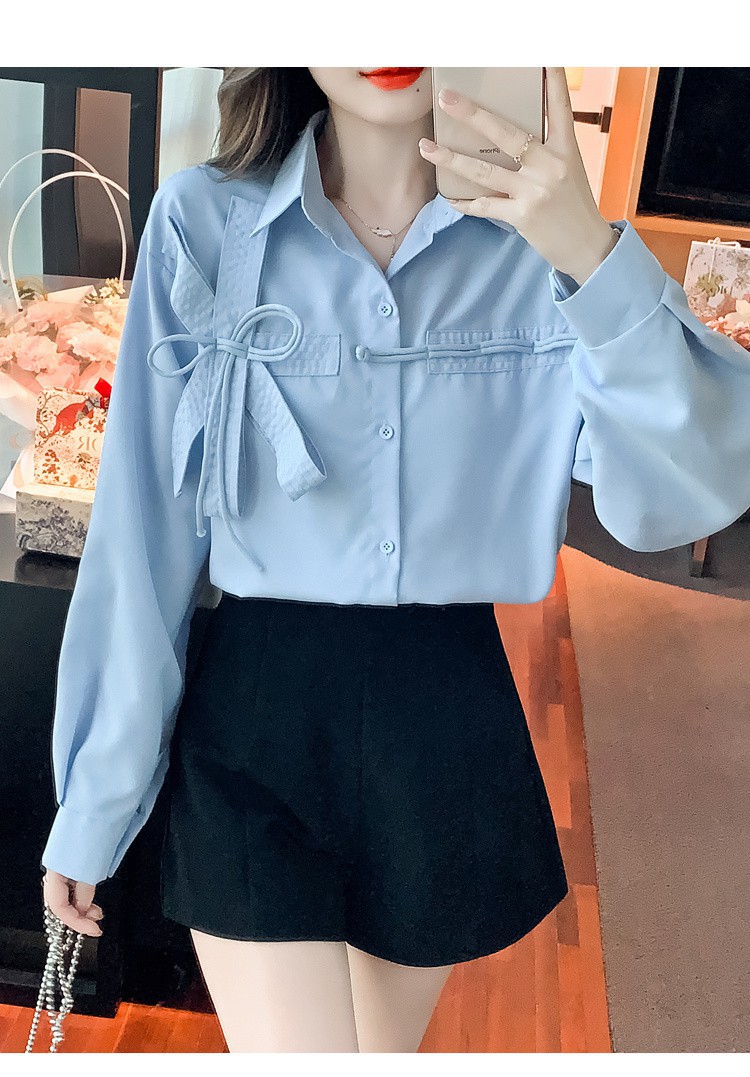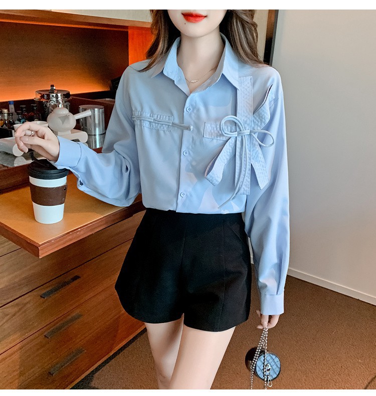 【Polo领蓝色衬衫】设计感小众蝴蝶结长袖衬衣 春秋chic减龄甜美上衣