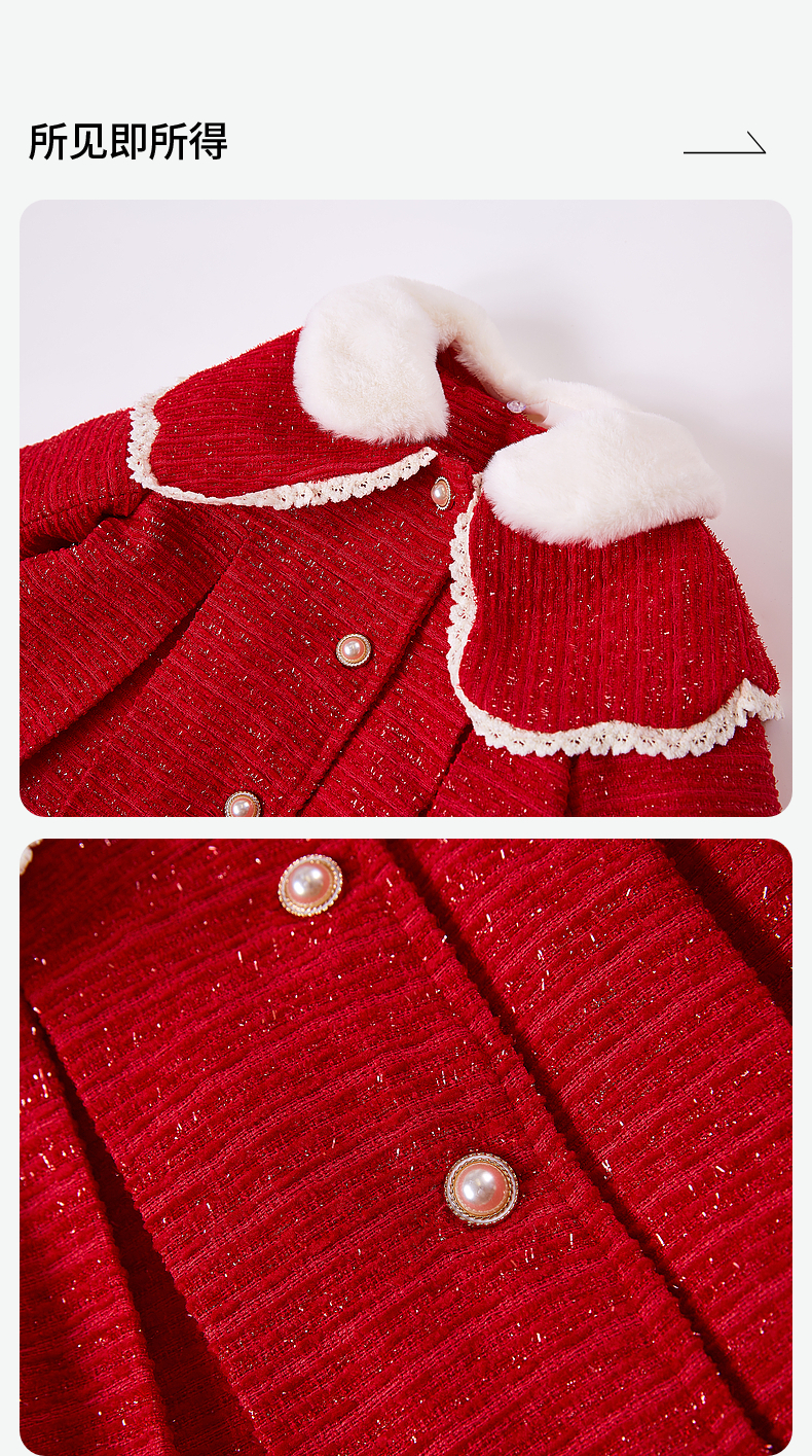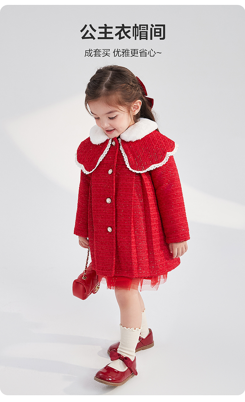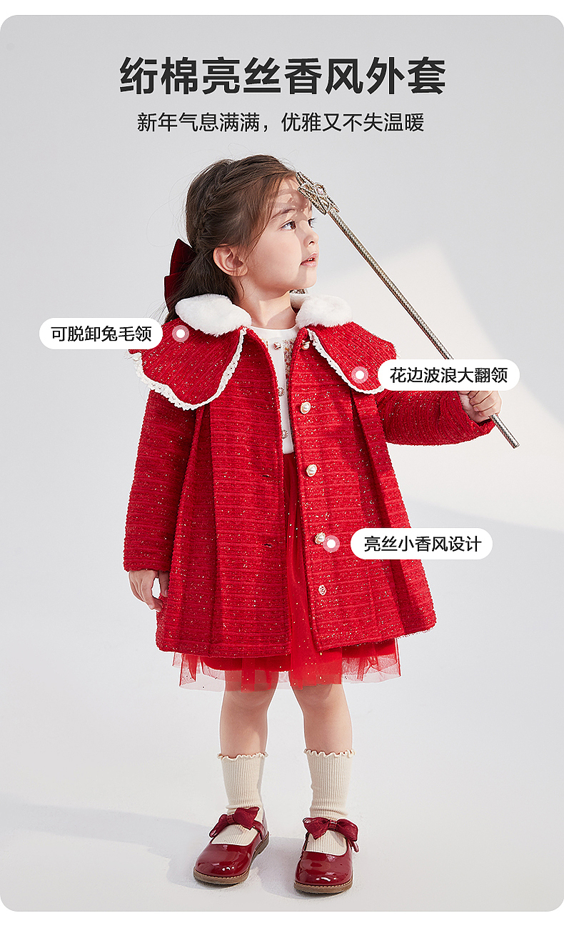 笛莎女童羽绒服2023冬季新款时尚香风外套