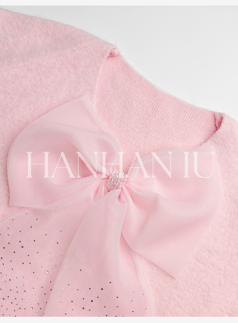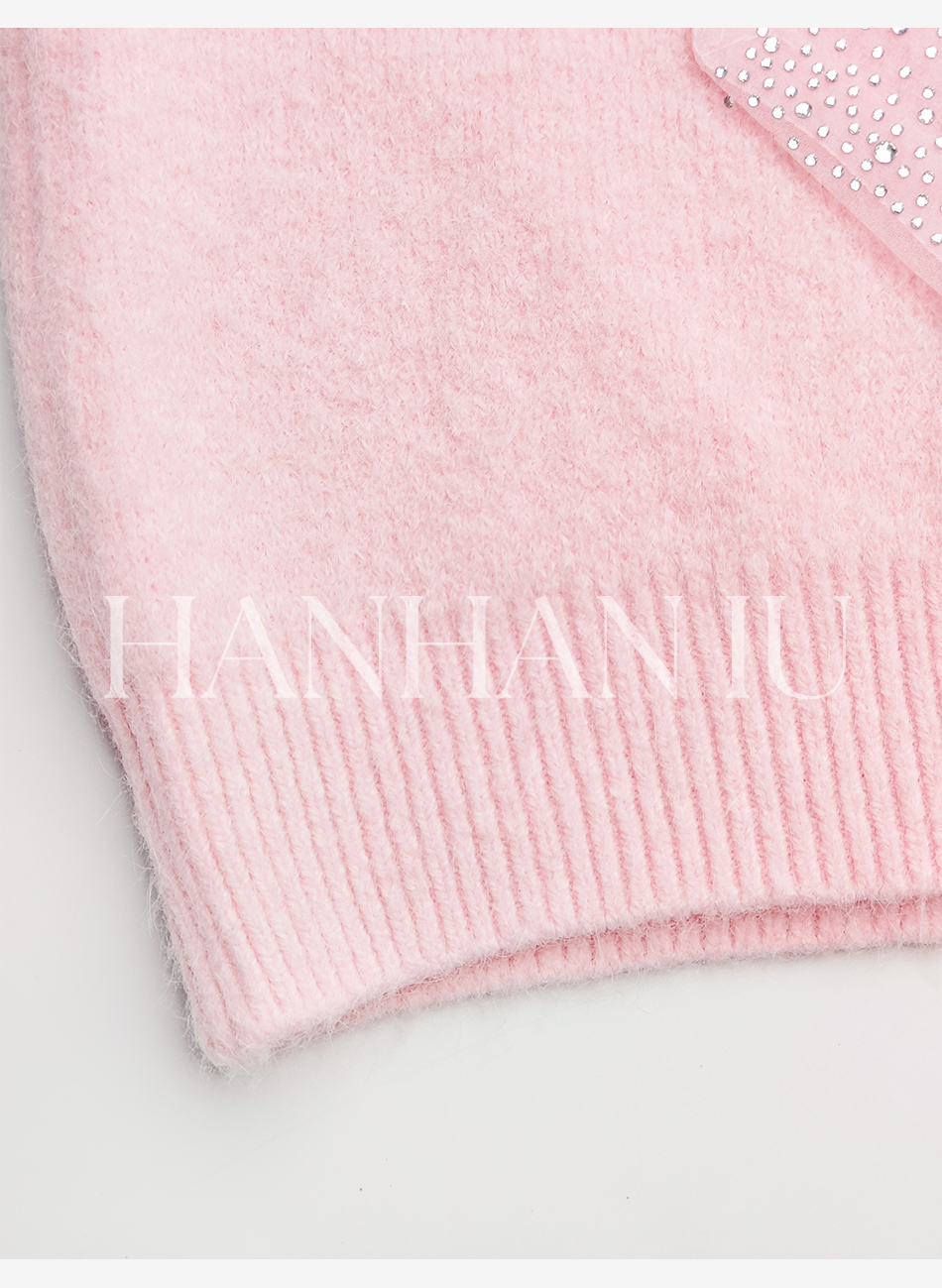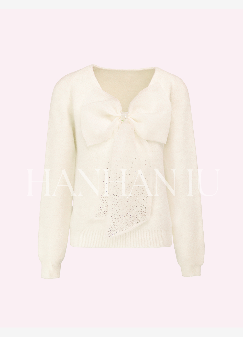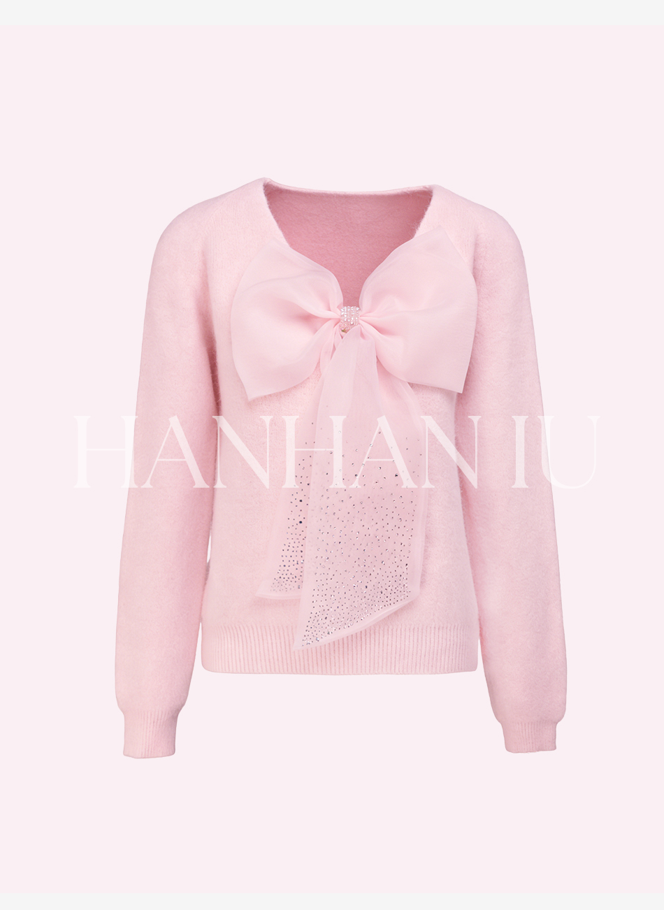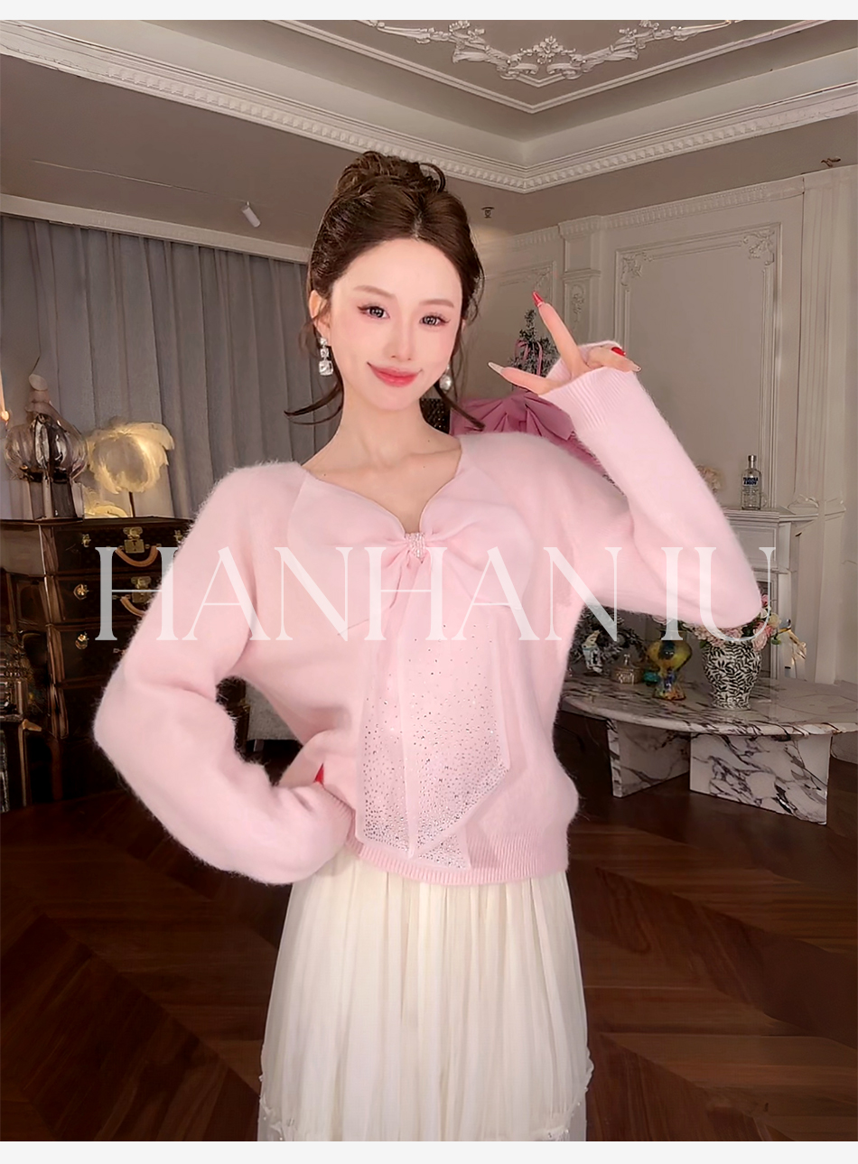 【孤品样衣,不退不换】【甜心记忆】高定兔毛混纺纱线手工亮钻蝴蝶结女士毛衫外套