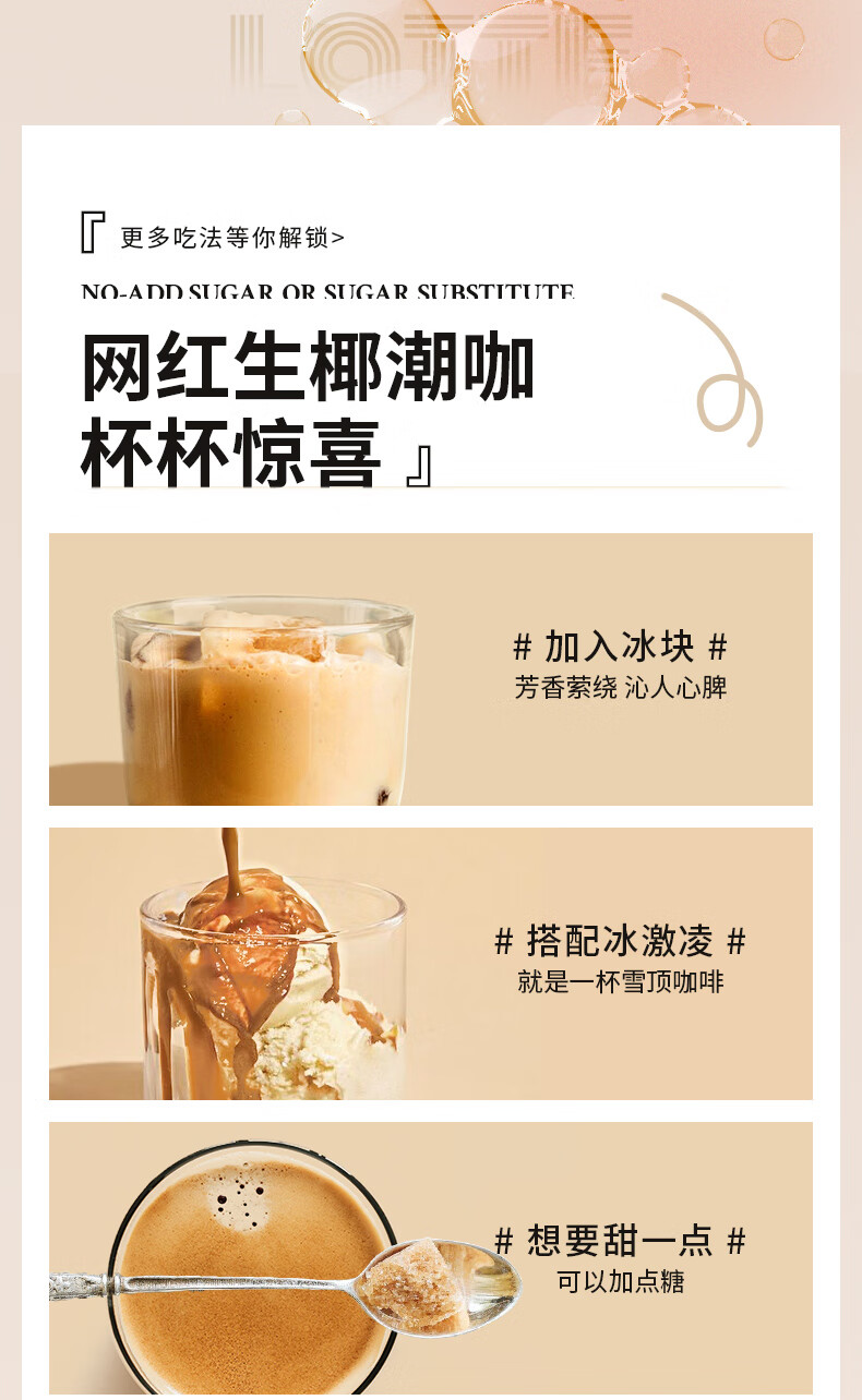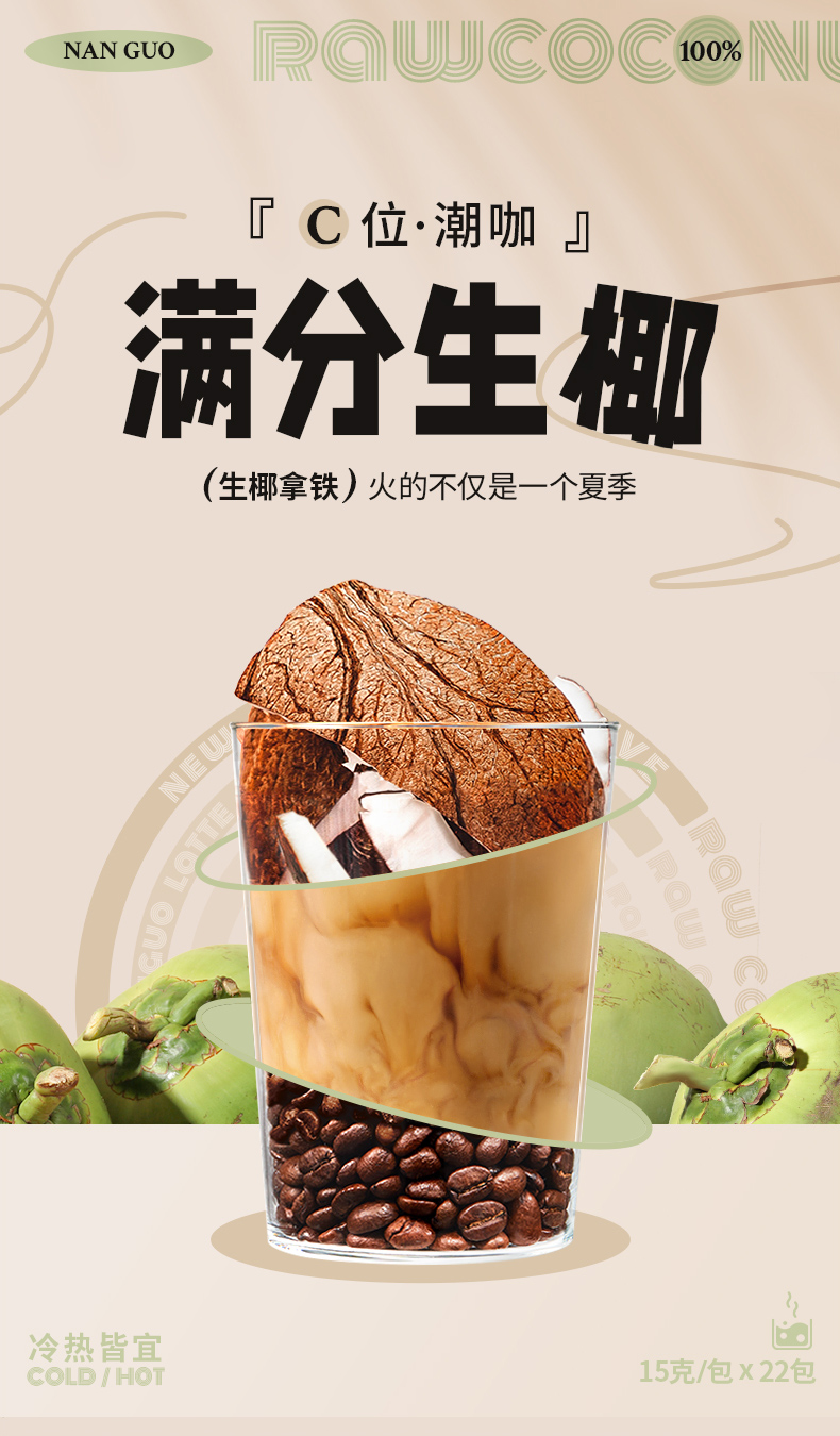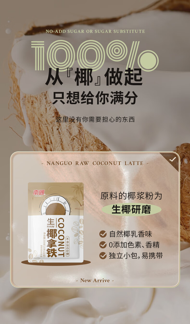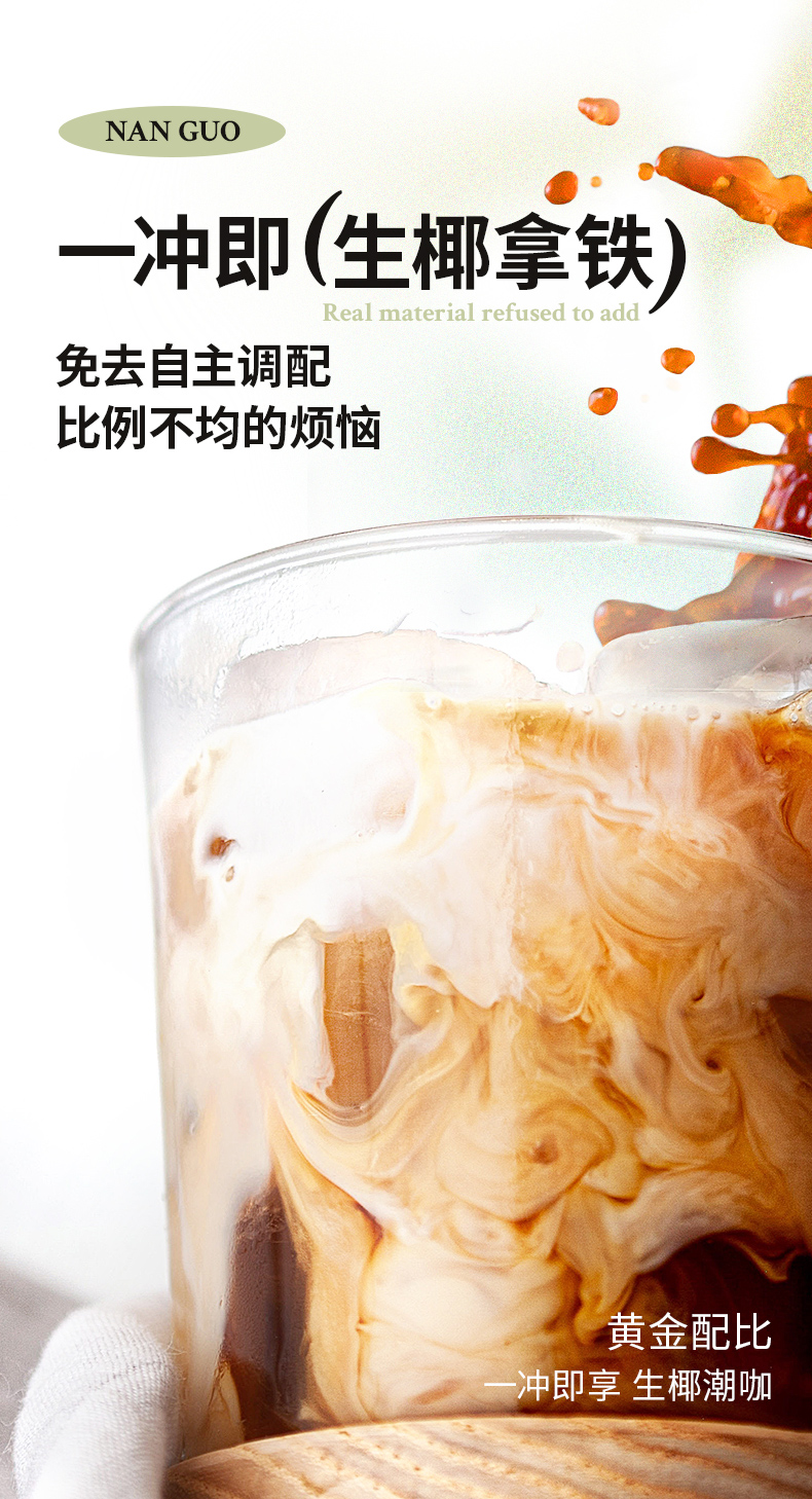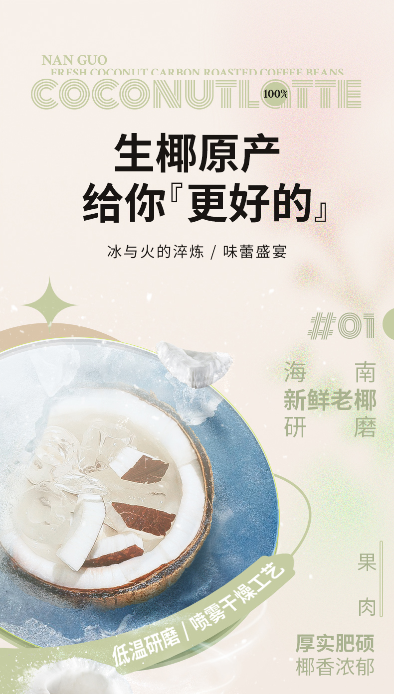 【南国生椰拿铁】 咖啡的浓郁+生椰的丝滑 原产海南生椰 【无添加】白砂糖,植物脂末 还原生椰浓郁口感