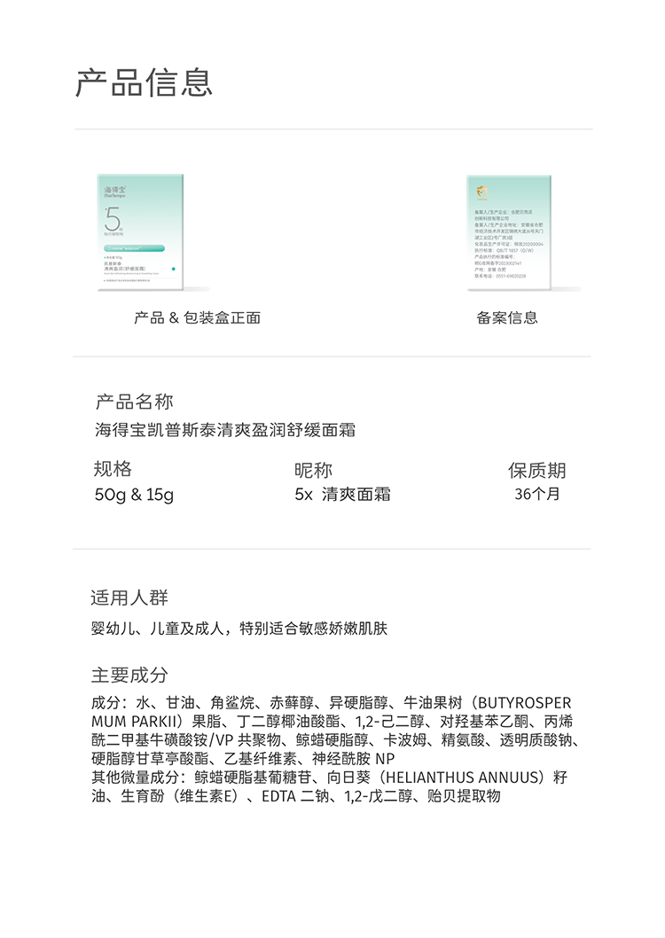 海得宝夏季新款清透5x面霜敏肌舒缓