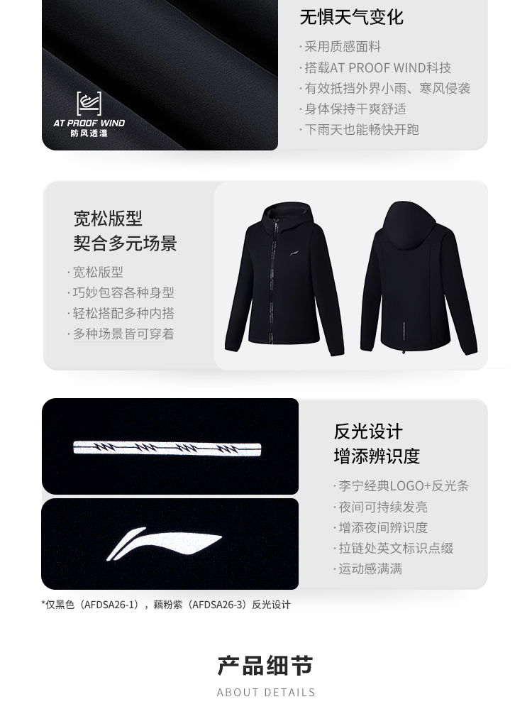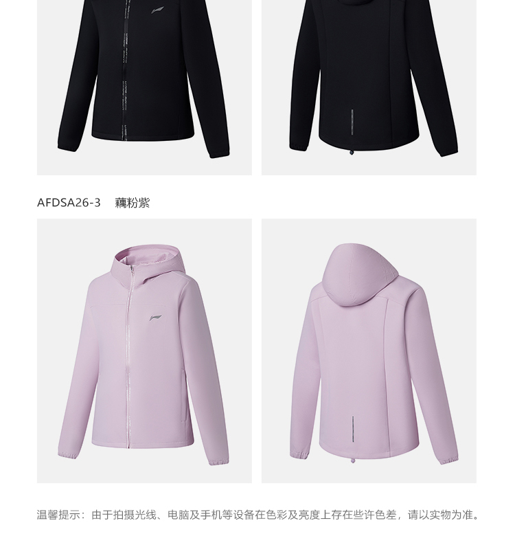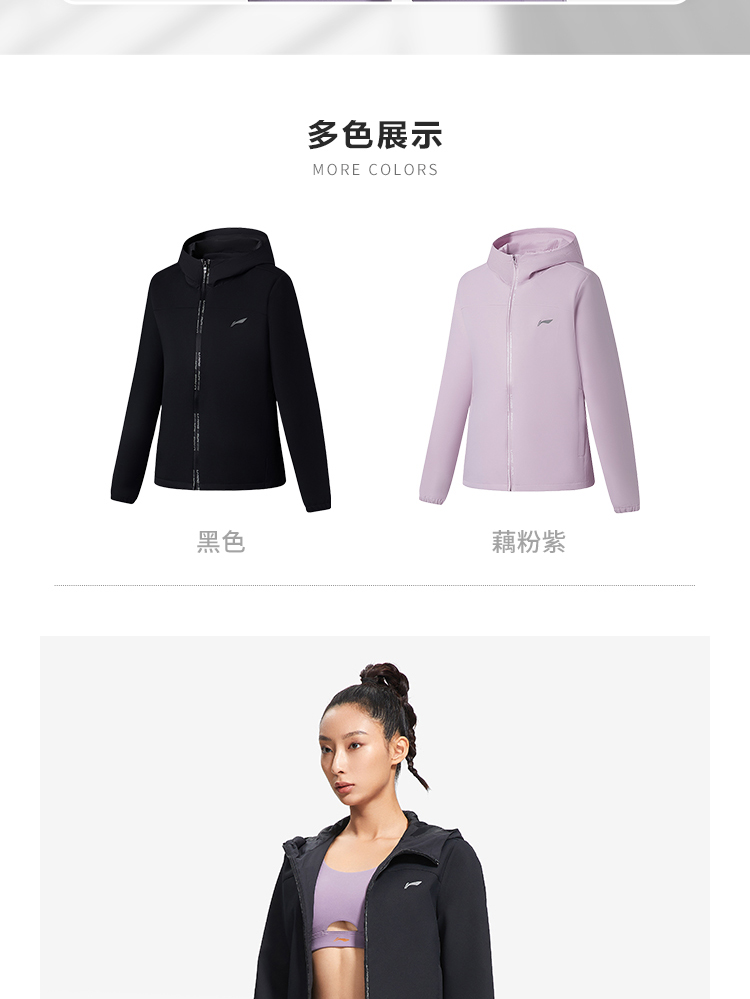李宁2022新款风衣女士跑步系列冬季开衫长袖防风透湿连帽运动服