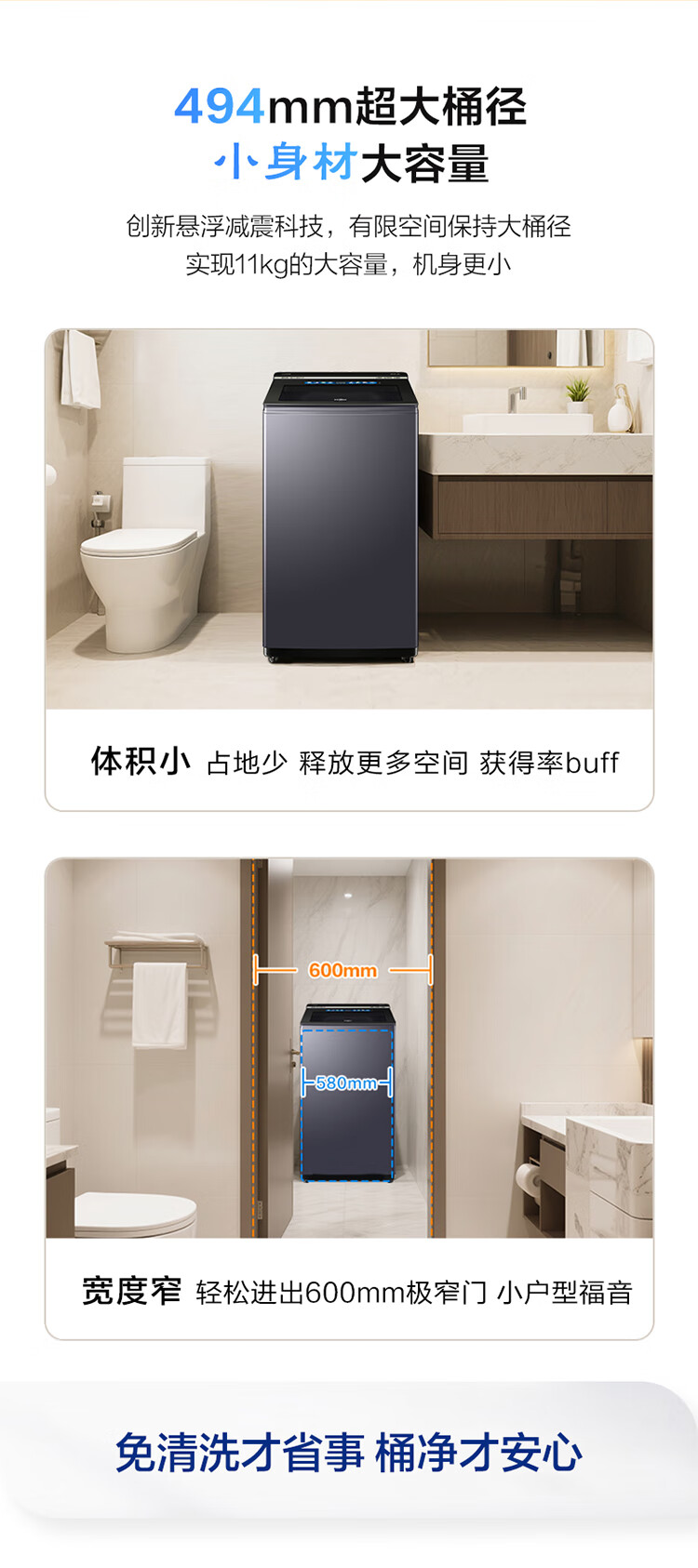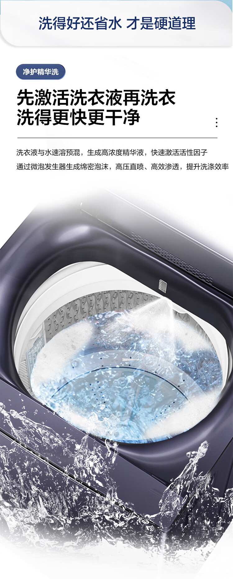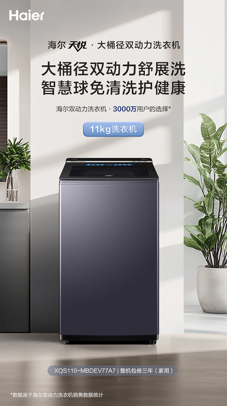 海尔11公斤全自动波轮洗衣机家用大容量直驱变频一级能效智慧球免清洗494mm大筒径 双动力+精华洗+光等离子除菌XQS110-MBDEV77A7