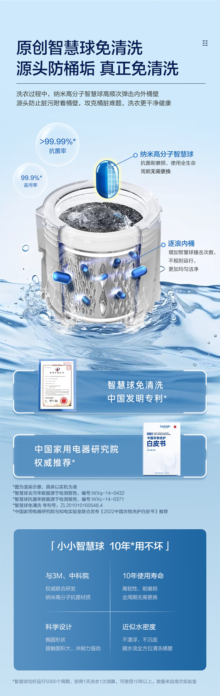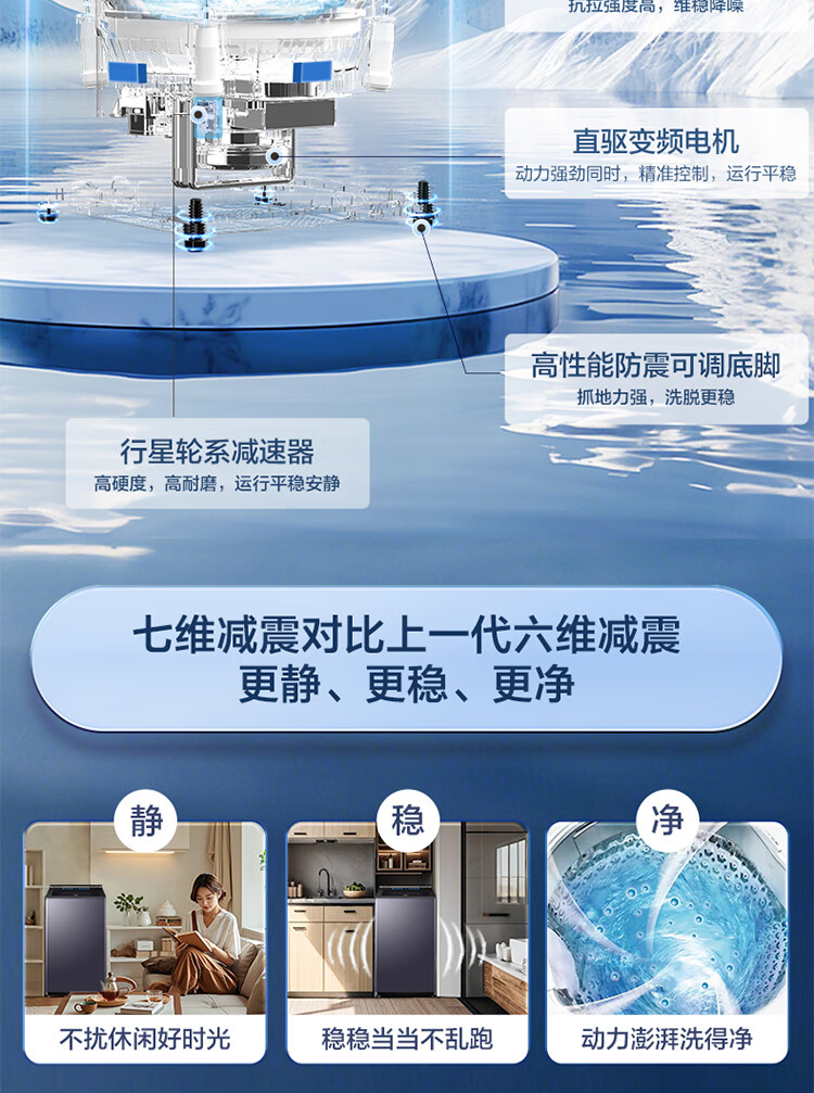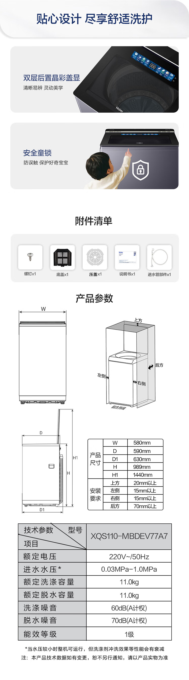 海尔11公斤全自动波轮洗衣机家用大容量直驱变频一级能效智慧球免清洗494mm大筒径 双动力+精华洗+光等离子除菌XQS110-MBDEV77A7