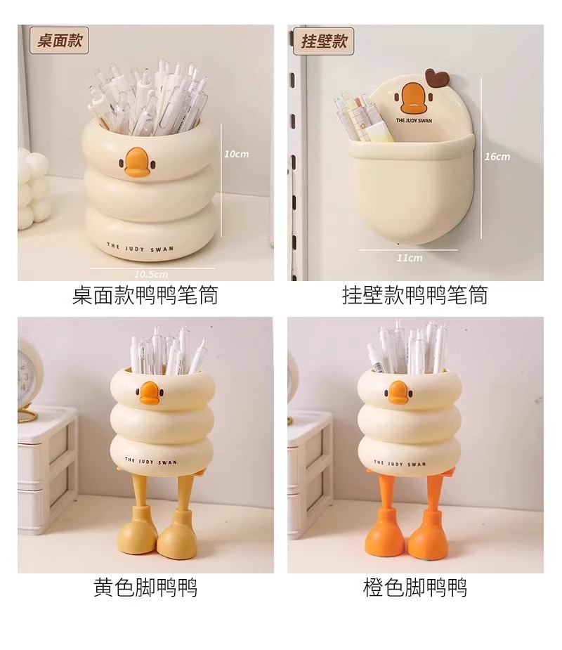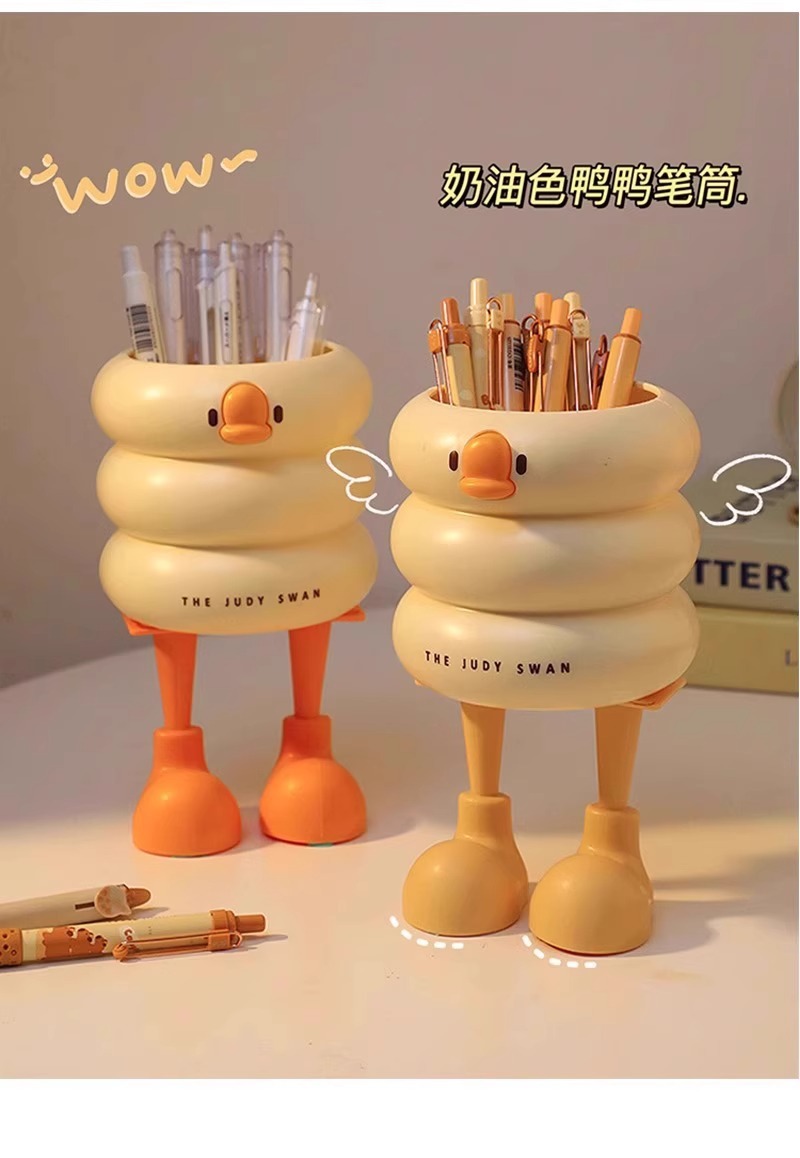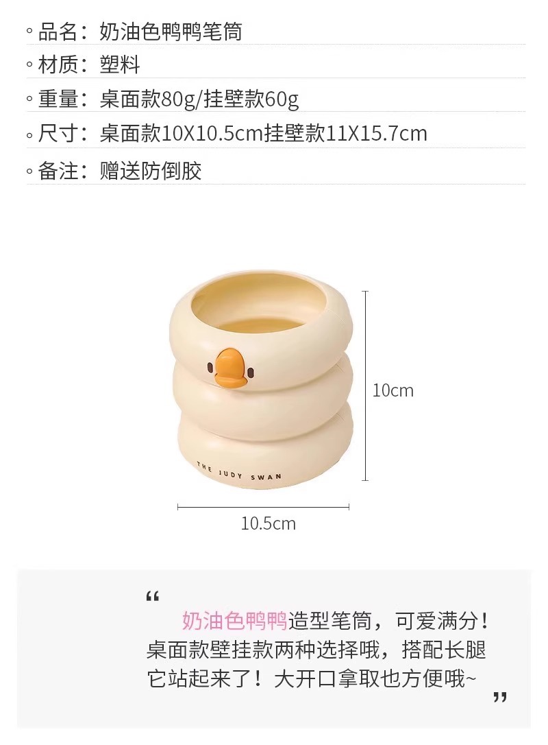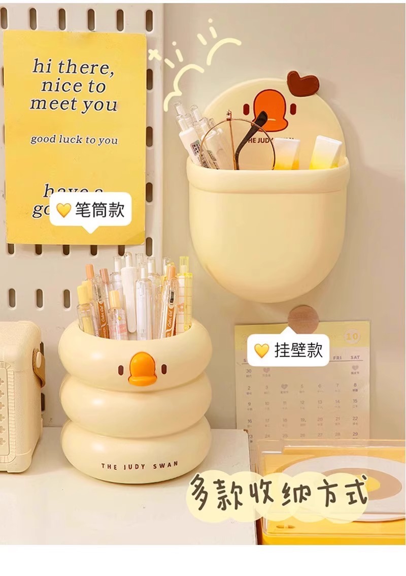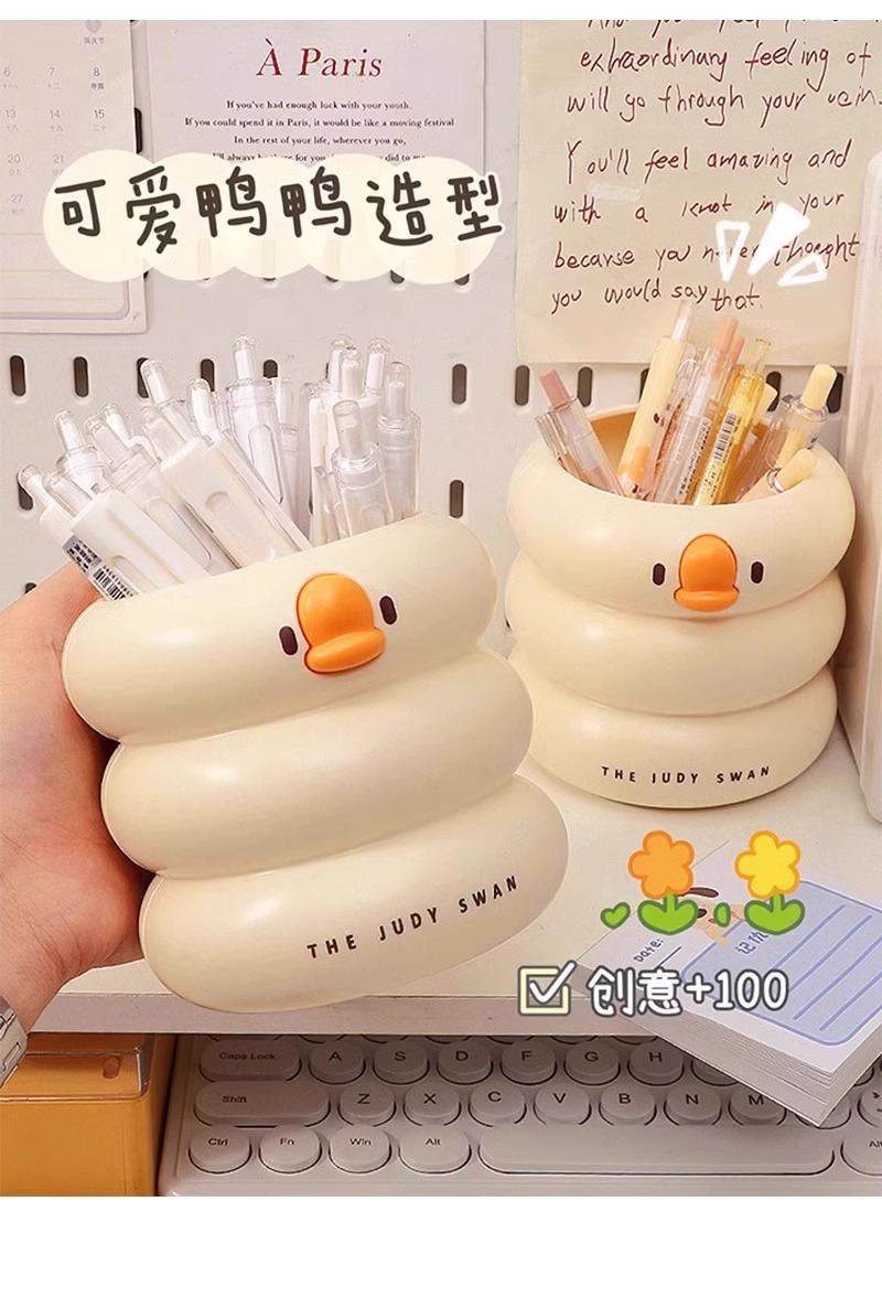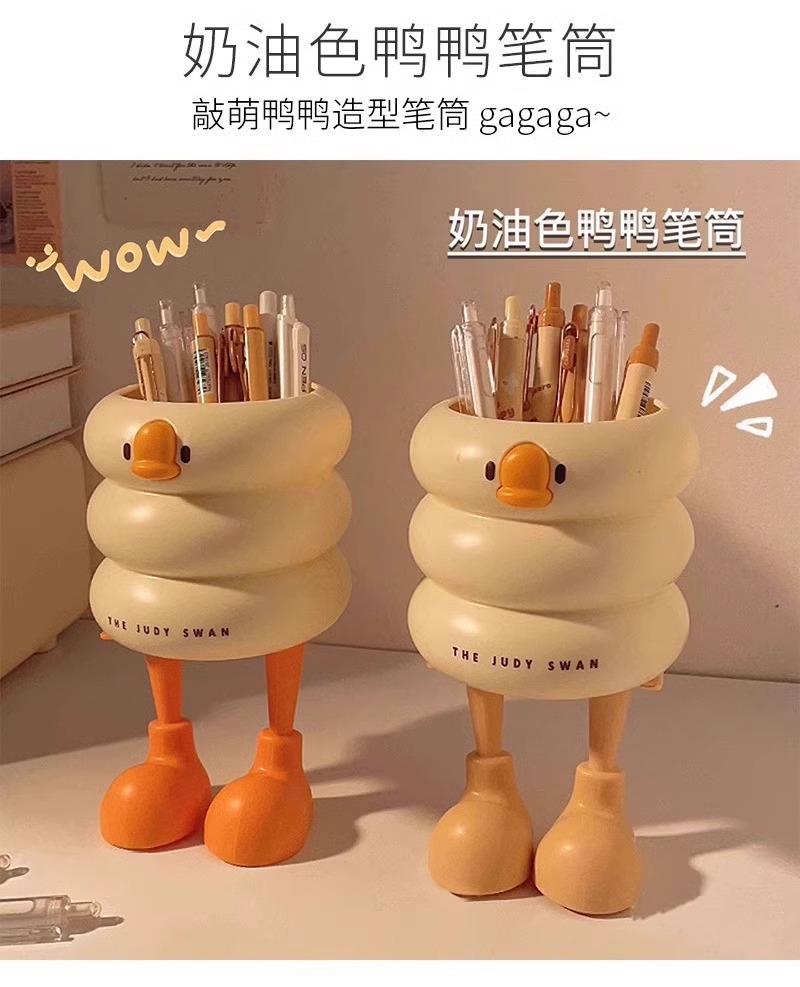 【敲萌鸭鸭造型笔筒,gagaga~】冰淇淋鸭鸭笔筒 大容量高颜值学生悬挂桌面收纳盒 办公室放笔摆件-QQ