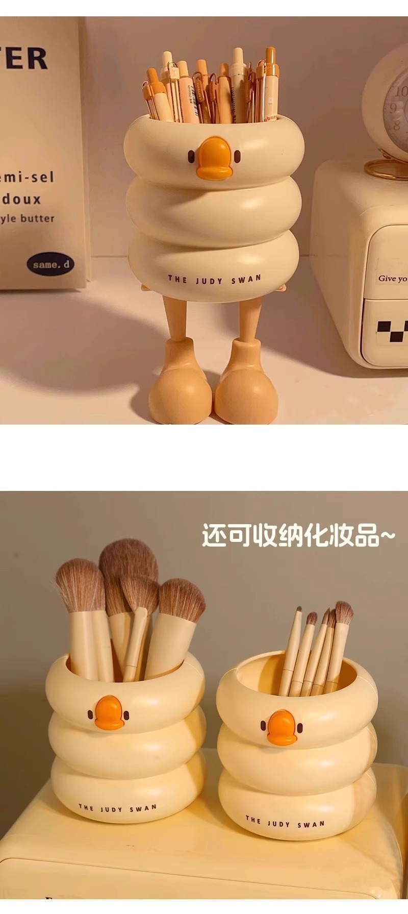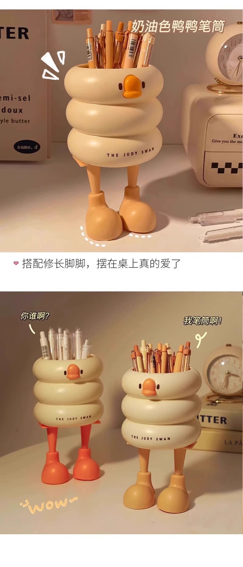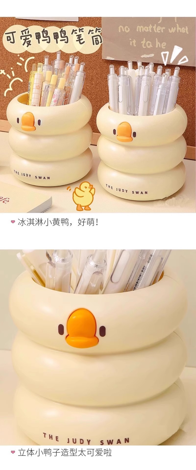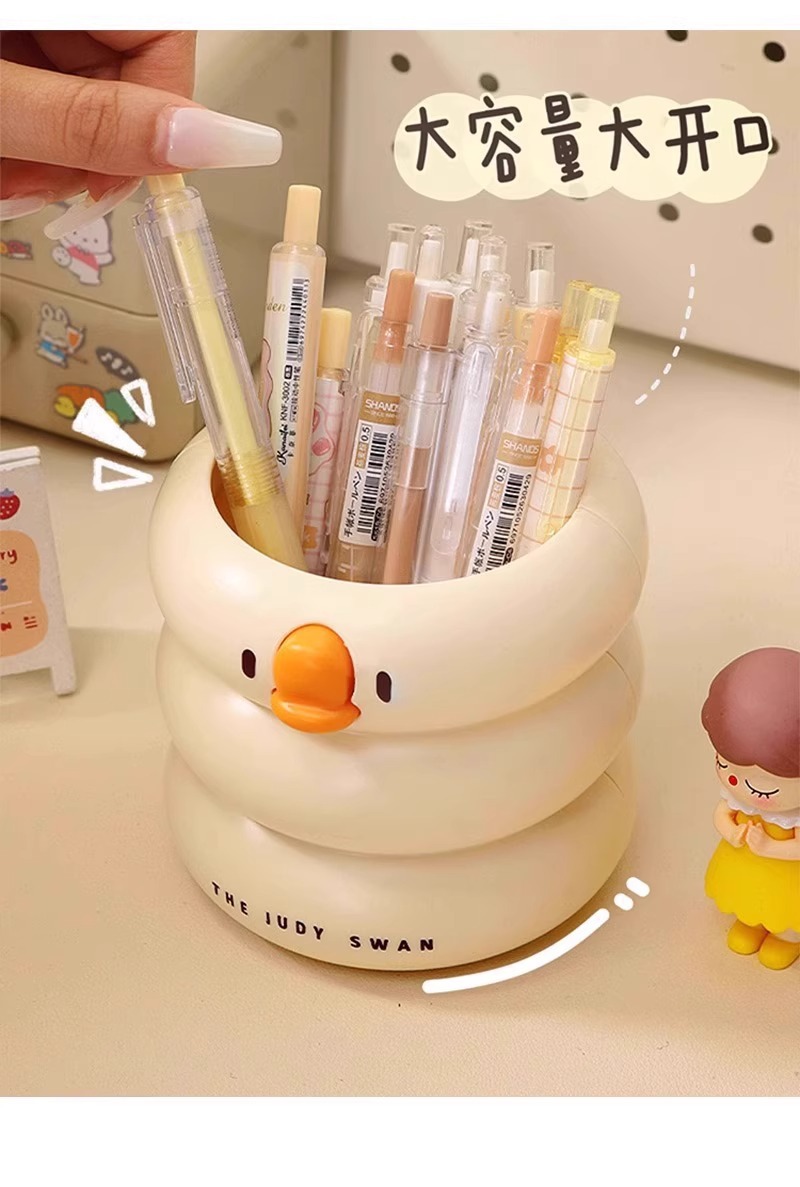 【敲萌鸭鸭造型笔筒,gagaga~】冰淇淋鸭鸭笔筒 大容量高颜值学生悬挂桌面收纳盒 办公室放笔摆件-QQ