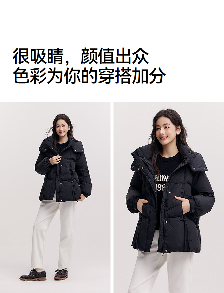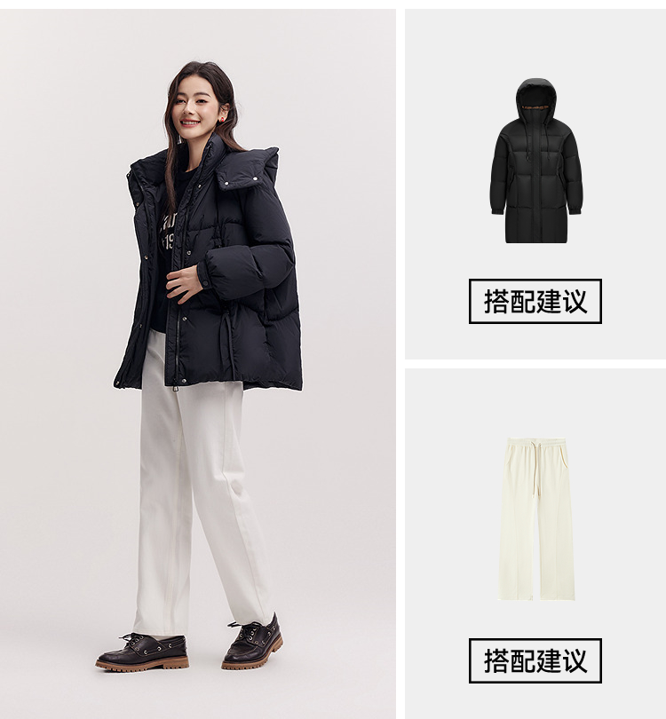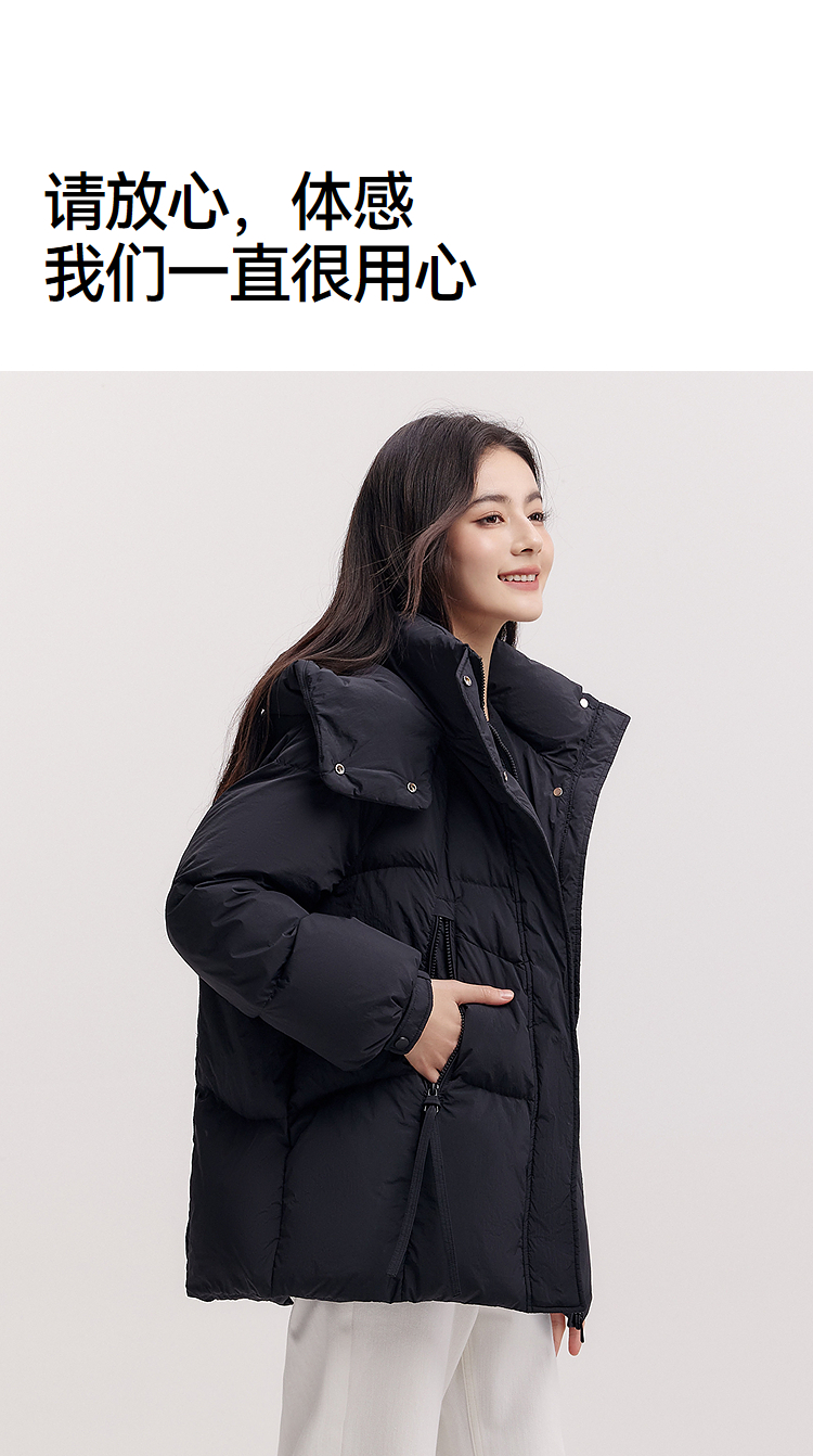 森马羽绒服女冬季中长款厚款80绒子宽松连帽质感简约百搭休闲外套