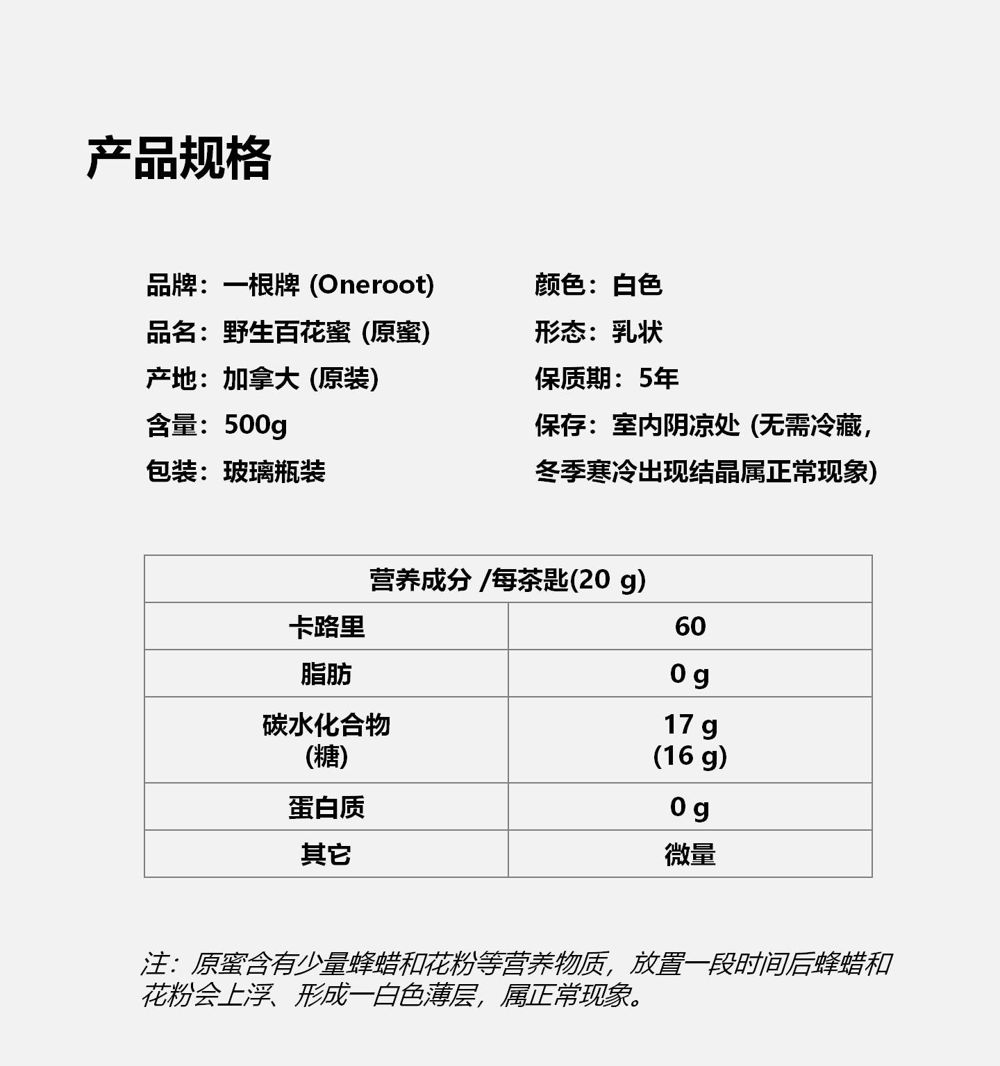 【含邮含税】加拿大Oneroot天然野生百花蜂蜜 500g/瓶