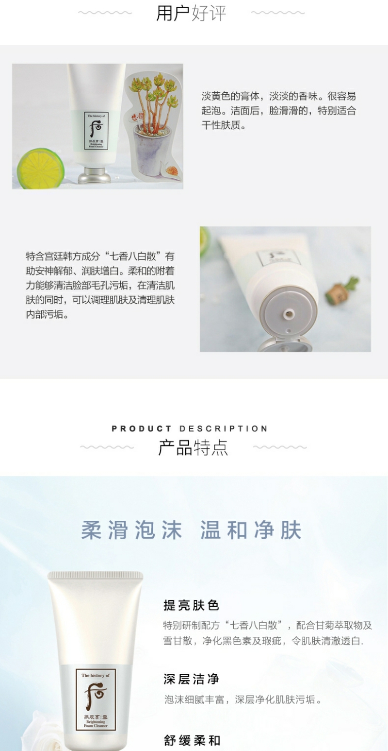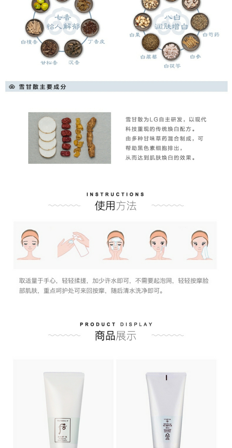 【YZ】Whoo后拱辰享雪玉凝美白洗面奶180ml保湿温和泡沫