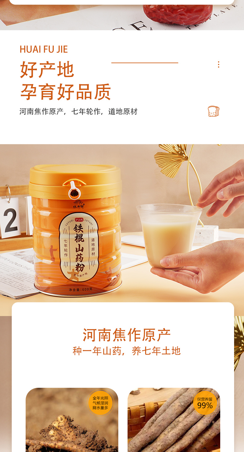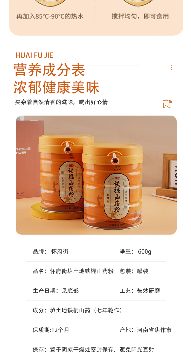 【中秋礼盒】怀府街铁棍山药粉|麸炒口感细腻 金罐装升级版 大容量 600g早餐不添加才美味