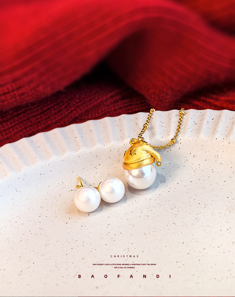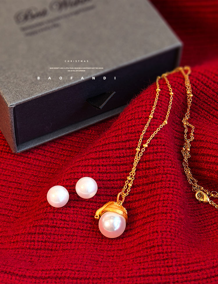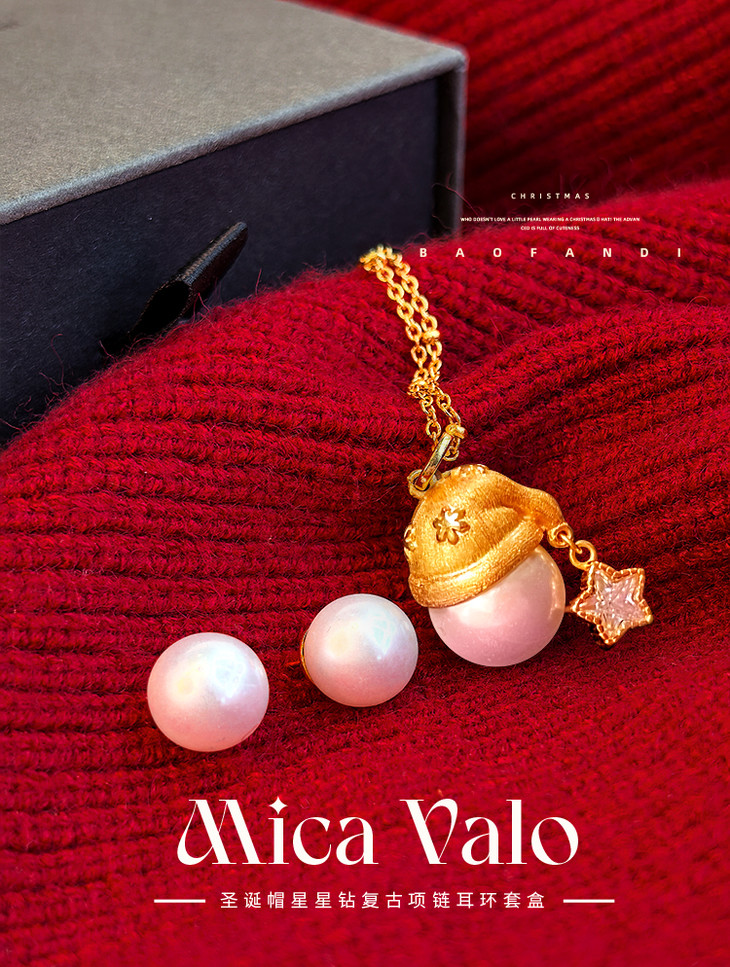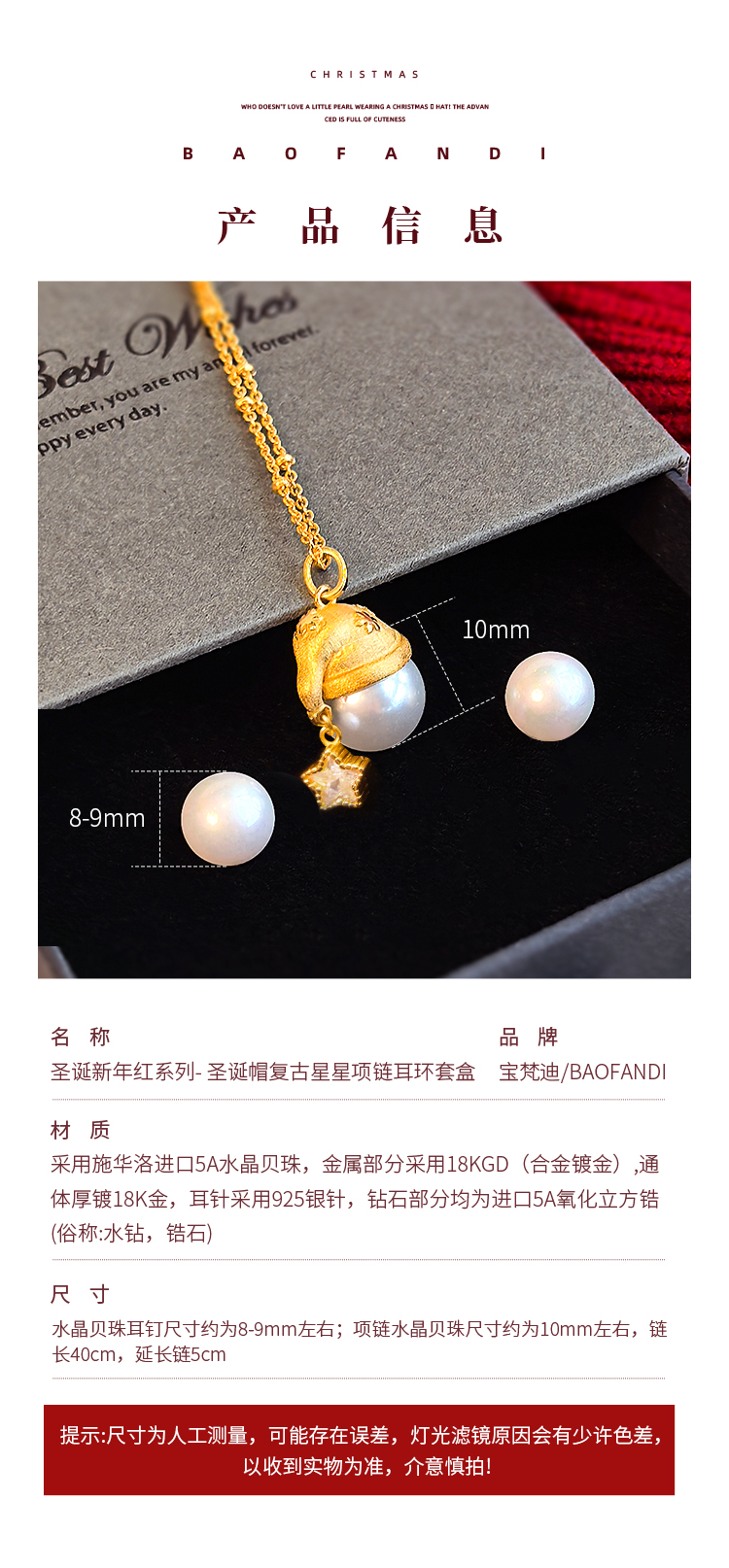 【圣诞系列】BAOFAND圣诞新年红系列 圣诞帽复古项链耳环套盒(配礼盒)