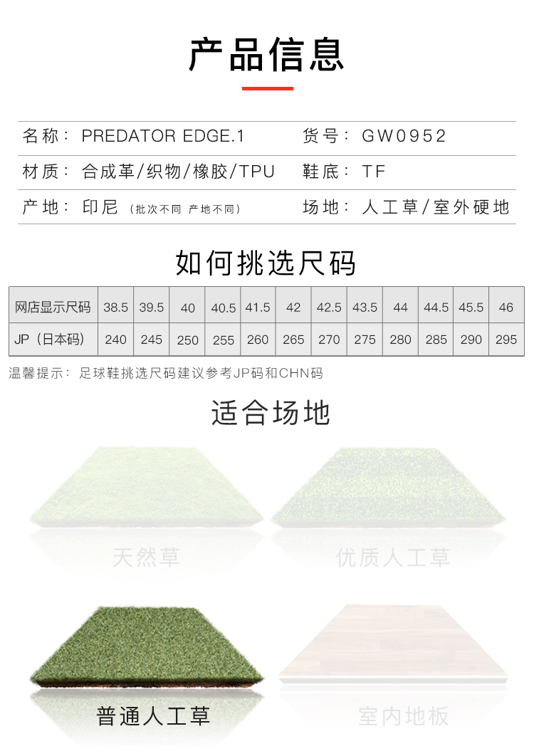 ADIDAS/阿迪达斯 PREDATOR EDGE.1 TF猎鹰高端碎钉足球鞋GW0952