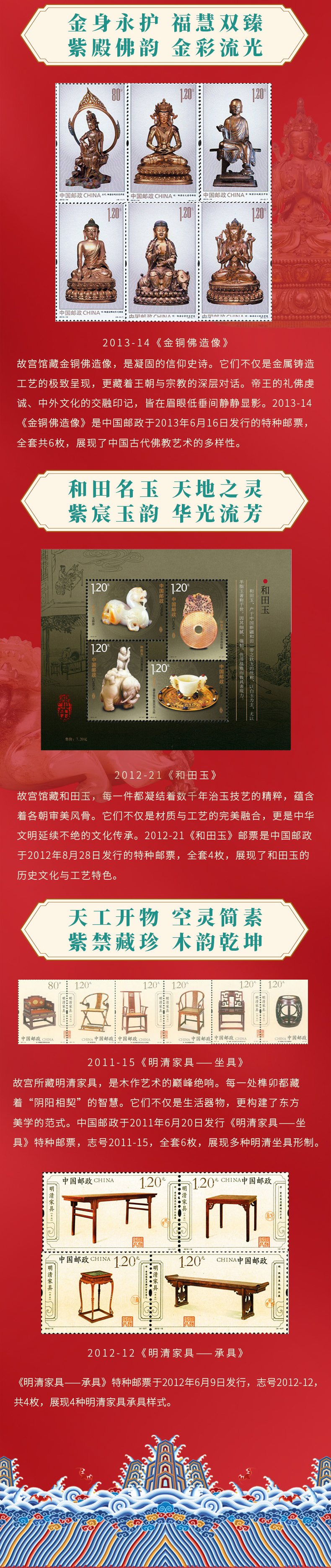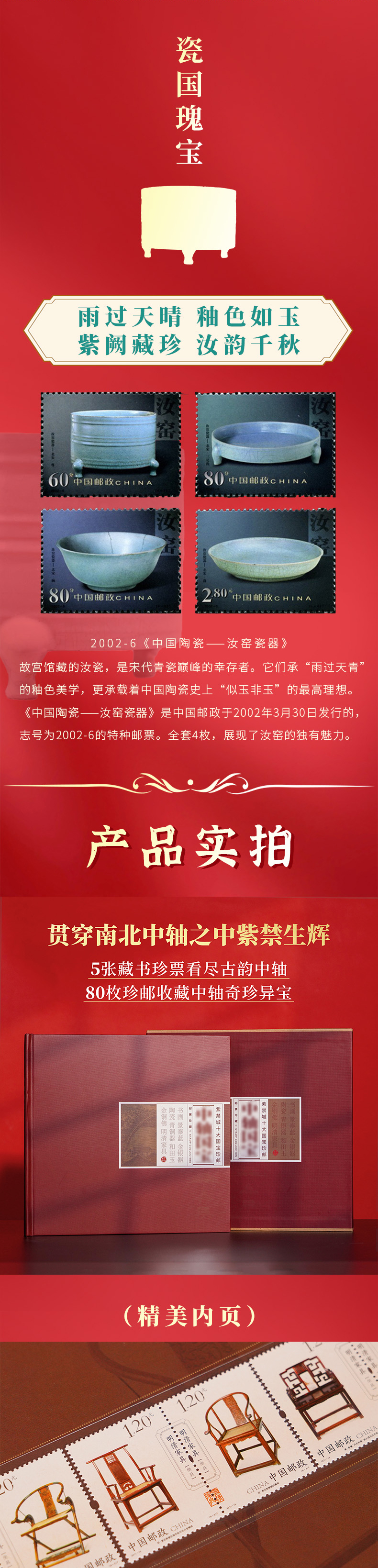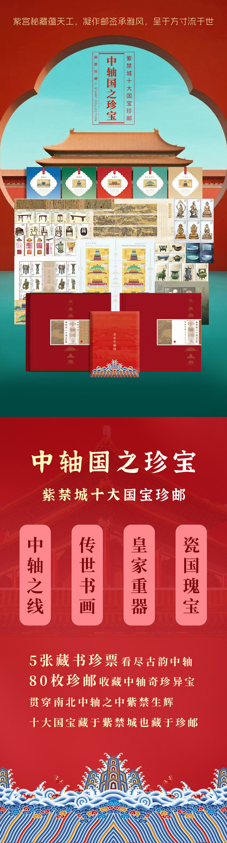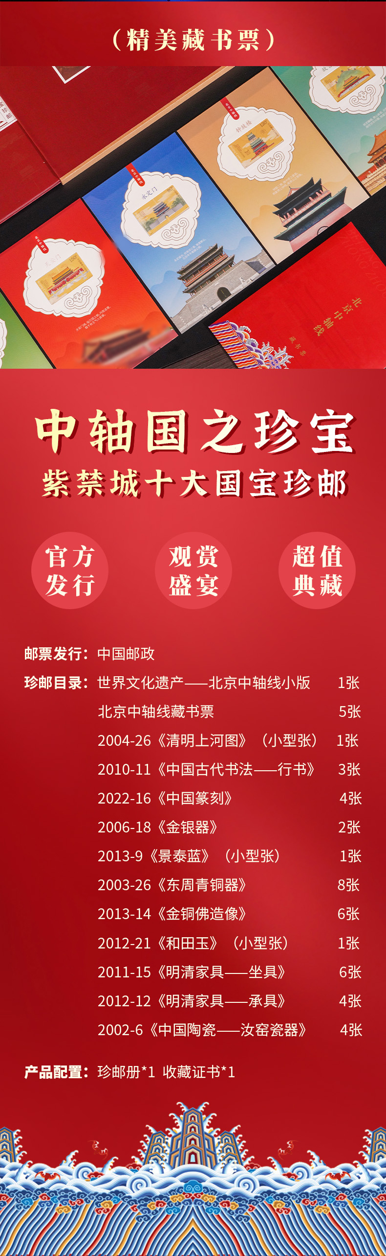 《中轴国宝》紫禁城十大国宝珍邮册 5枚藏书票+80枚珍邮