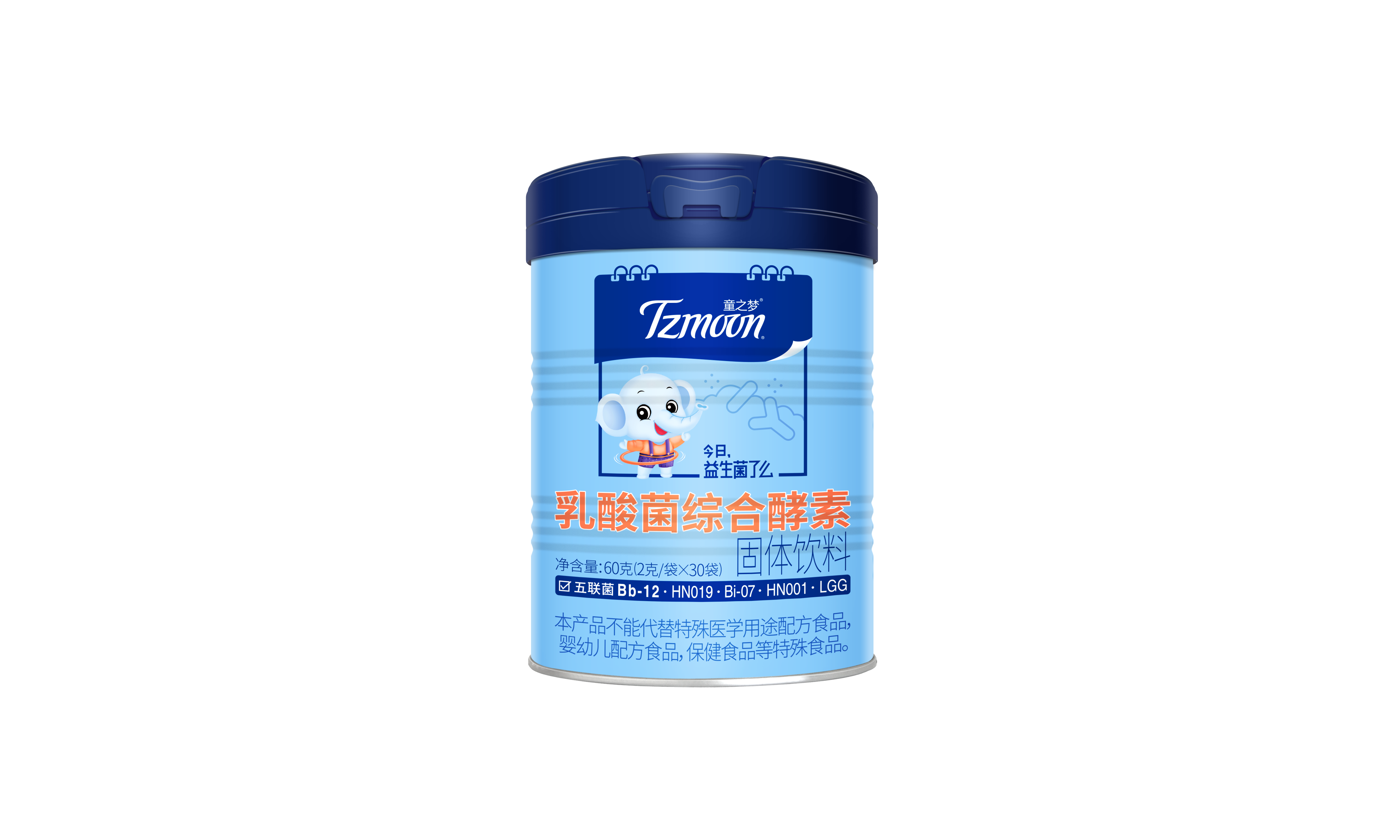 童之梦乳酸菌综合酵素 含有HN019 、HN001、 Bb-12、 Bi-07、 LGG 五种益生菌;有强健肠道,助消化、保护修复胃肠道、祛黄疸、提高免疫力,改善过敏体质等作用。每天1小袋。