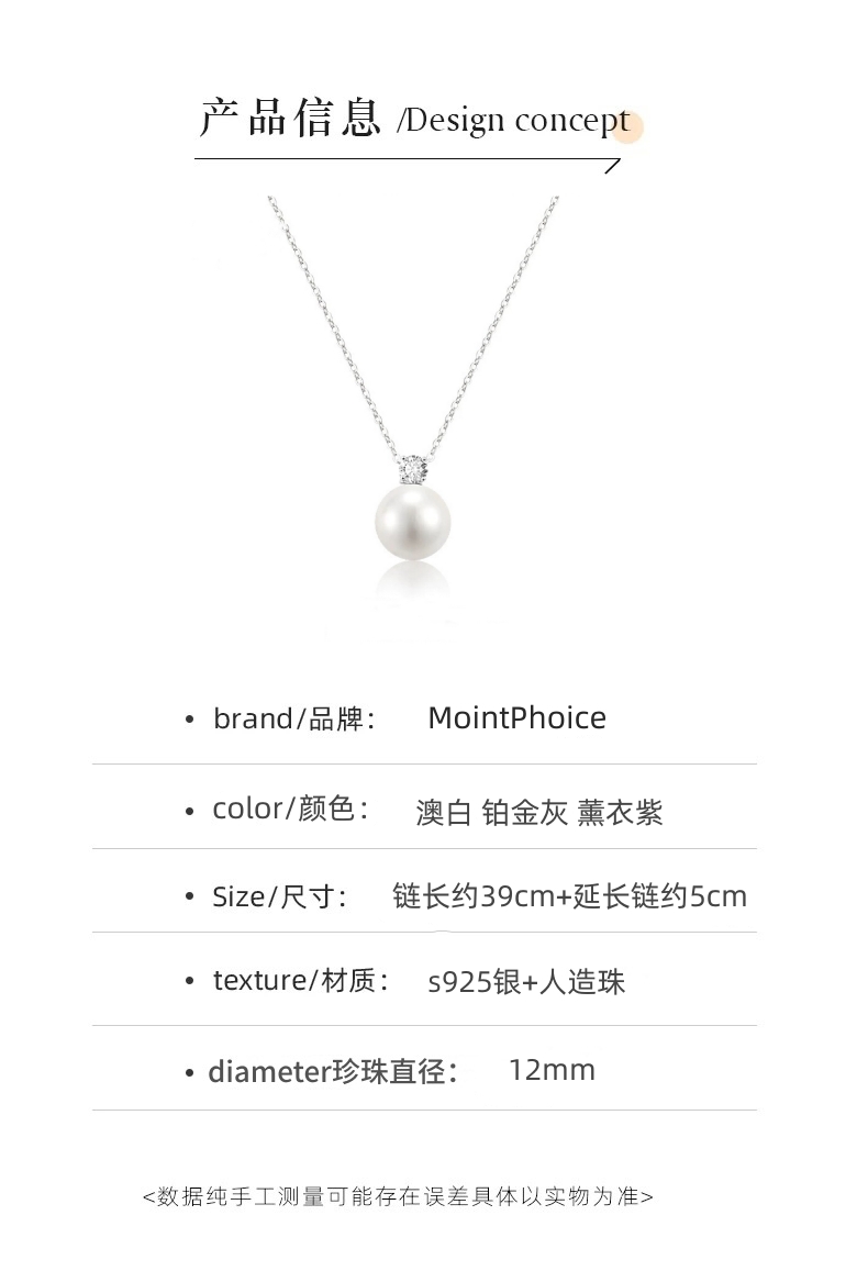 世纪经典 |MointPhoice 戴妃珍珠项链 s925银 12mm 铂金灰 薰衣紫
