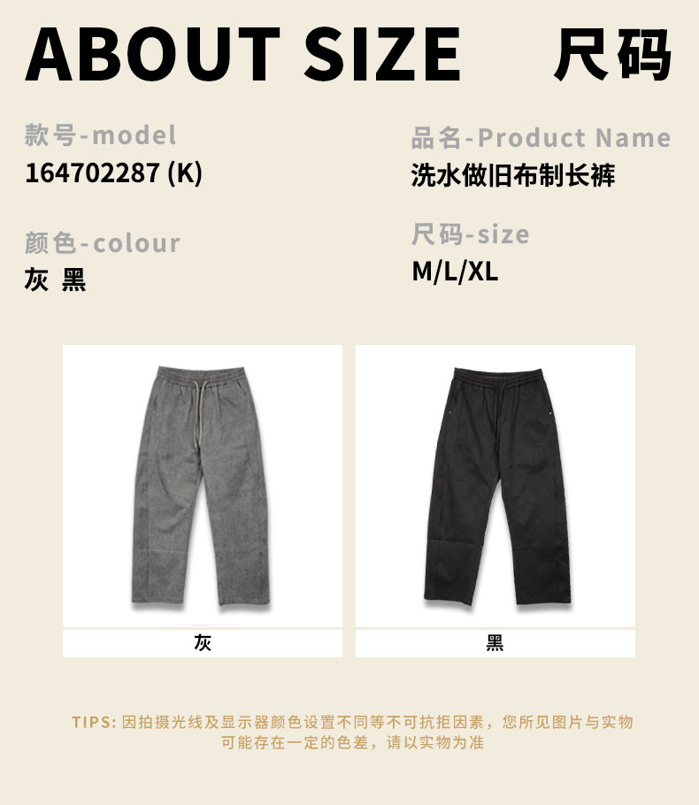 洗水做旧布制长裤纪念日百货门店同款164702287