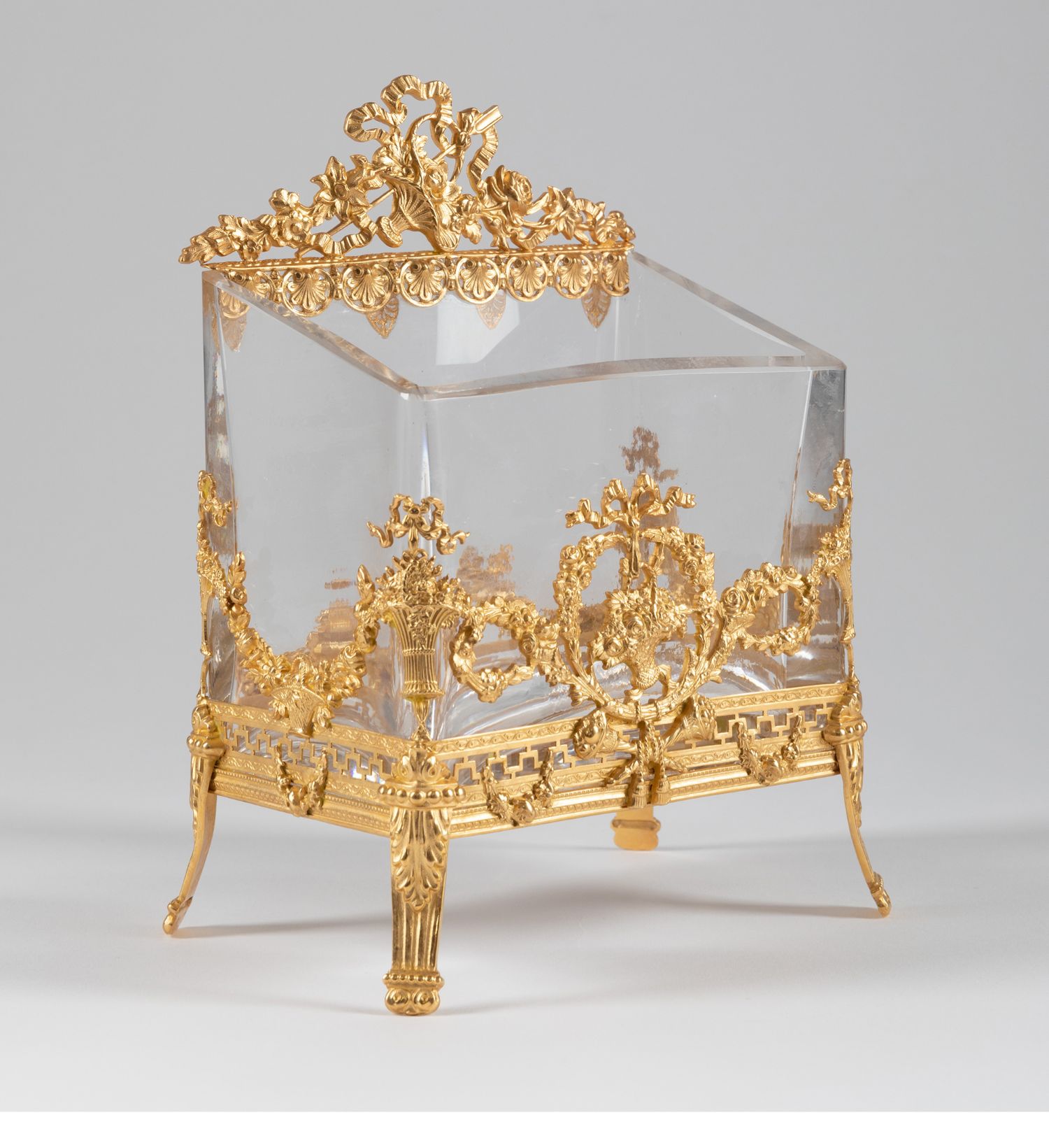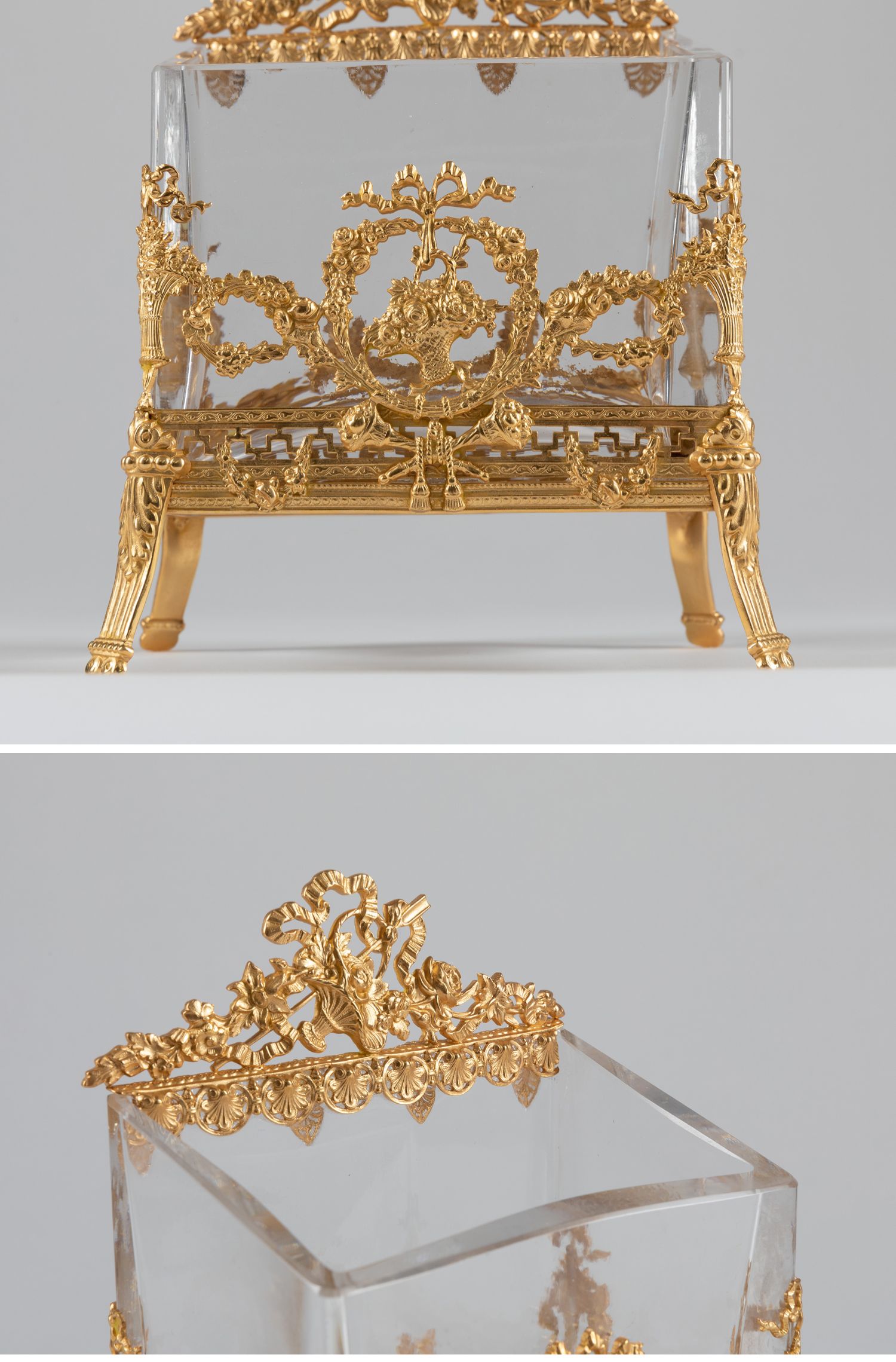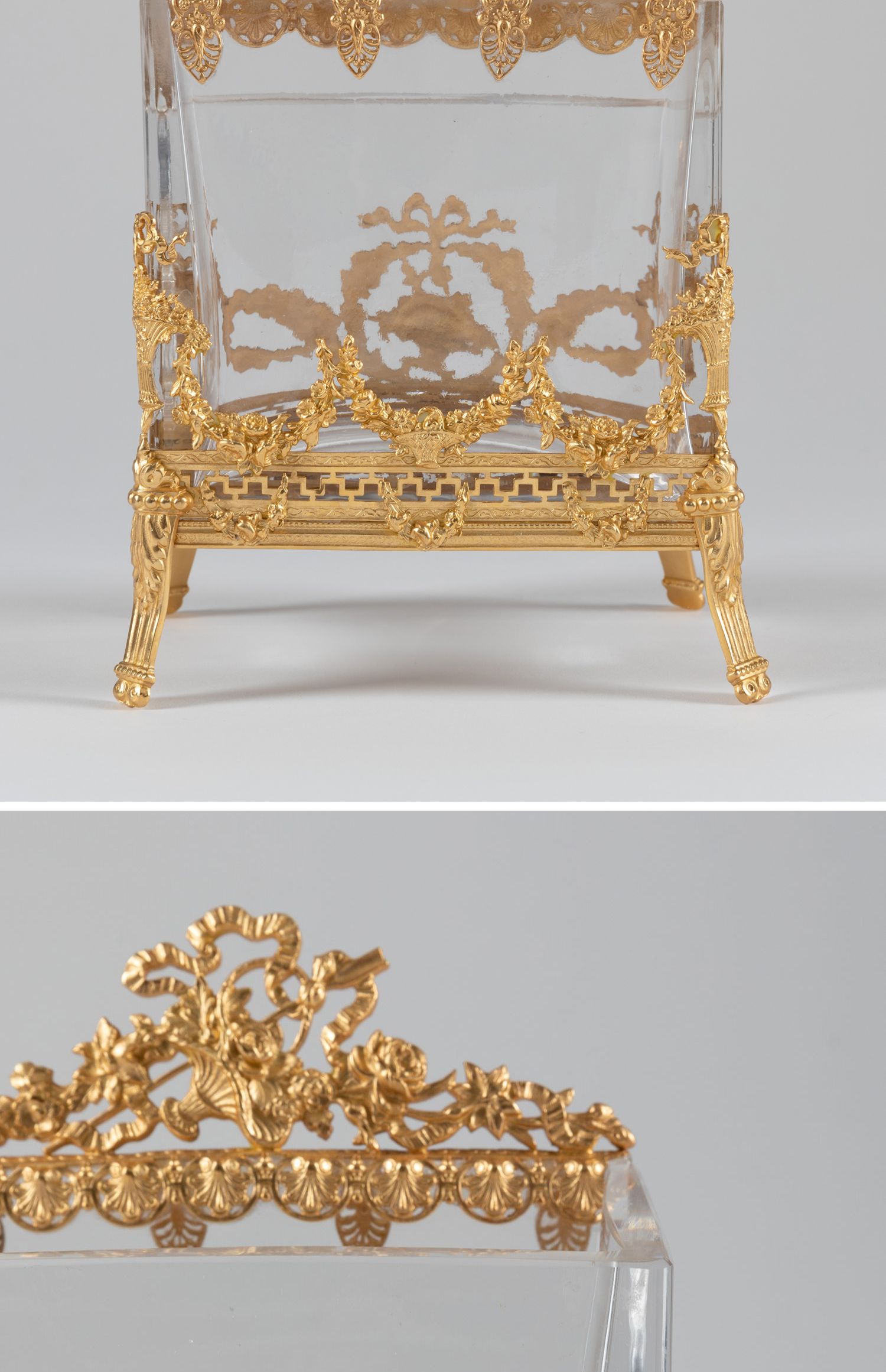 独角鹿西洋古董法国路易十六风月桂花叶主题铜鎏金精雕水晶信笺架