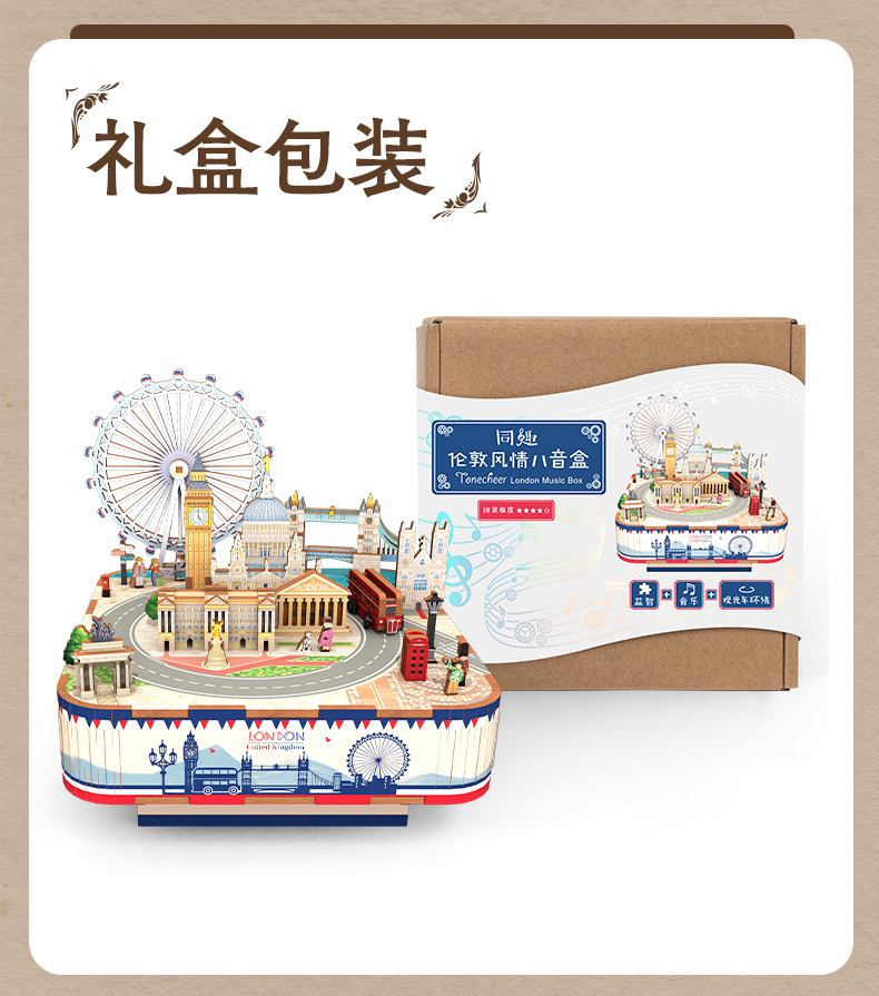 同趣 伦敦风情拼装八音盒 纪念品 生日礼物