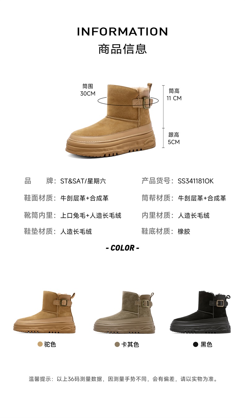 星期六毛绒保暖厚底雪地靴SS341181OK