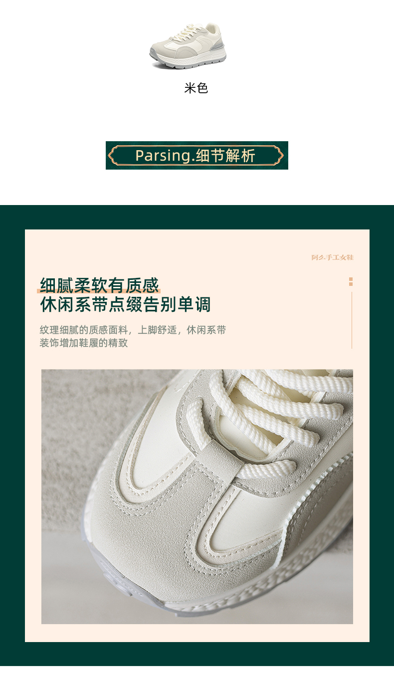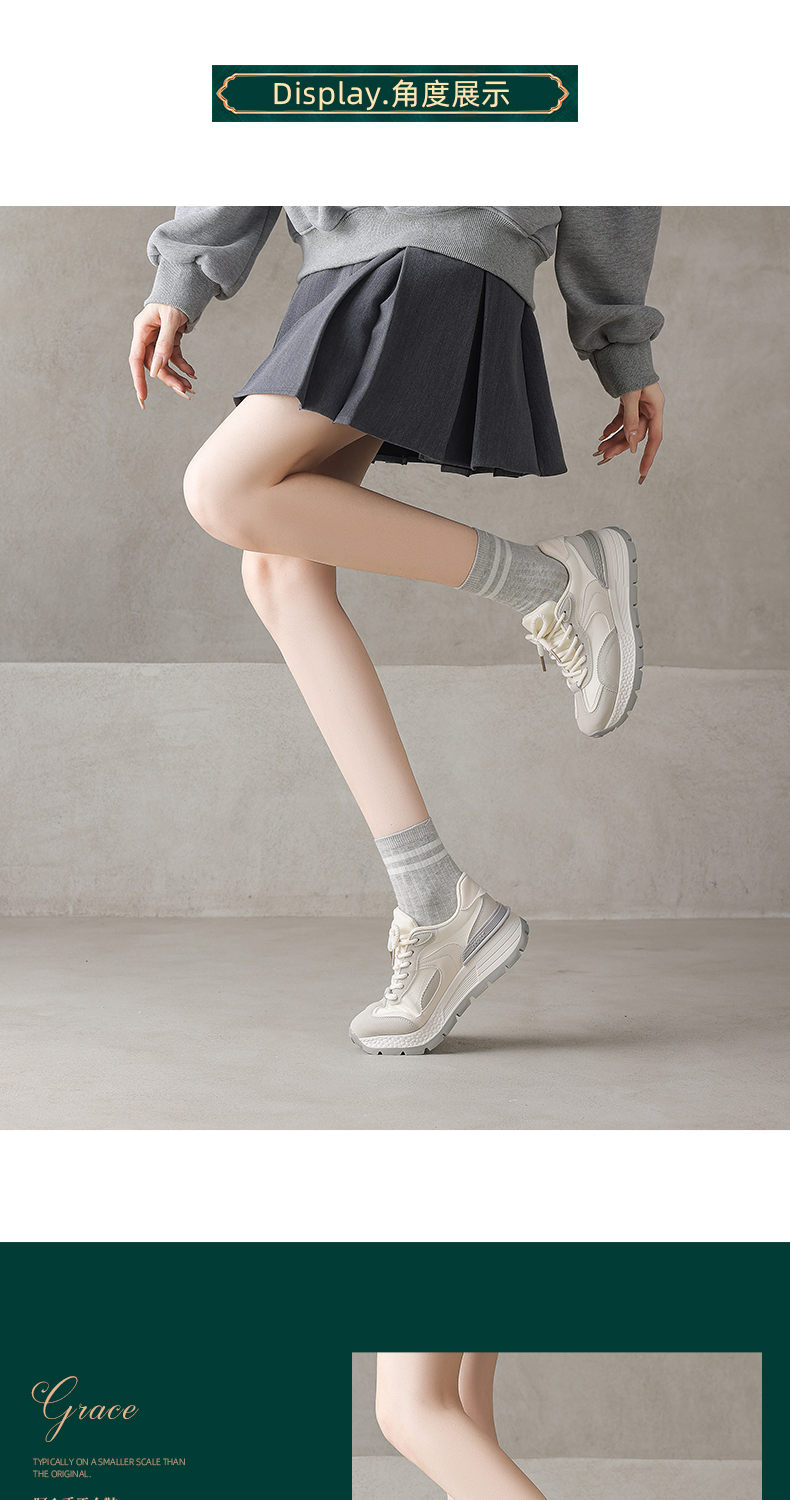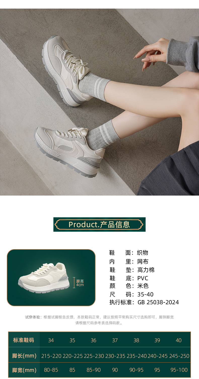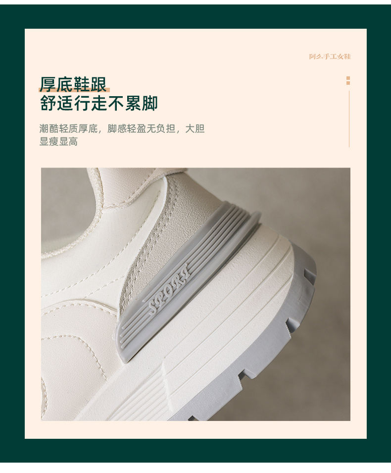 阿么手工女鞋秋季厚底透气老爹鞋女款增高显瘦流行系带休闲鞋4CM