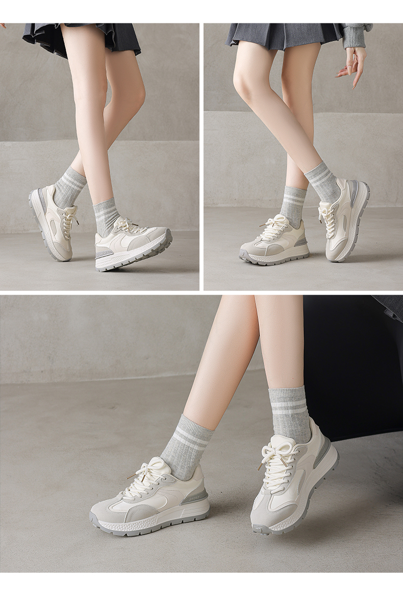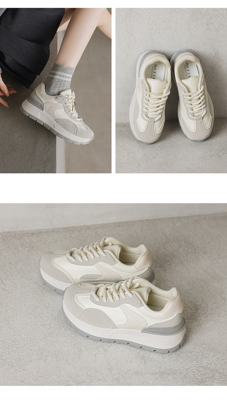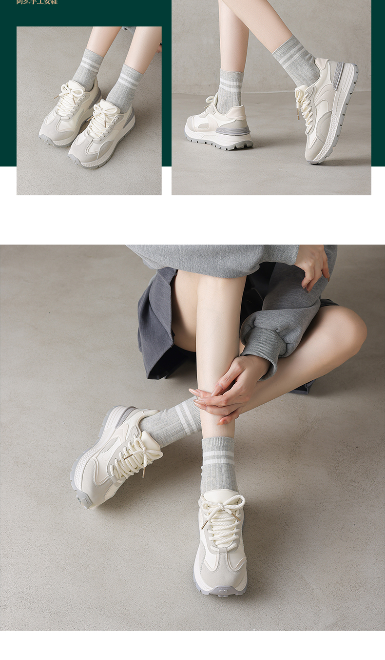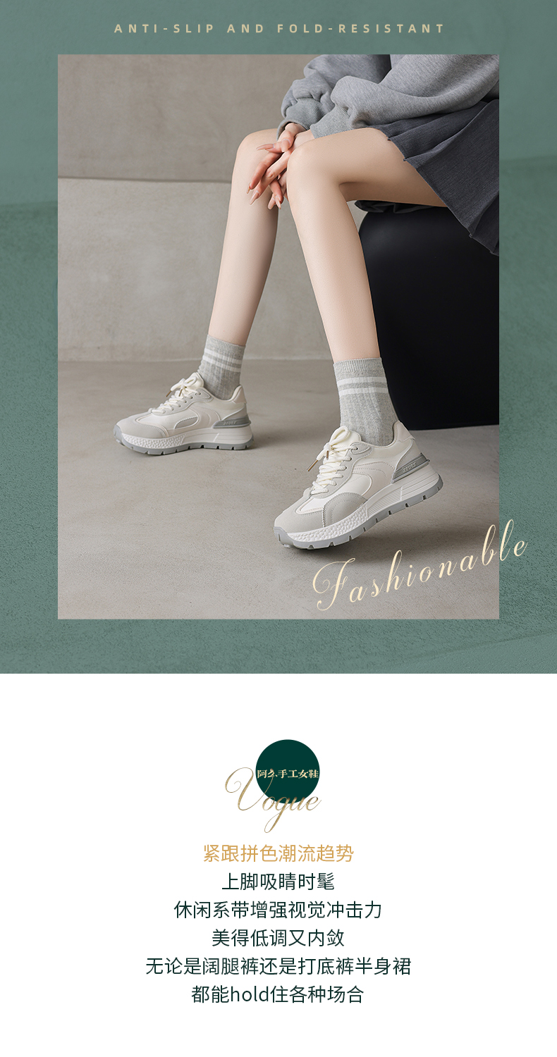 阿么手工女鞋秋季厚底透气老爹鞋女款增高显瘦流行系带休闲鞋4CM