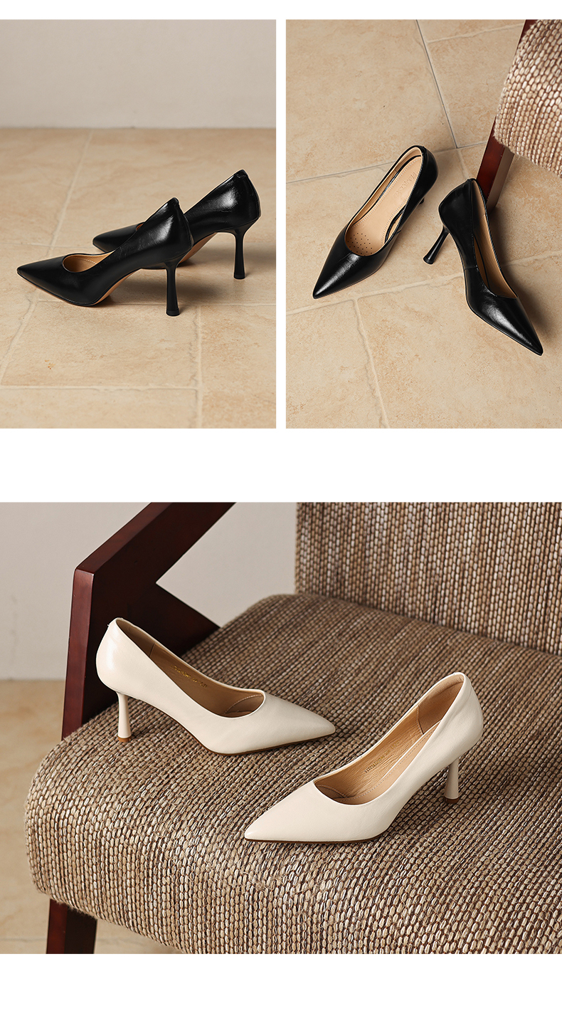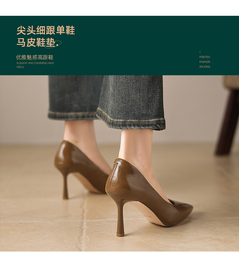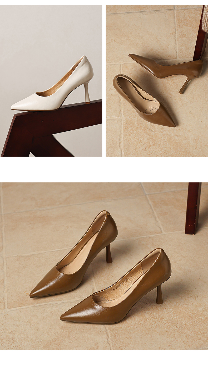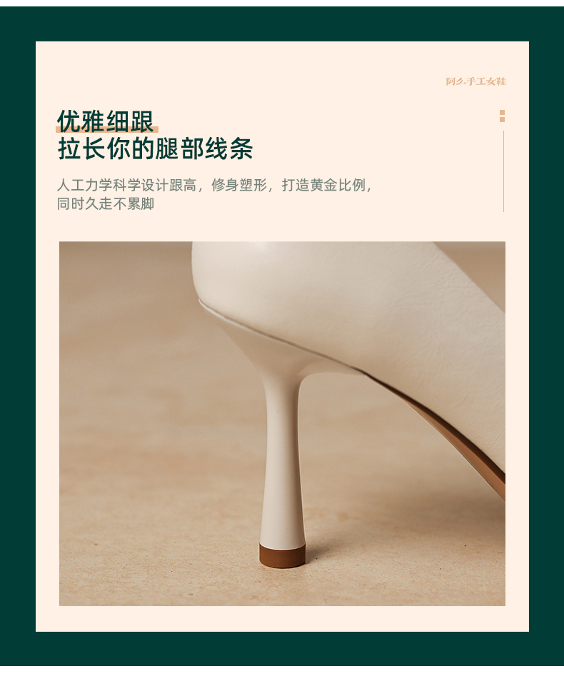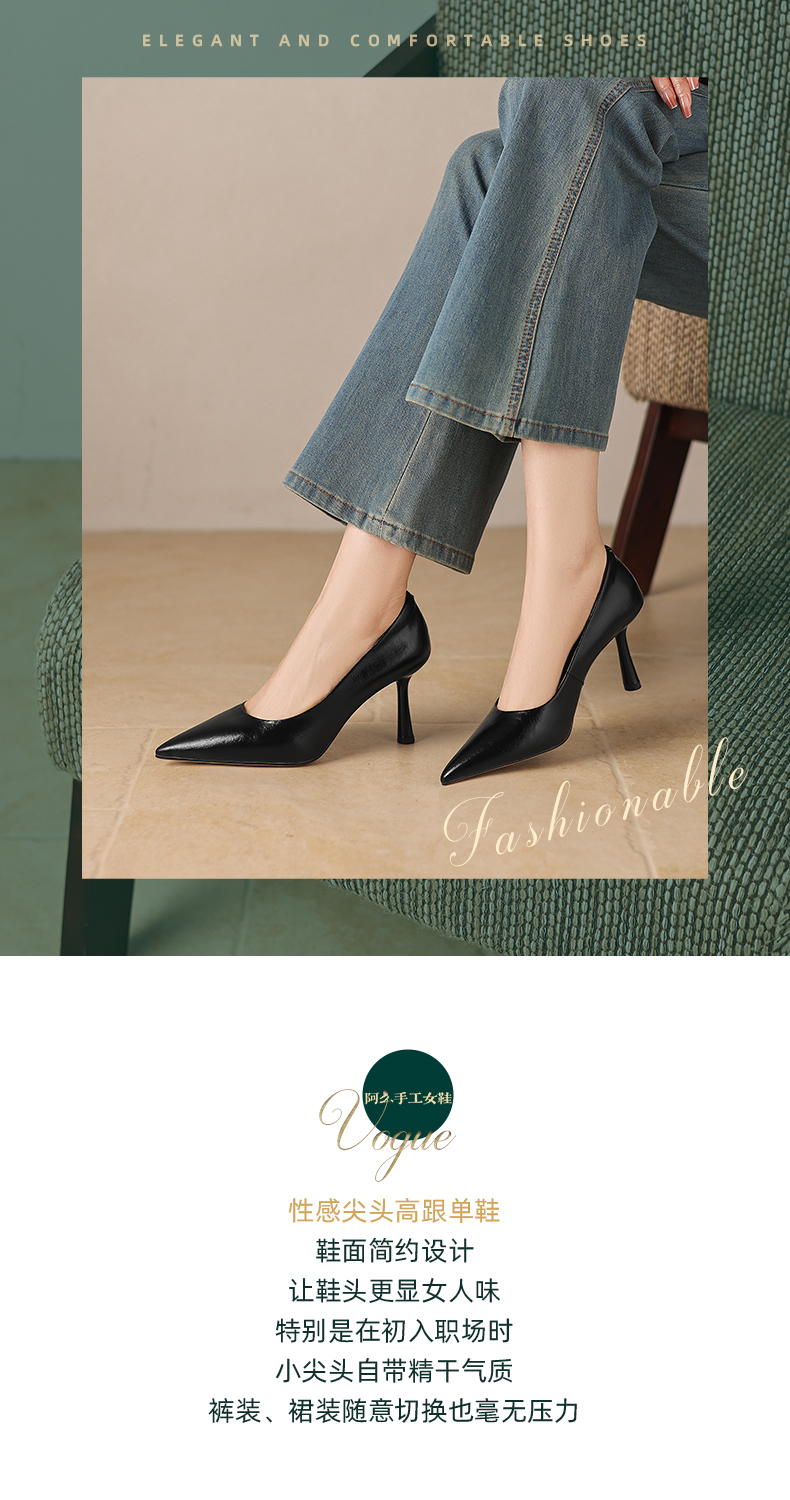 【马皮垫】阿么手工女鞋极简风细跟高跟鞋2026新款真皮浅口单鞋8CM