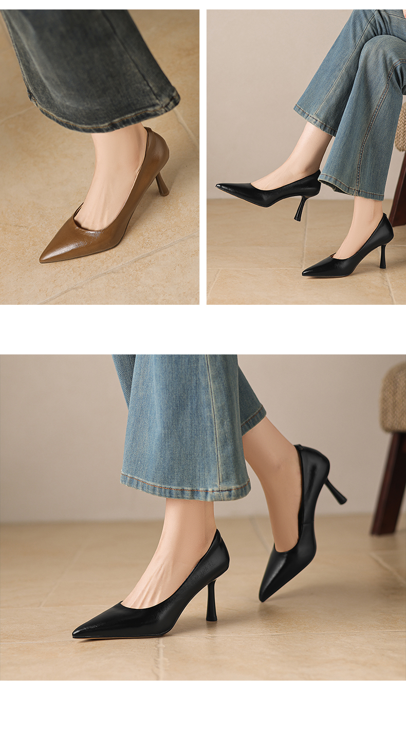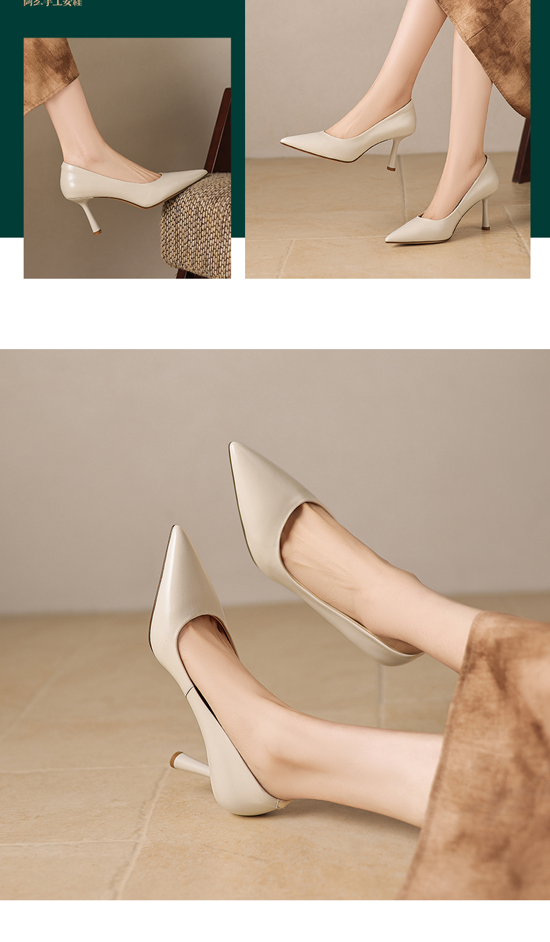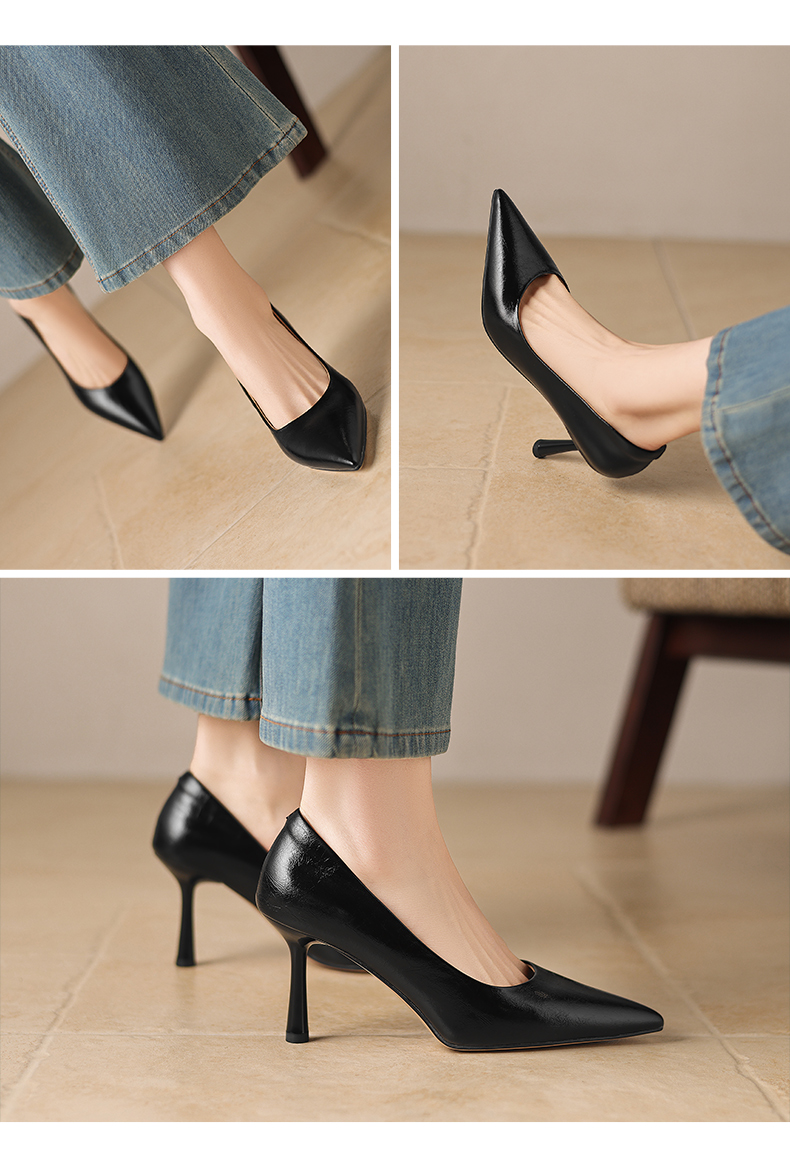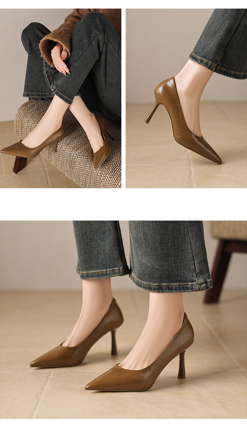 【马皮垫】阿么手工女鞋极简风细跟高跟鞋2026新款真皮浅口单鞋8CM