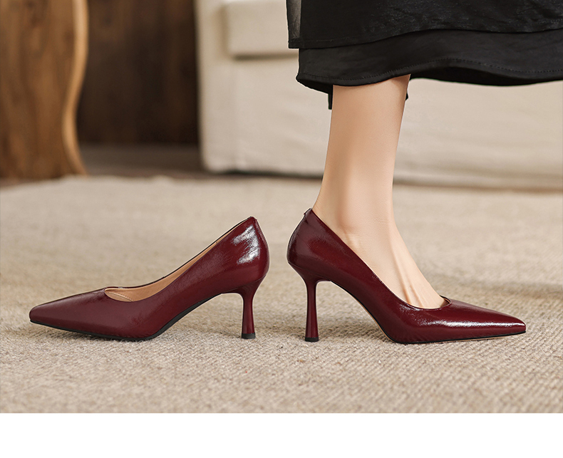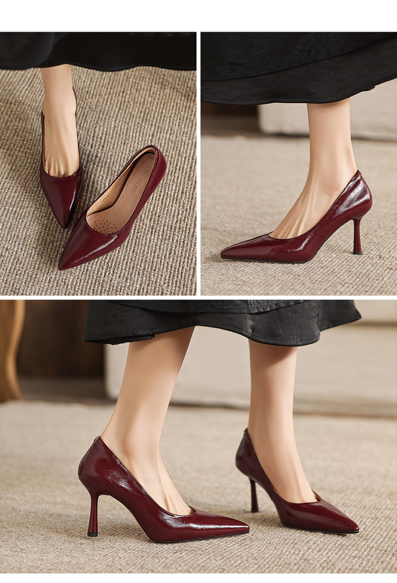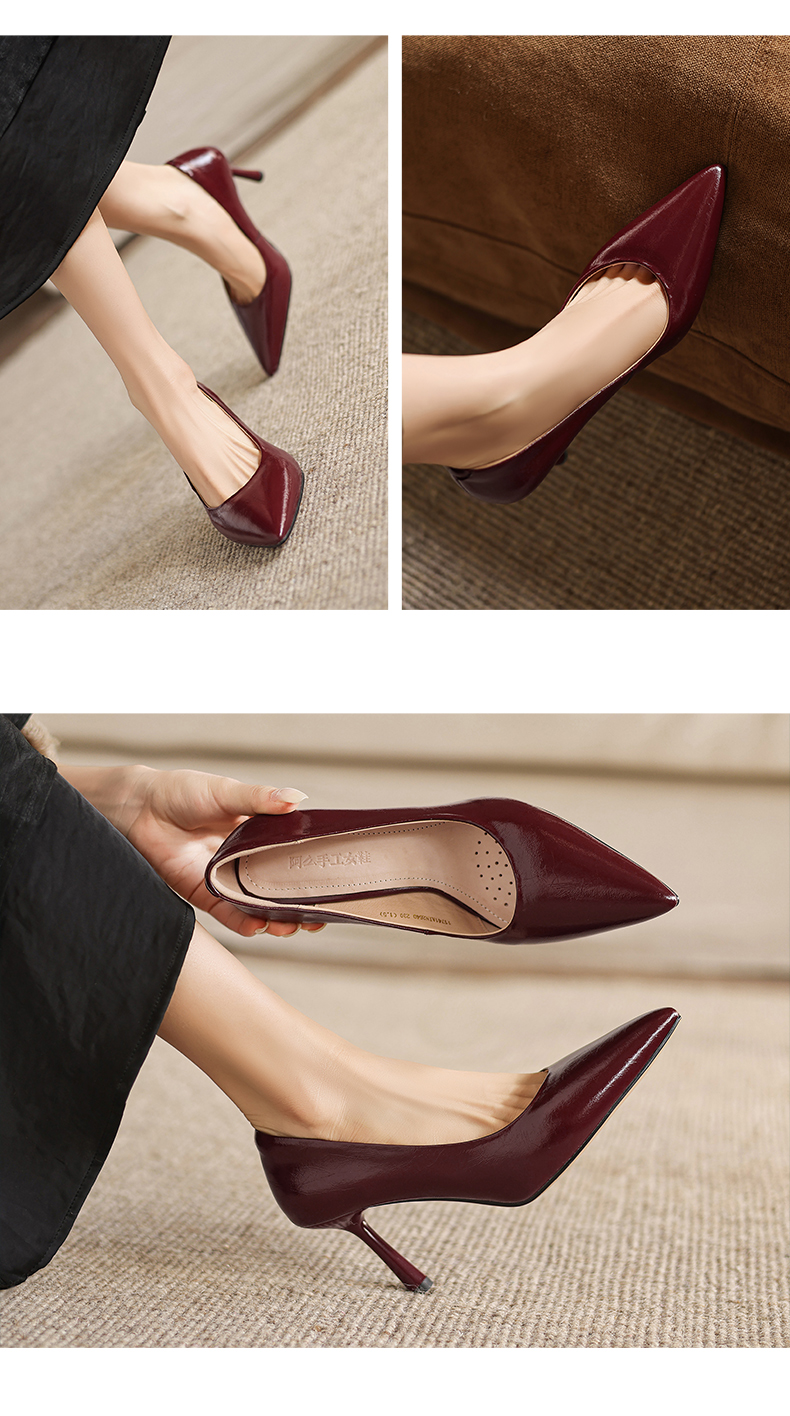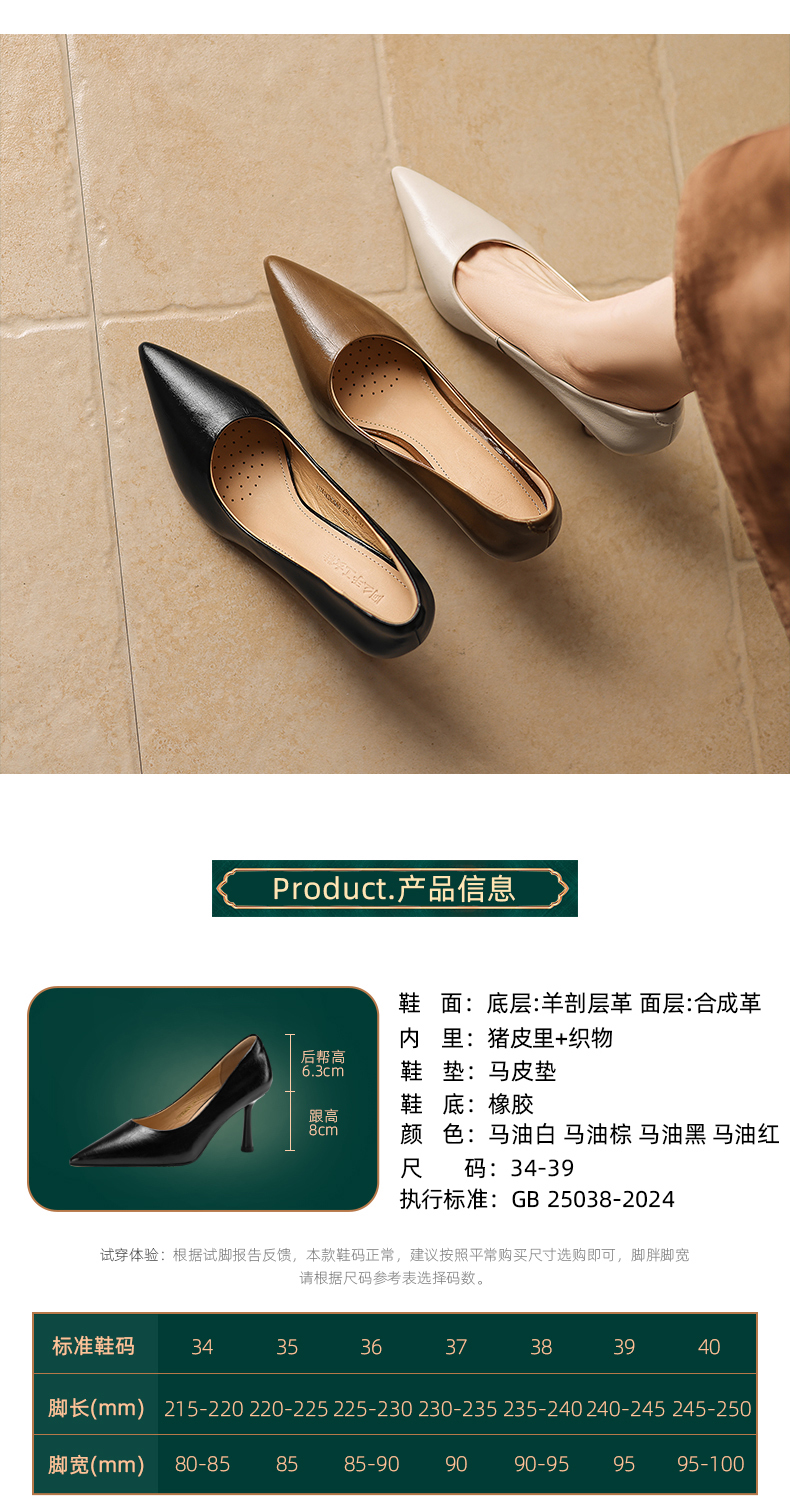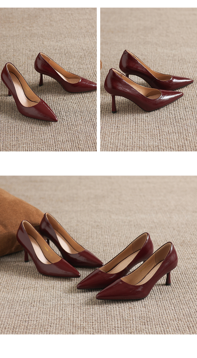【马皮垫】阿么手工女鞋极简风细跟高跟鞋2026新款真皮浅口单鞋8CM