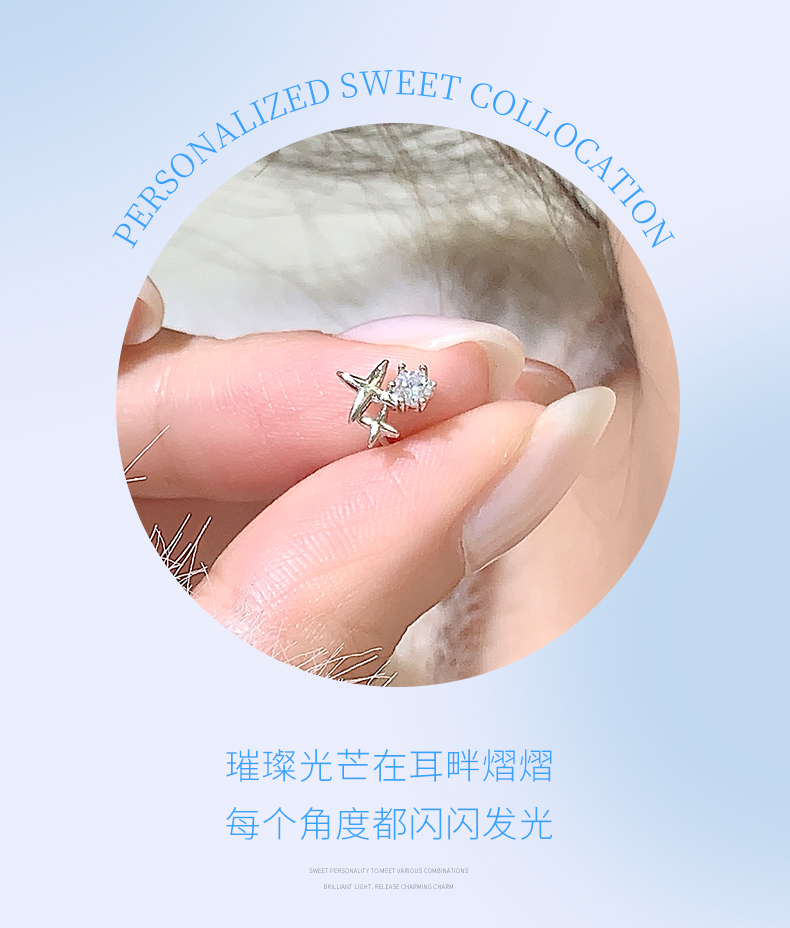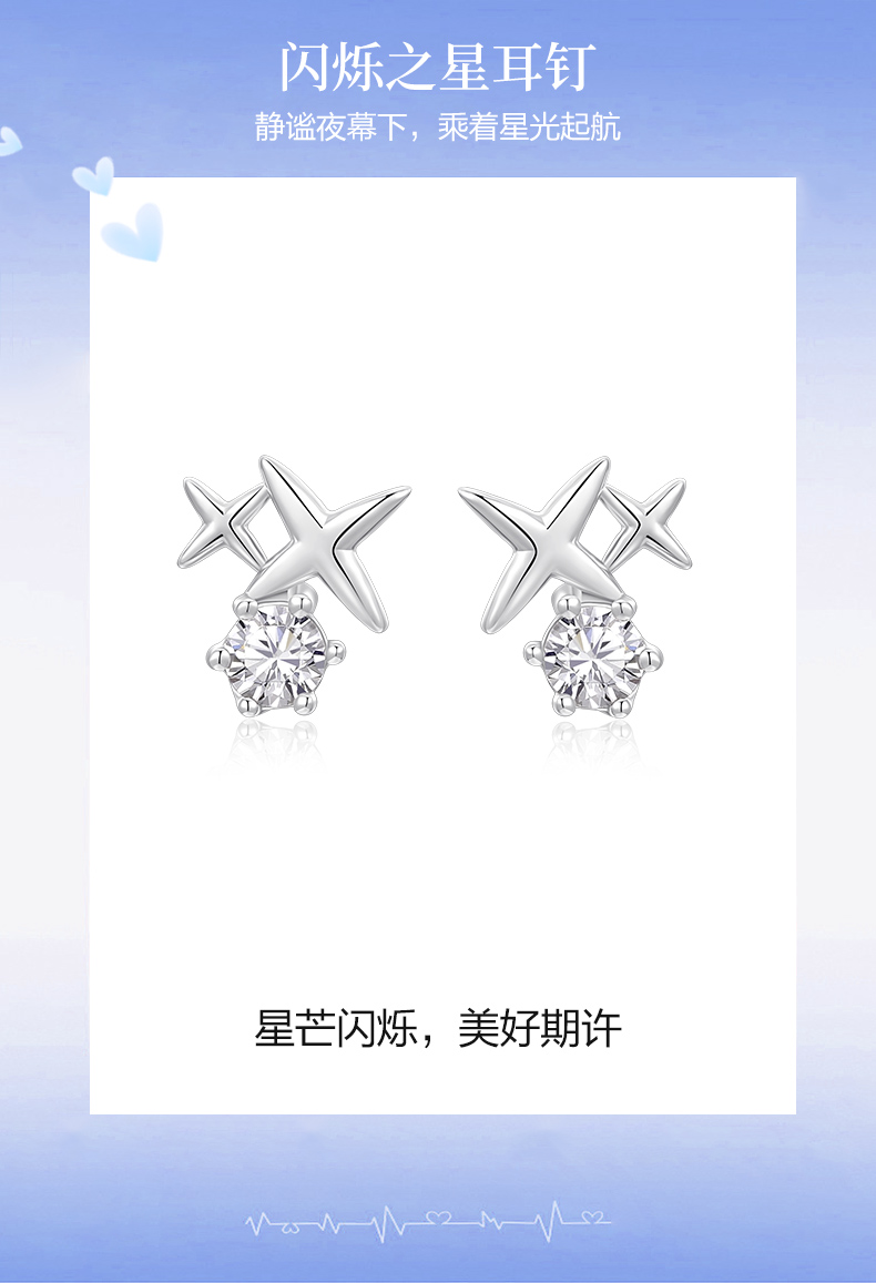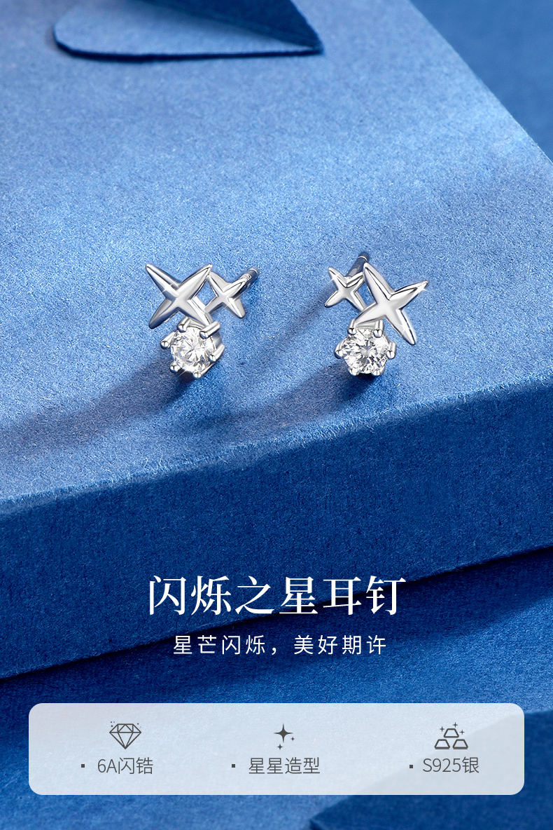 卡蒂罗/KADER 闪烁之星耳钉 闪耀星点璀璨四芒星轻奢小众简约百搭纯银耳饰 精致小巧灵动吸睛睡觉免摘配饰