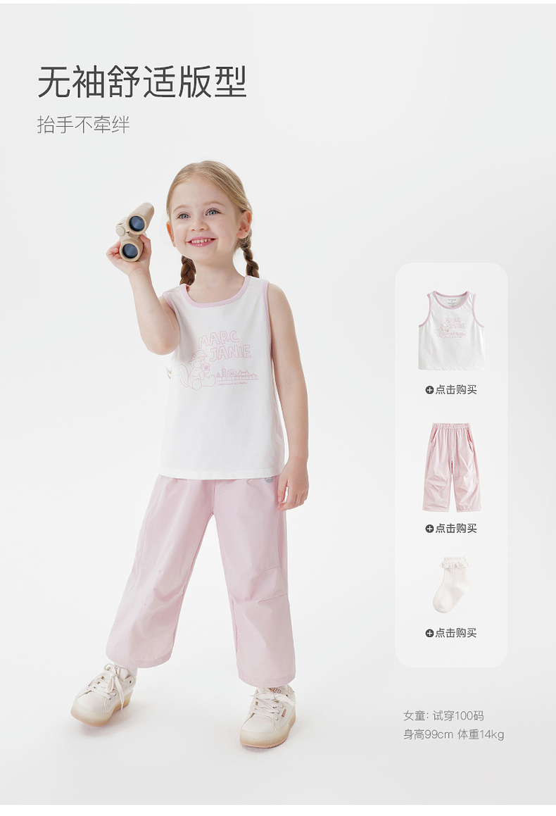 【凉感】马克珍妮男女童露营松鼠小背心 宝宝上衣夏装新款550578