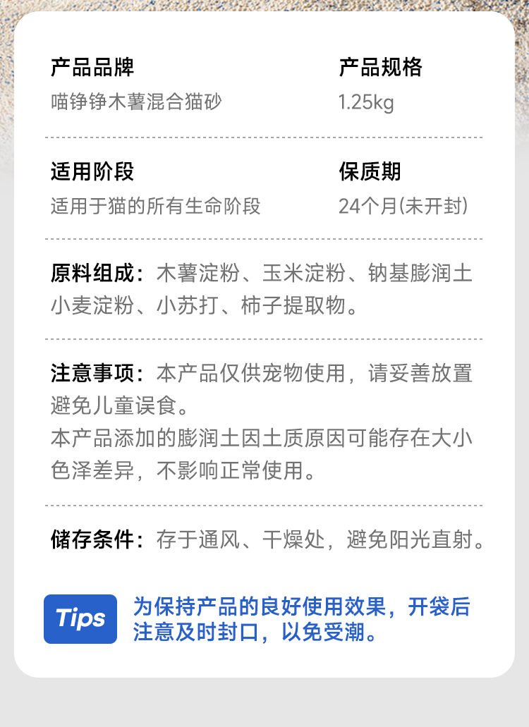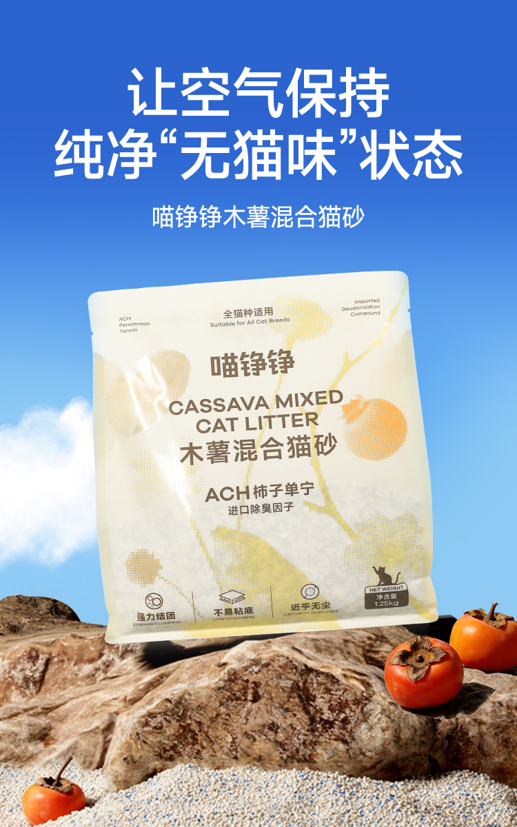 喵铮铮植物木薯猫砂 2.5斤/包 强力结团不易粘底近乎无尘