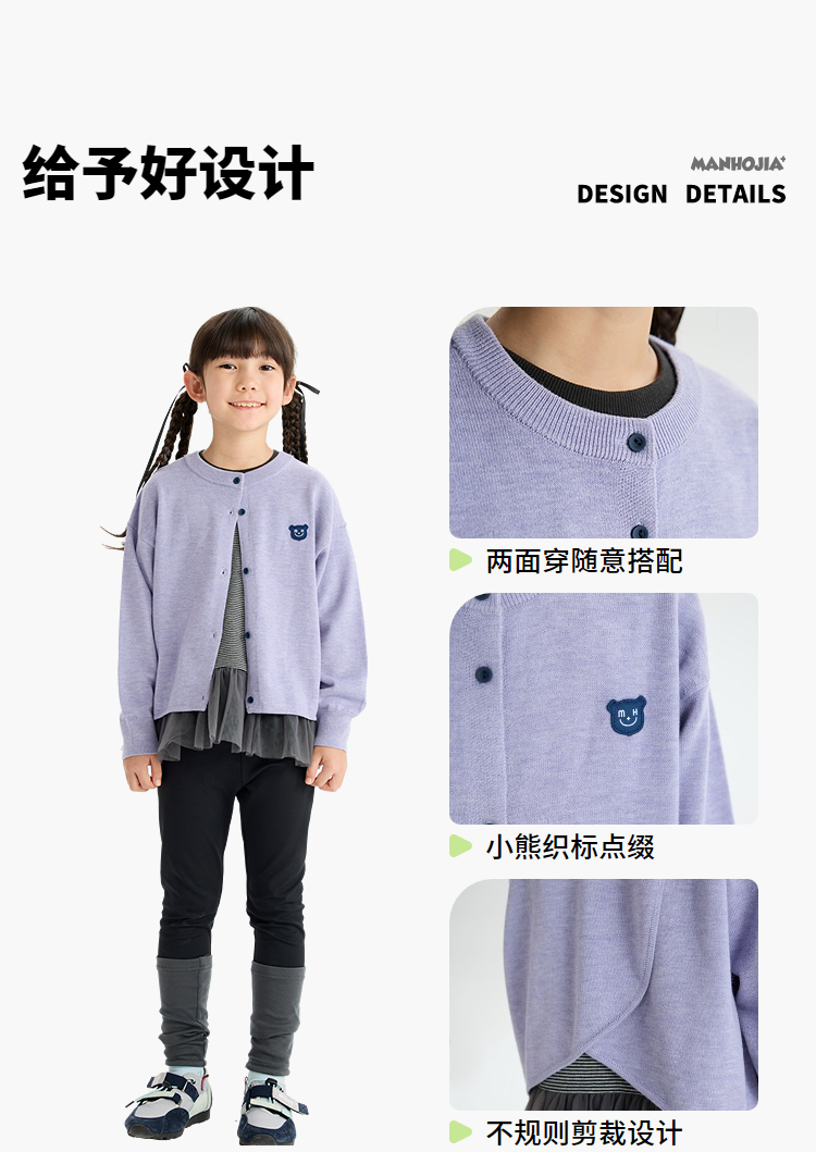 漫画家【花苞衫】两面穿羊毛混纺 甜美设计感亲肤柔软儿童开衫
