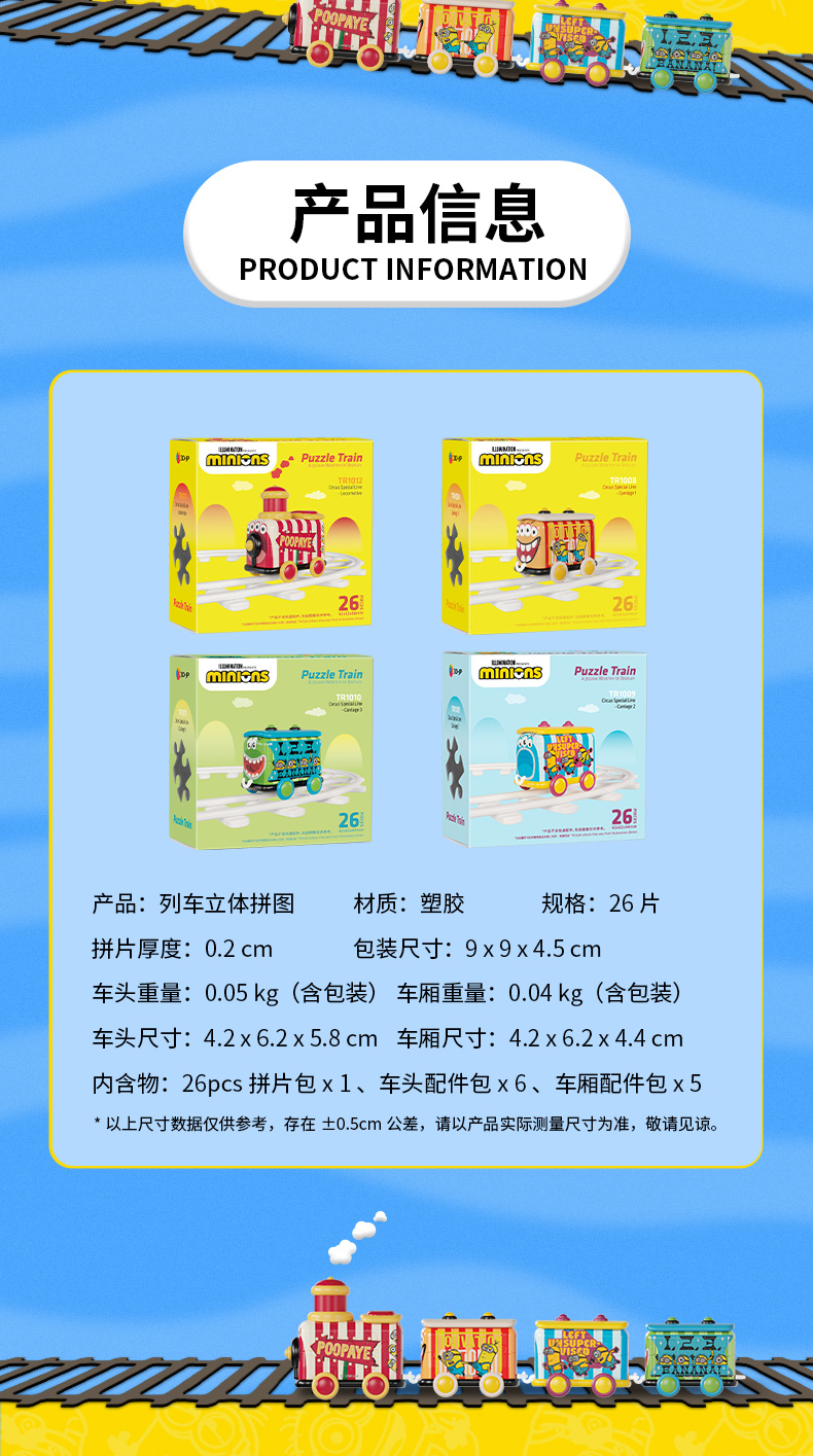 【折扣商品 不退不换】26片 列车拼图 小黄人系列-大眼萌马戏团专列