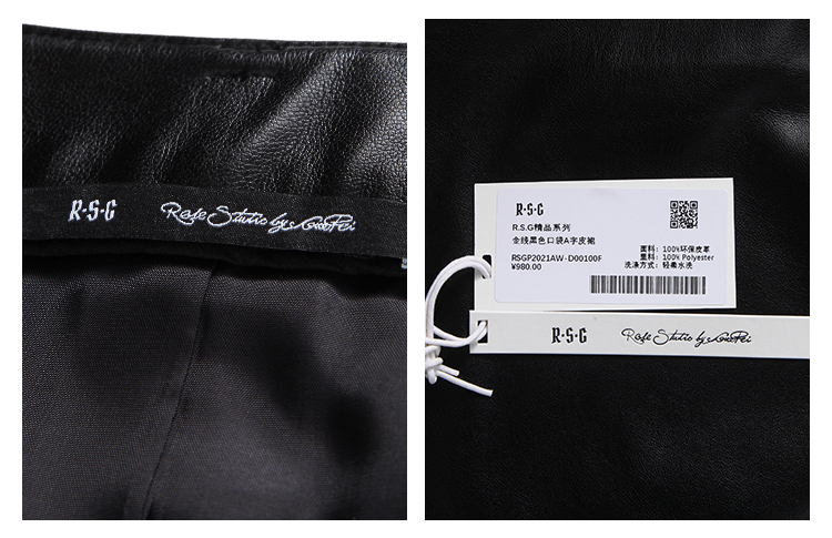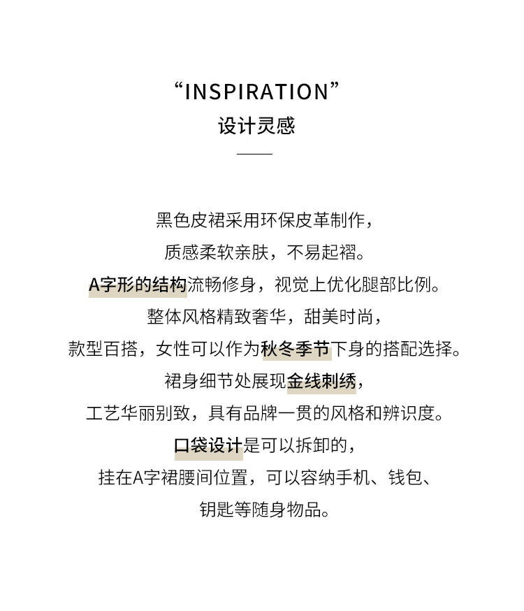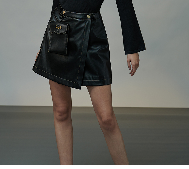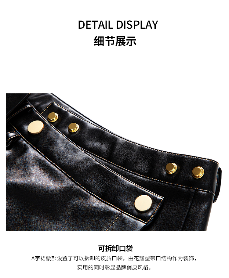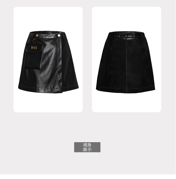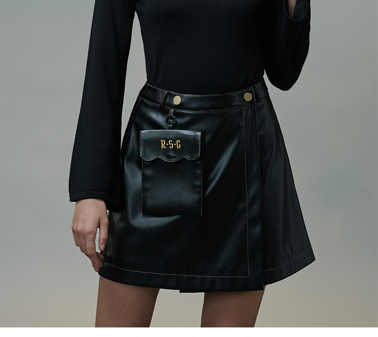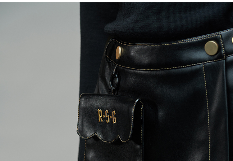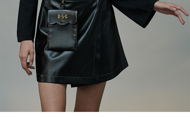 RSG郭培成衣品牌原创设计春夏季金线刺绣黑色口袋A字皮裙短裙