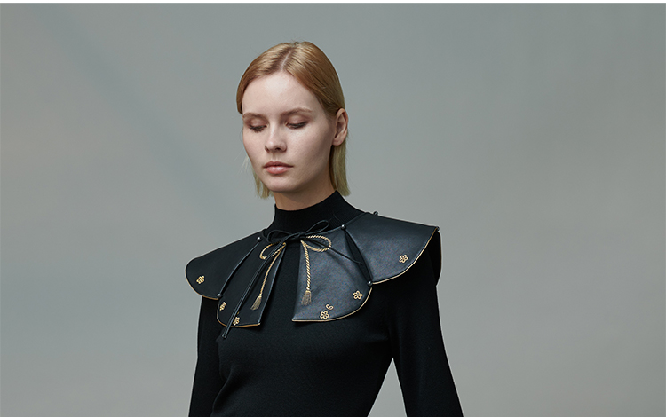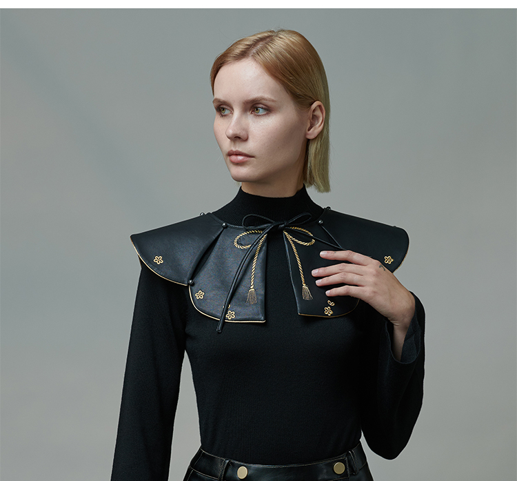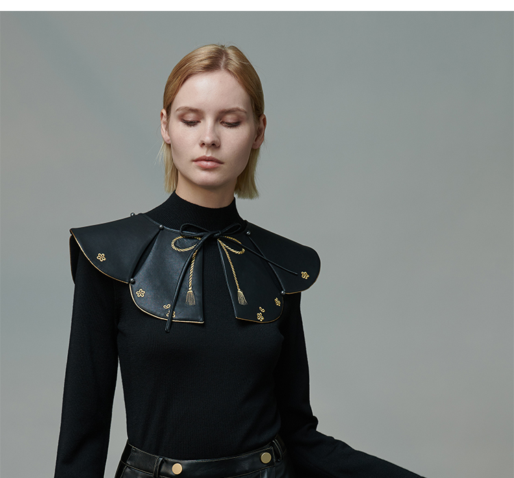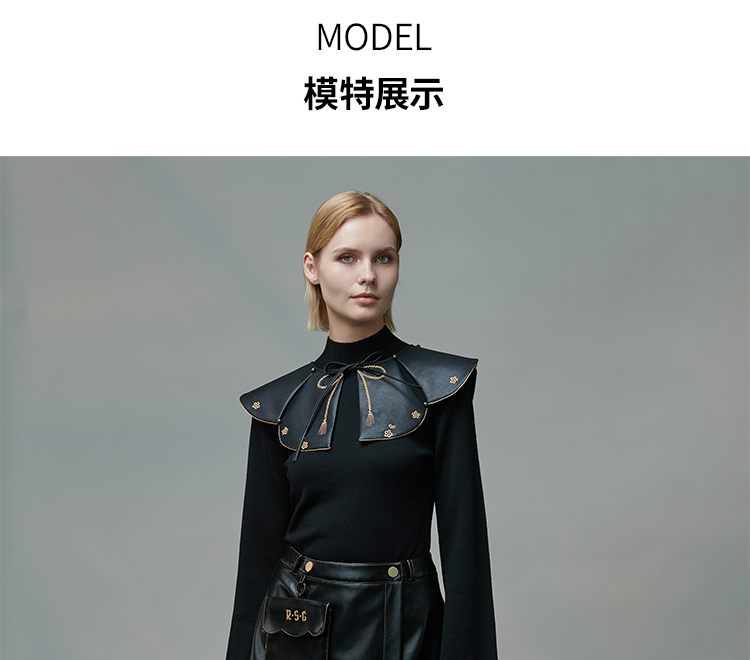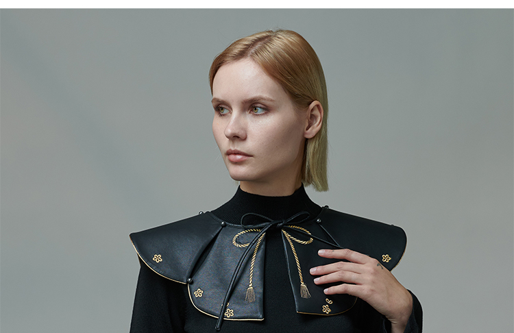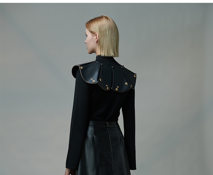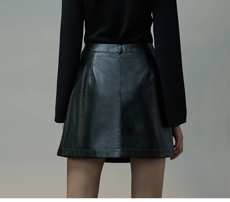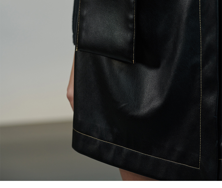 RSG郭培成衣品牌原创设计春夏季金线刺绣黑色口袋A字皮裙短裙